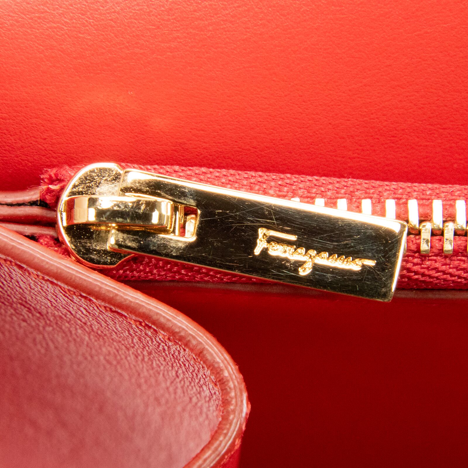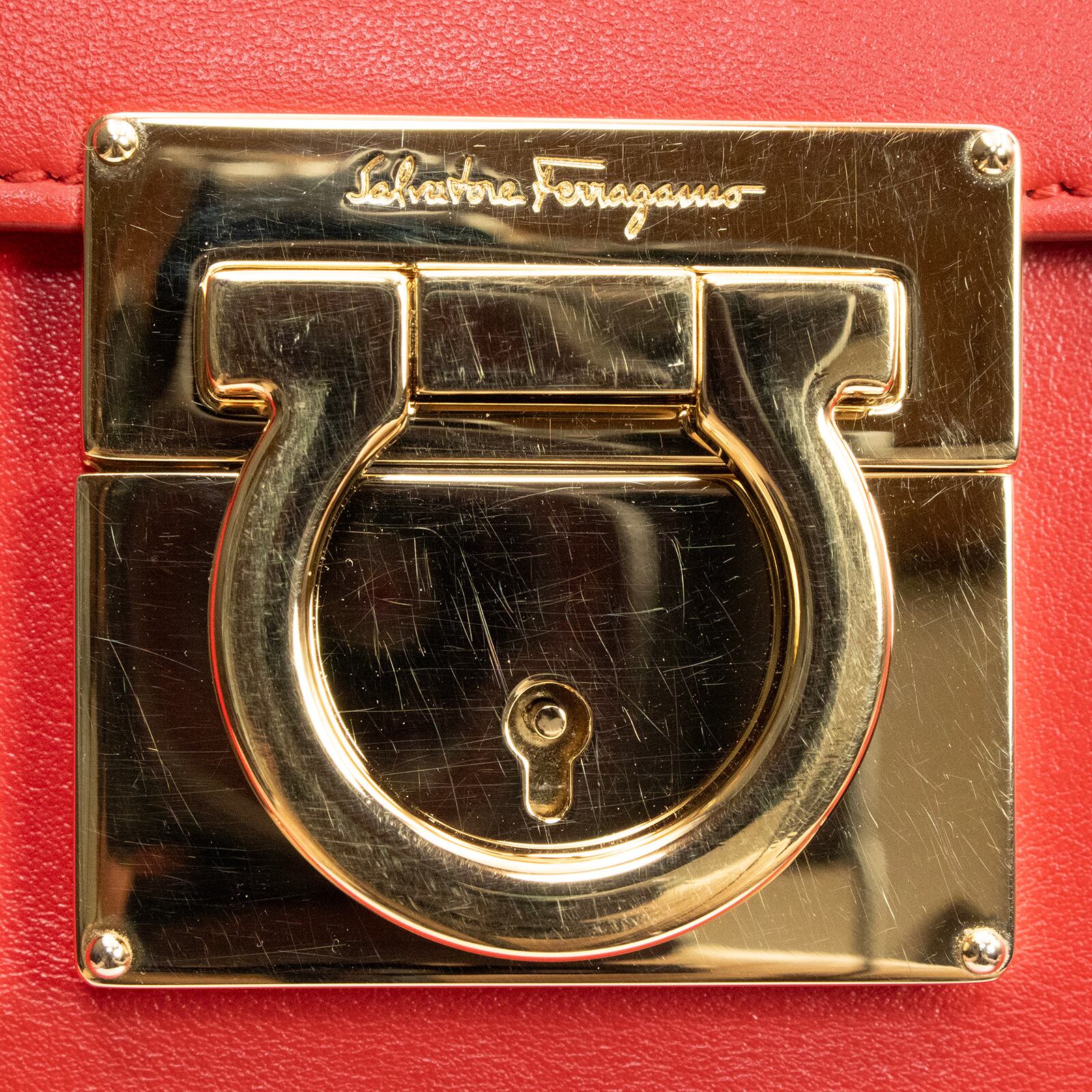 本物 送料無料 フェラガモ ハンドバッグ レディース カーフスキン ガンチーニ 赤 レッド 人気 ロゴ 自立可能 かっちり 綺麗 鞄 バック F221