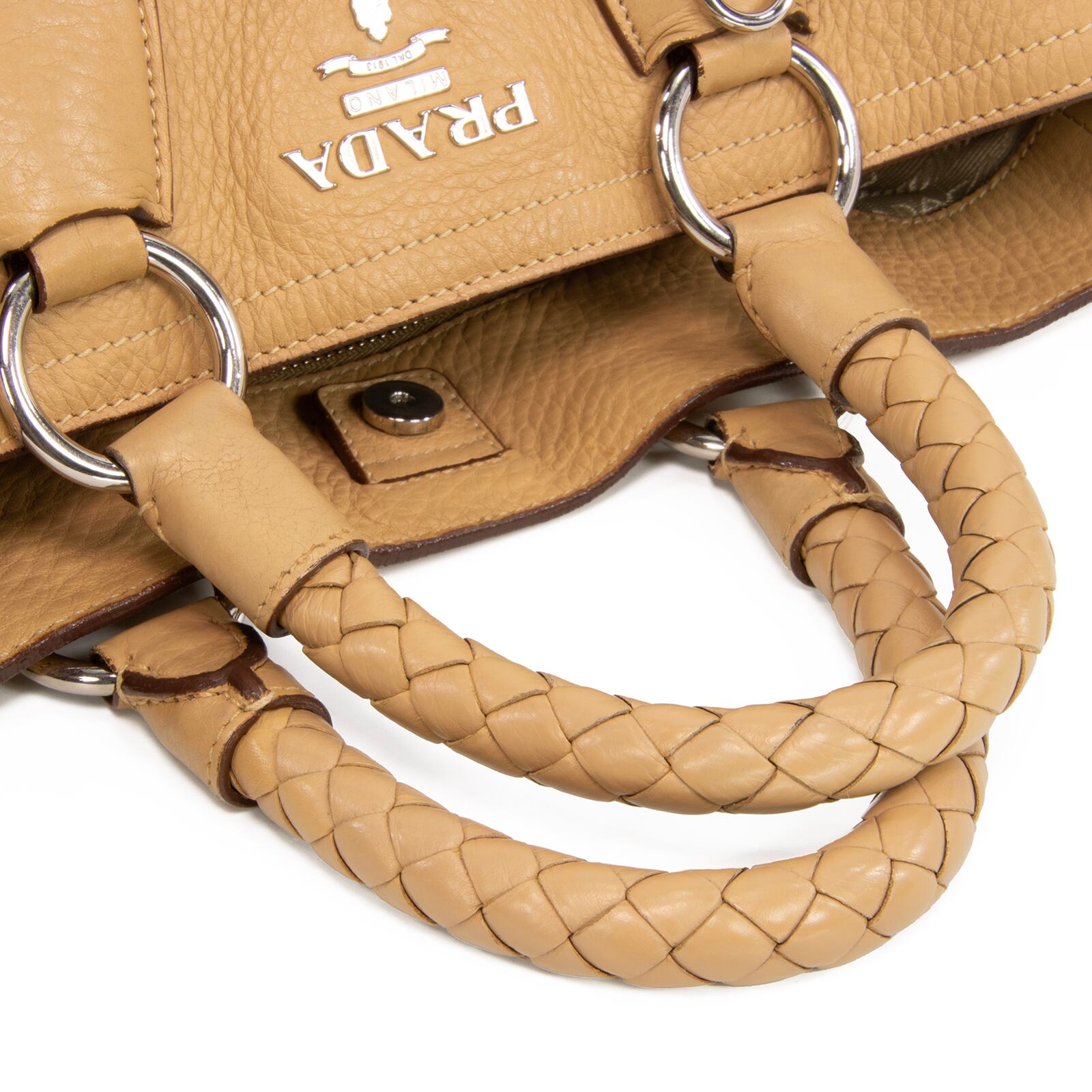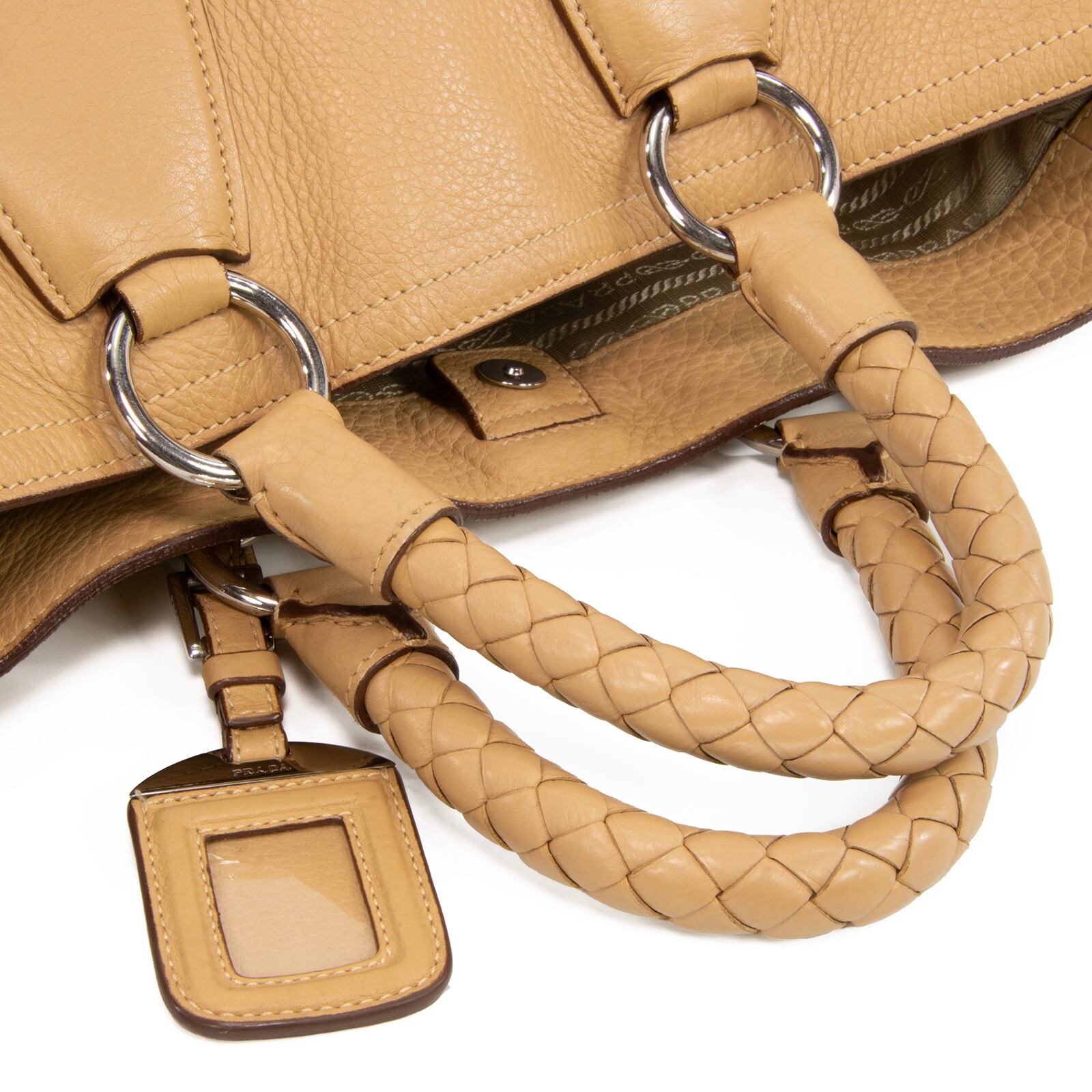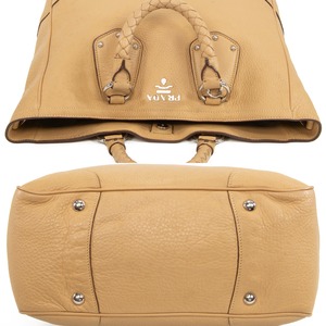 本物 送料無料 プラダ 2WAYショルダーバッグ ハンドバッグ メンズ レディース 斜め掛け A4対応 ロゴ 革 編み込みレザー 綺麗 バック I199