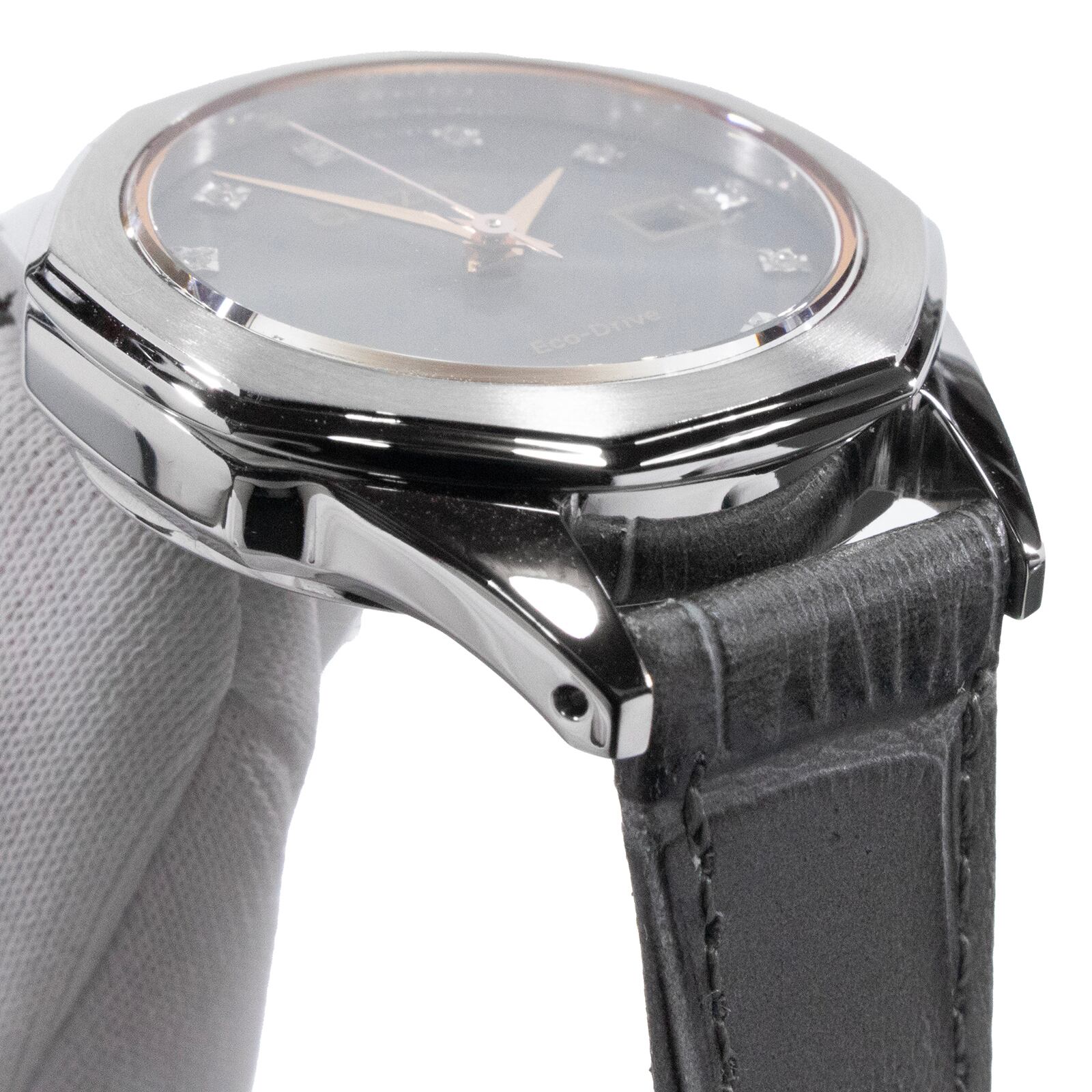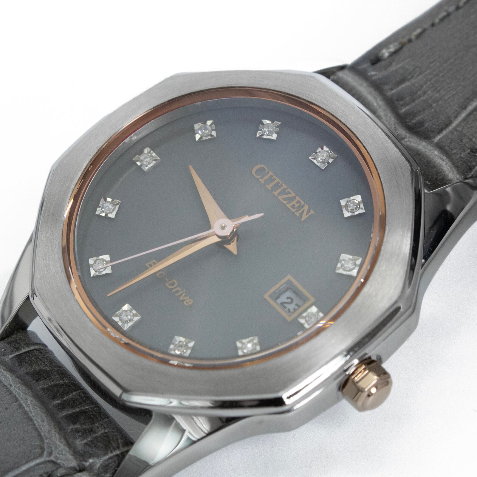 送料無料 シチズン 腕時計 新品同様 レディース エコドライブ グレー ピンクゴールド 12Pダイヤモンド ビジュー ロゴ クォーツ 綺麗 Y001
