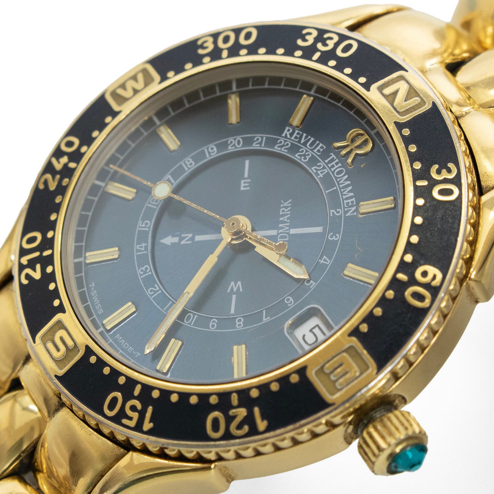 送料無料 レビュートーメン 腕時計 メンズ レディース 太陽コンパス ランドマーク ブルー系 ブラック ゴールドロゴ レア ヴィンテージ Y005