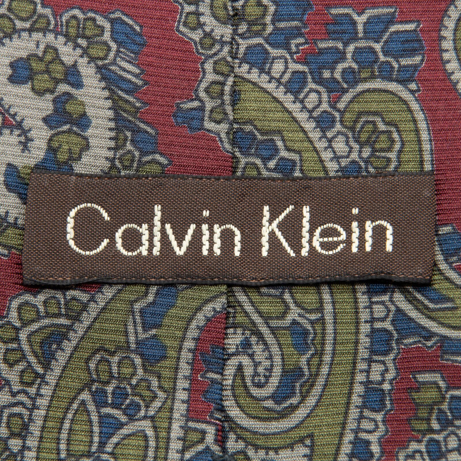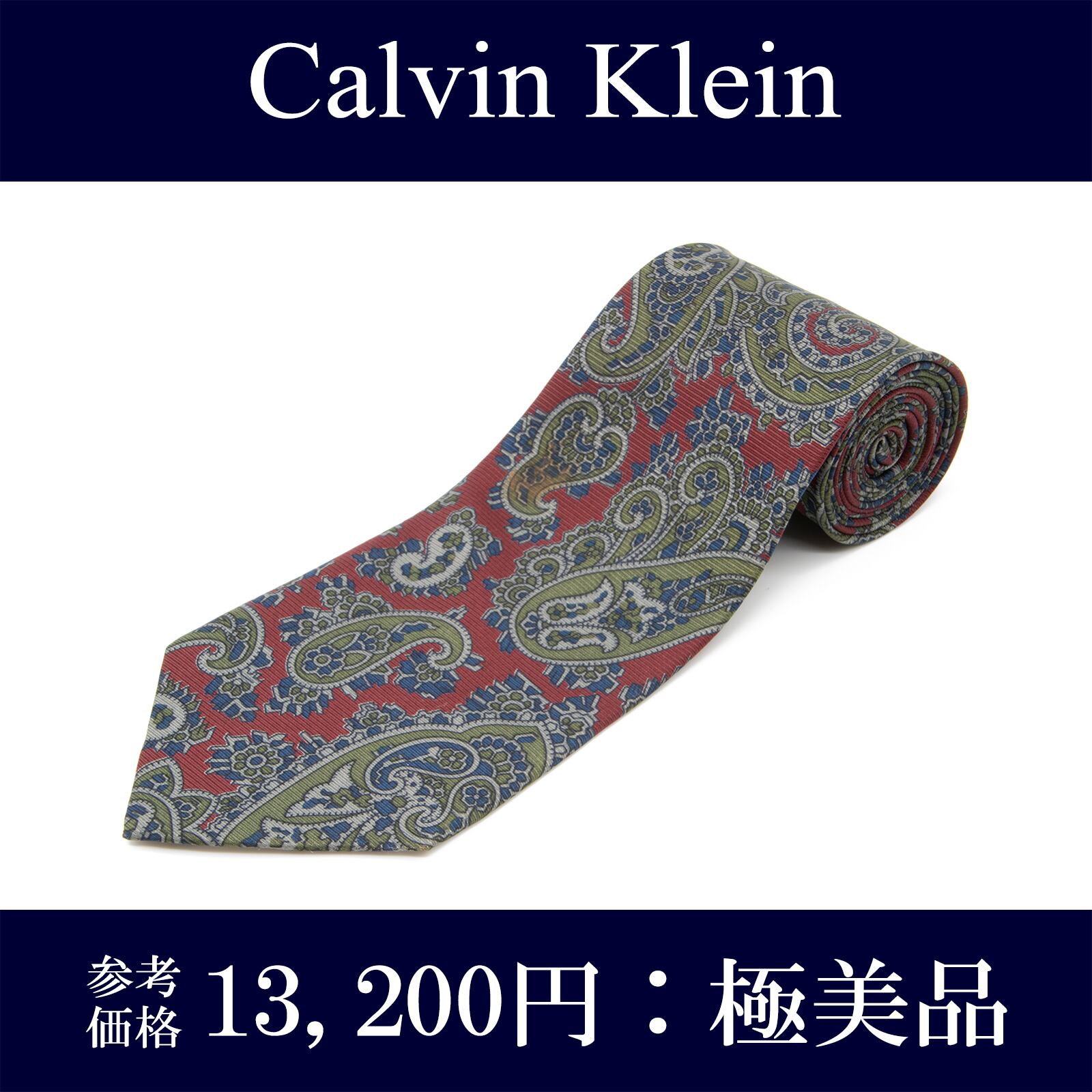 送料無料 カルバンクライン ネクタイ レギュラータイ シルク 緑 赤 レッド 青 ブルー ビジネス カジュアル ブランド ペイズリー 綺麗 N417