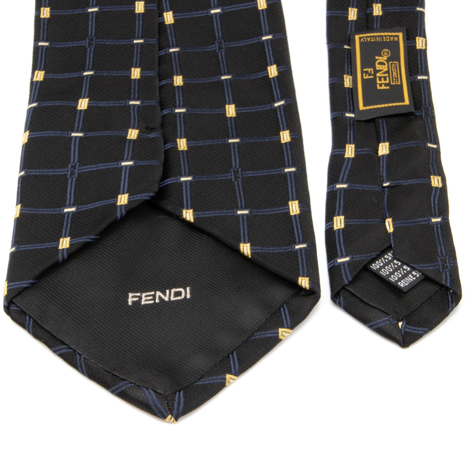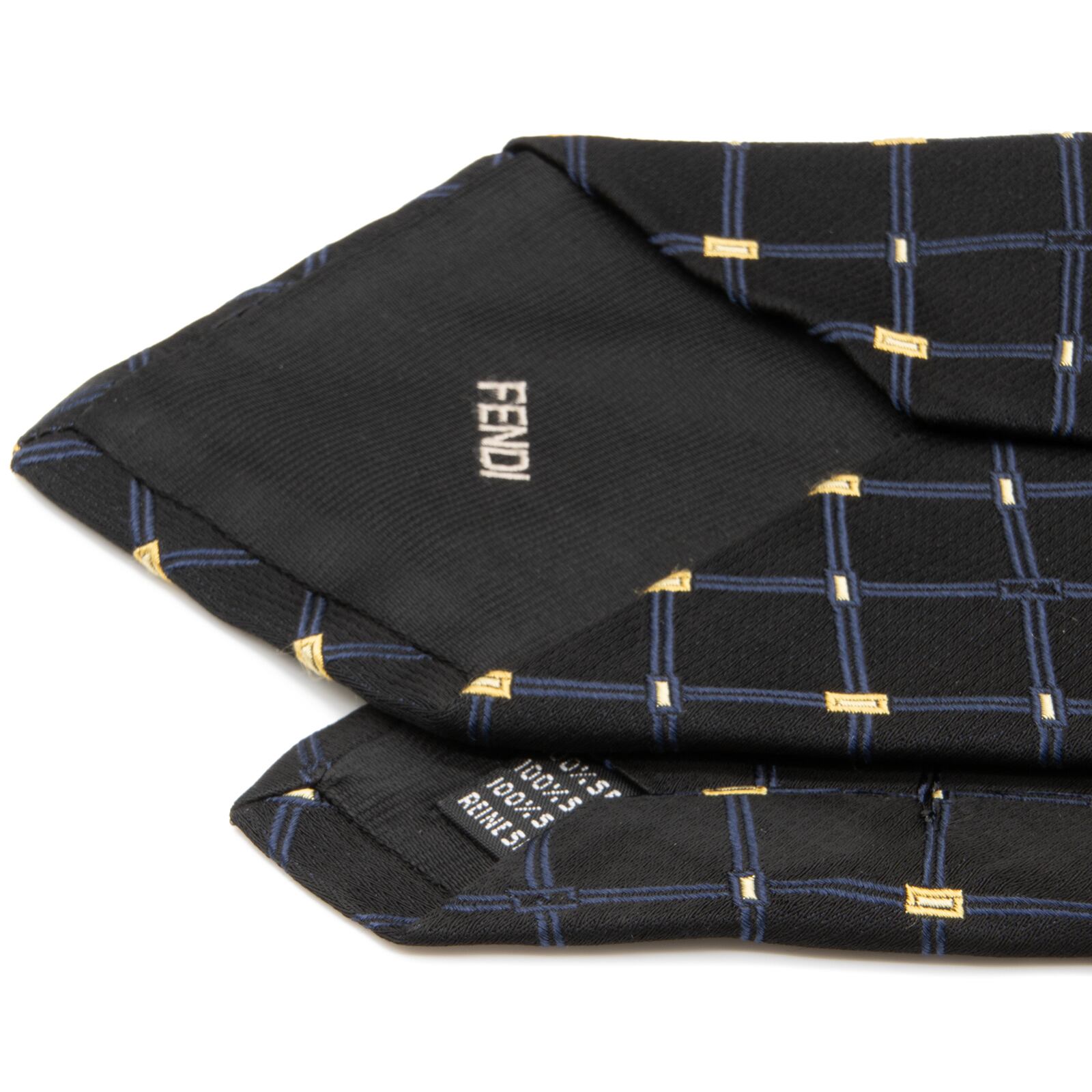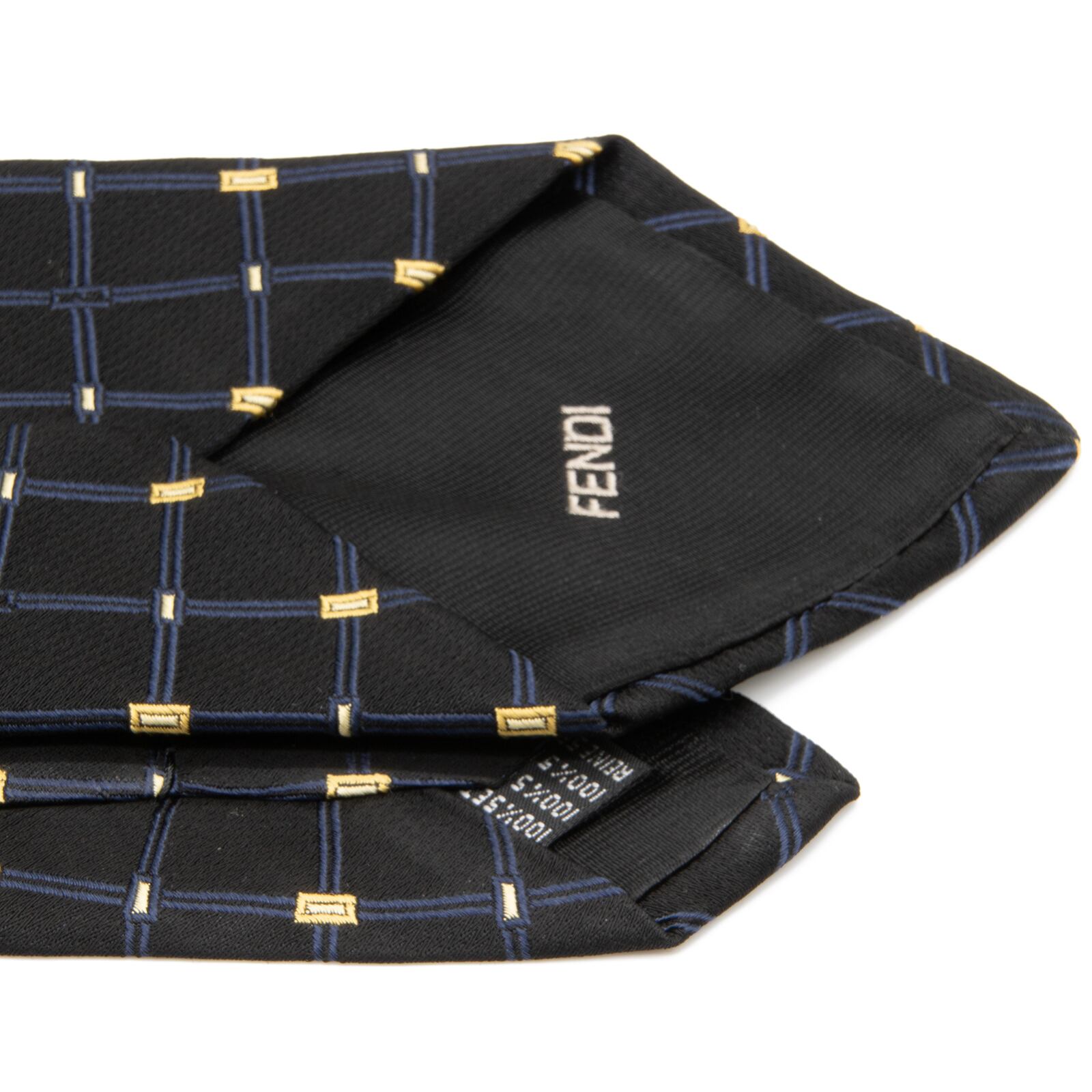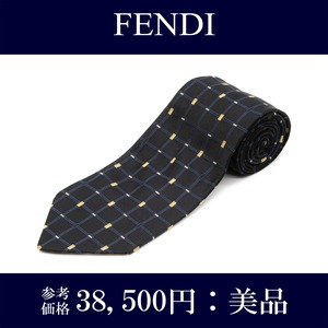 送料無料 フェンディ ネクタイ ジャガードタイ シルク 黒 ブラック ネイビーブルー 黄色 ブランド マイクロFFロゴ シンプル レア 綺麗 N425