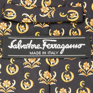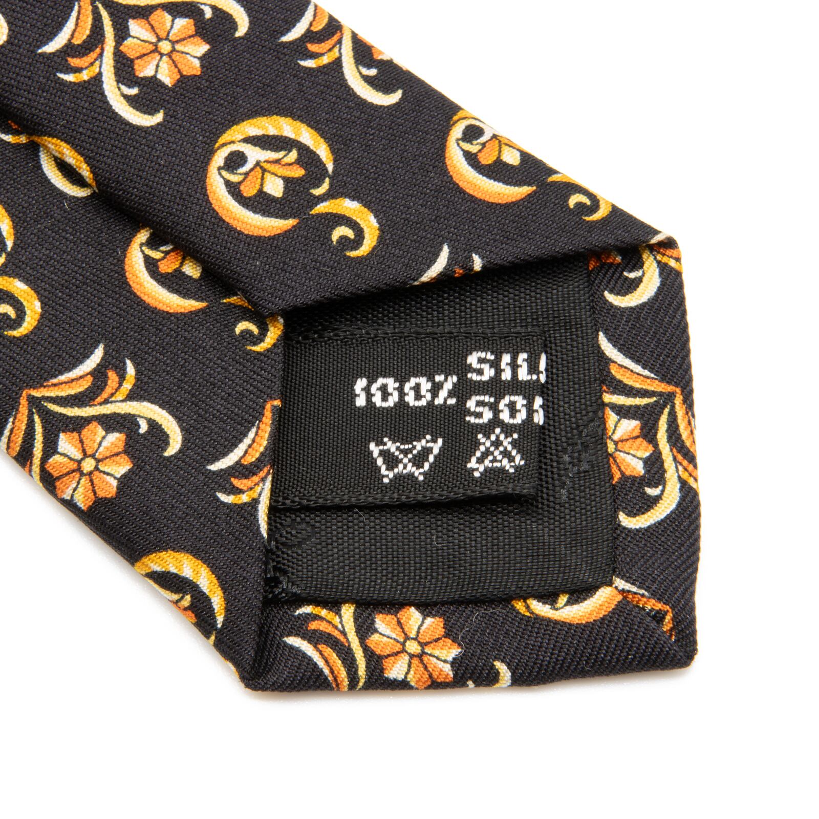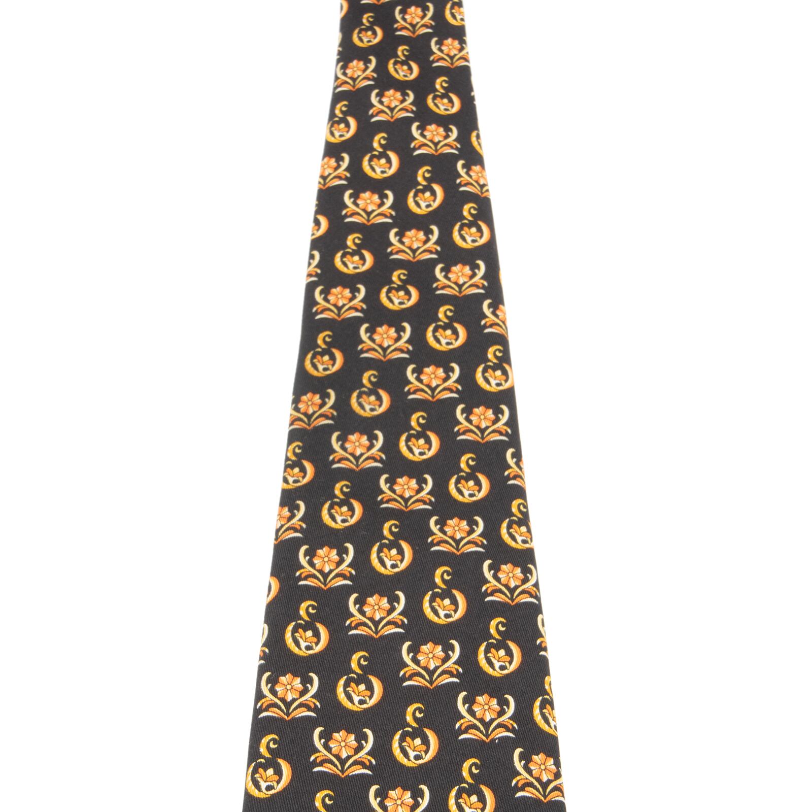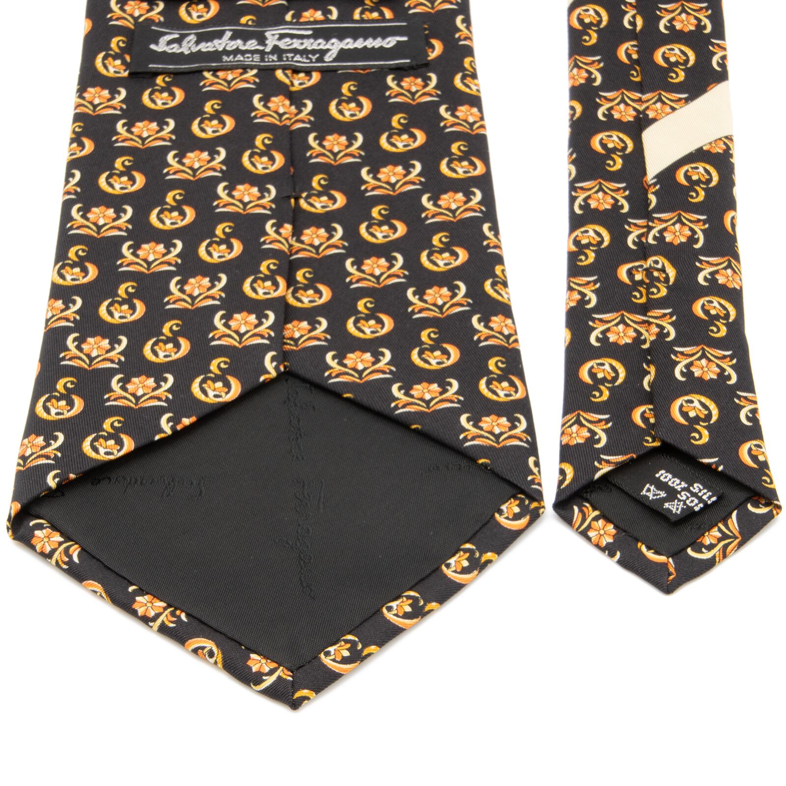 送料無料 フェラガモ ネクタイ ワイドタイ シルク 黒 ブラック 橙色 オレンジ 黄色 イエロー ビジネス カジュアル ブランド レア 綺麗 N430