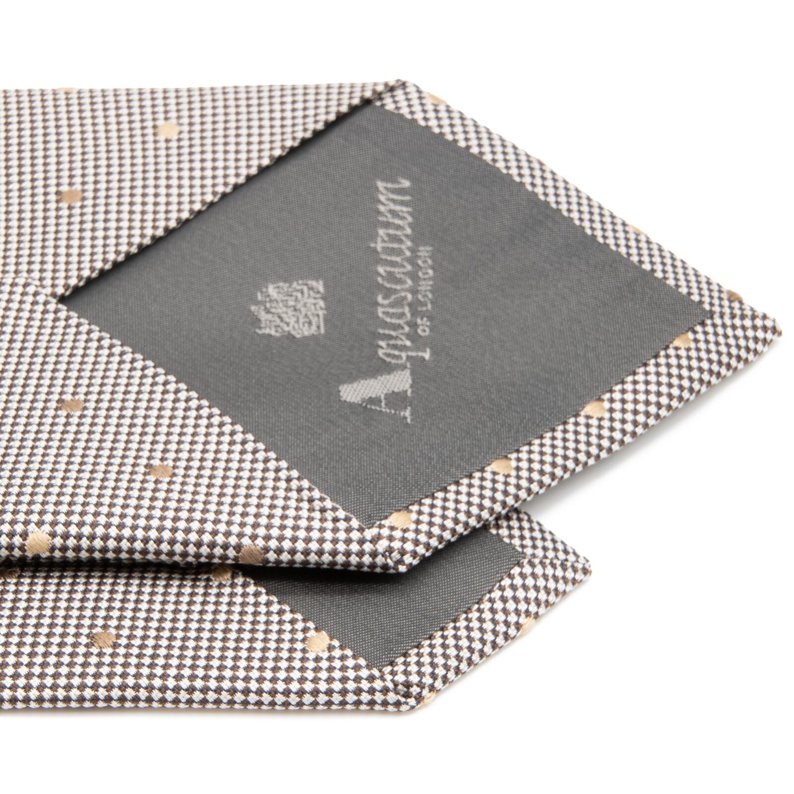 送料無料 アクアスキュータム ネクタイ ジャガード シルク シルバー ゴールド 茶色 ブラウン フォーマル ビジネス ブランド ドット N441