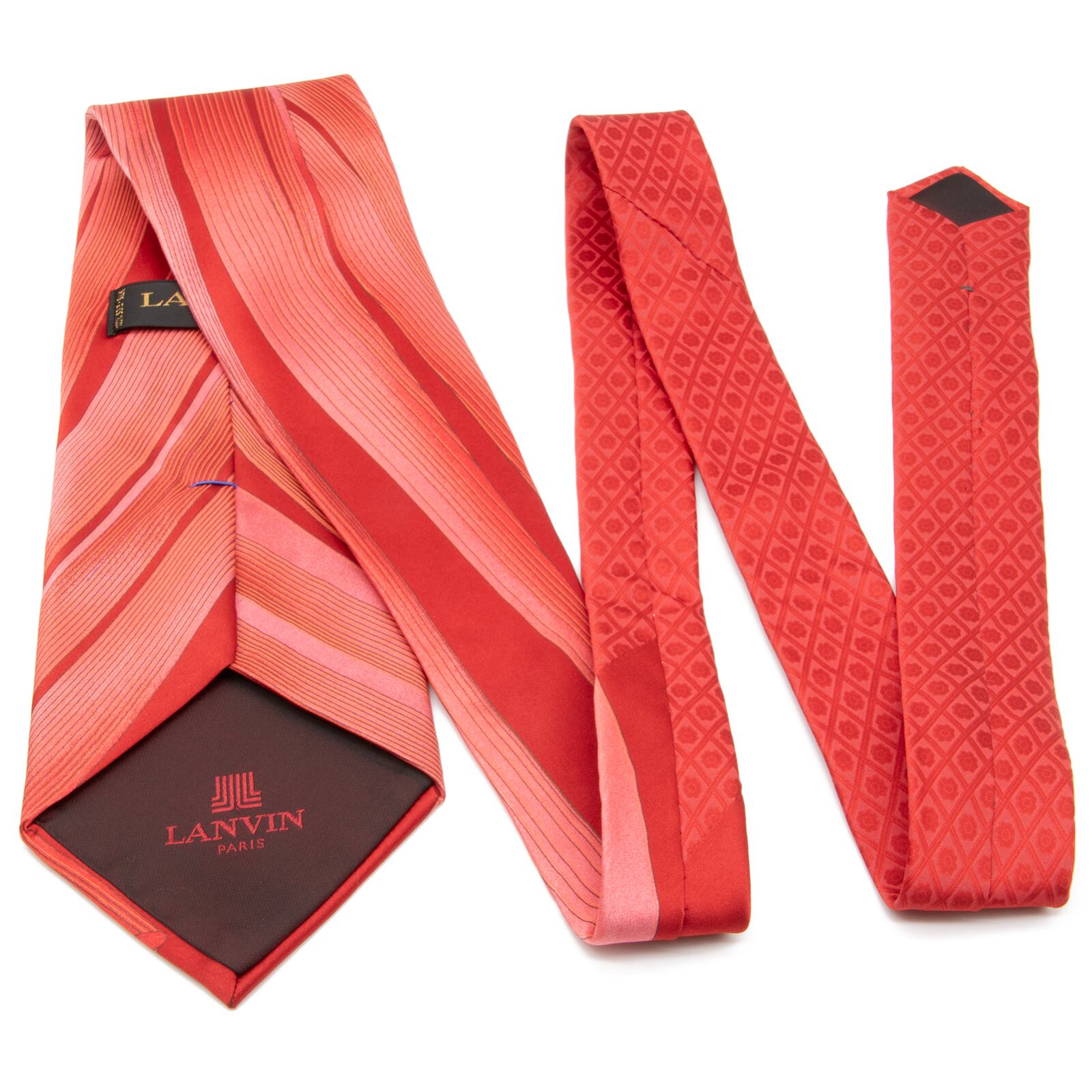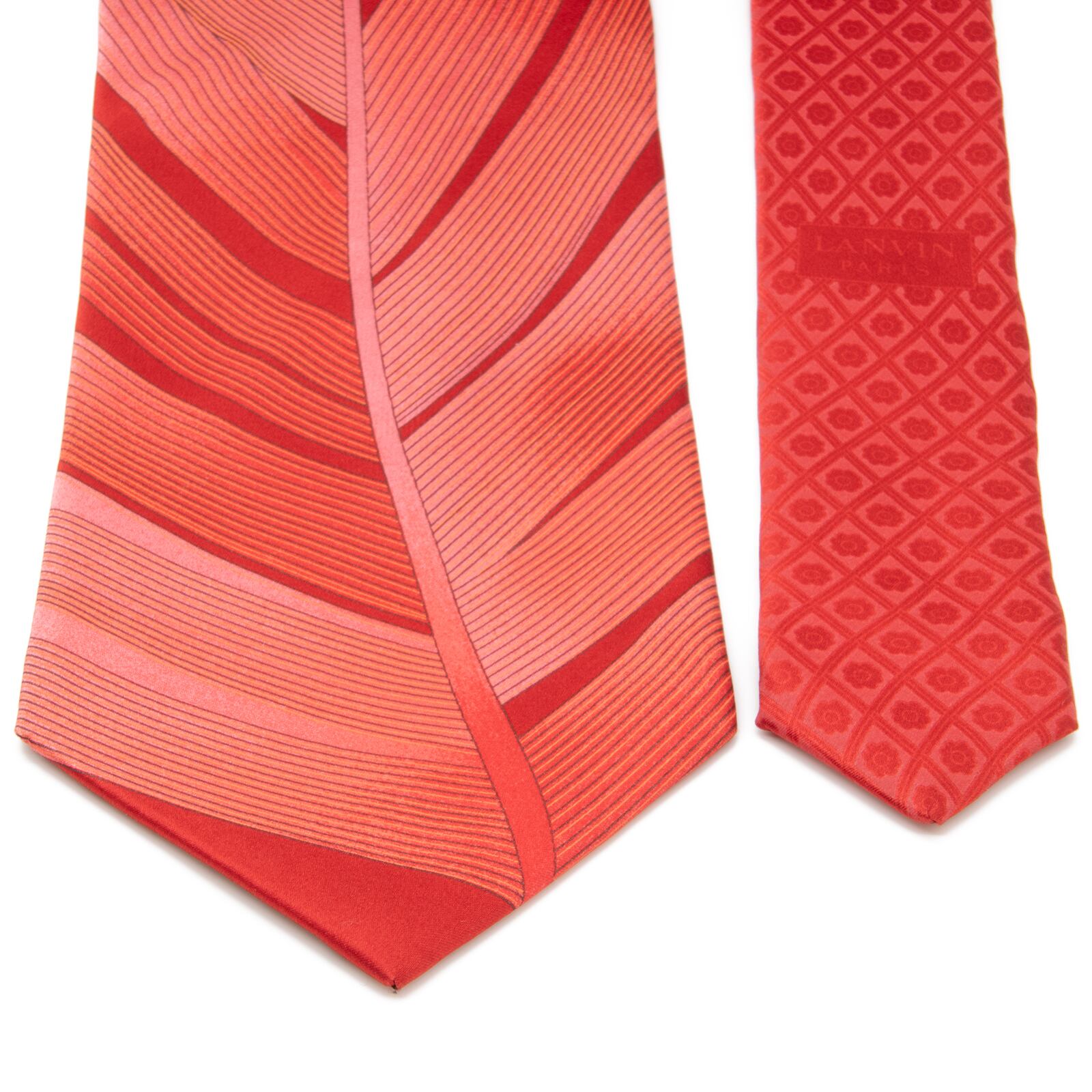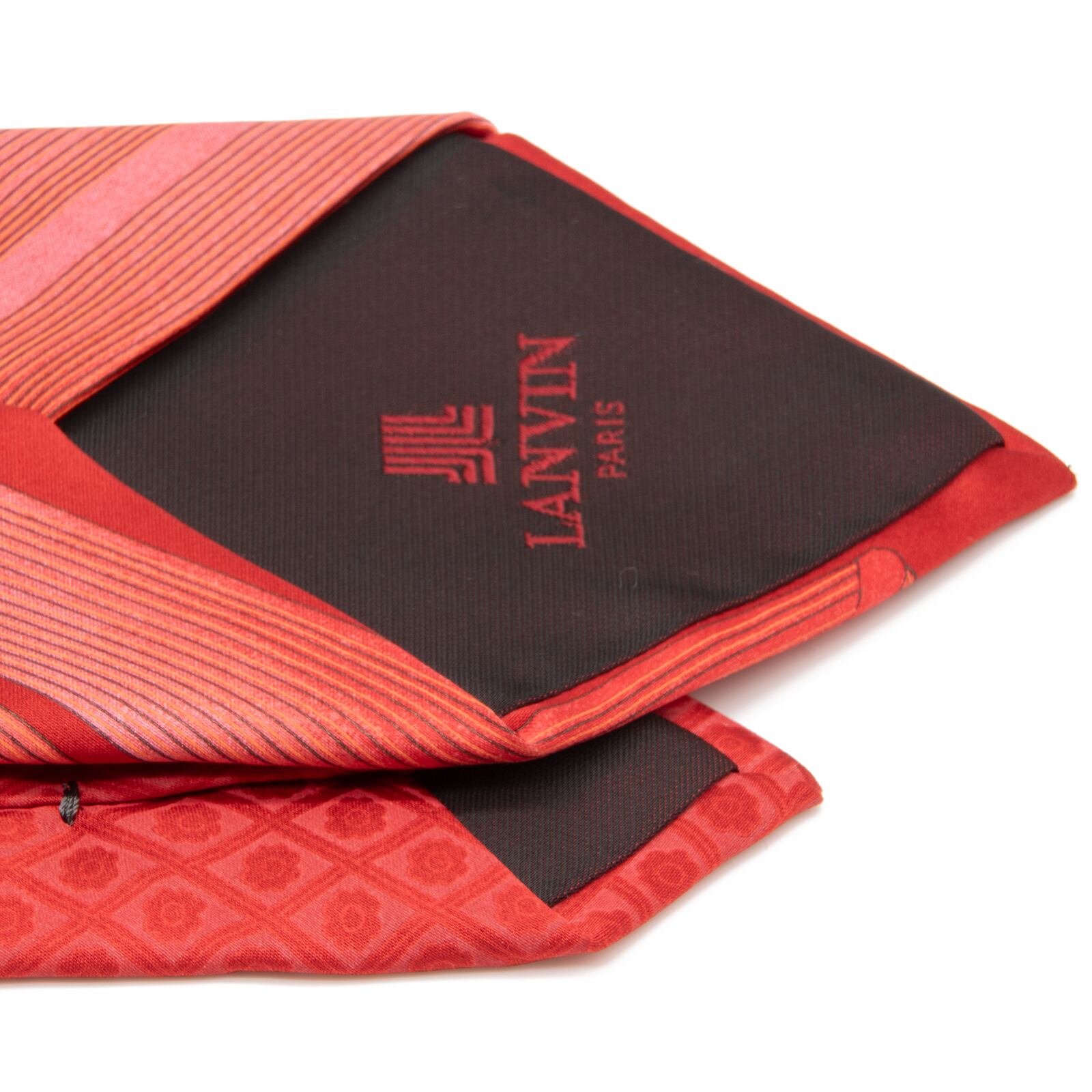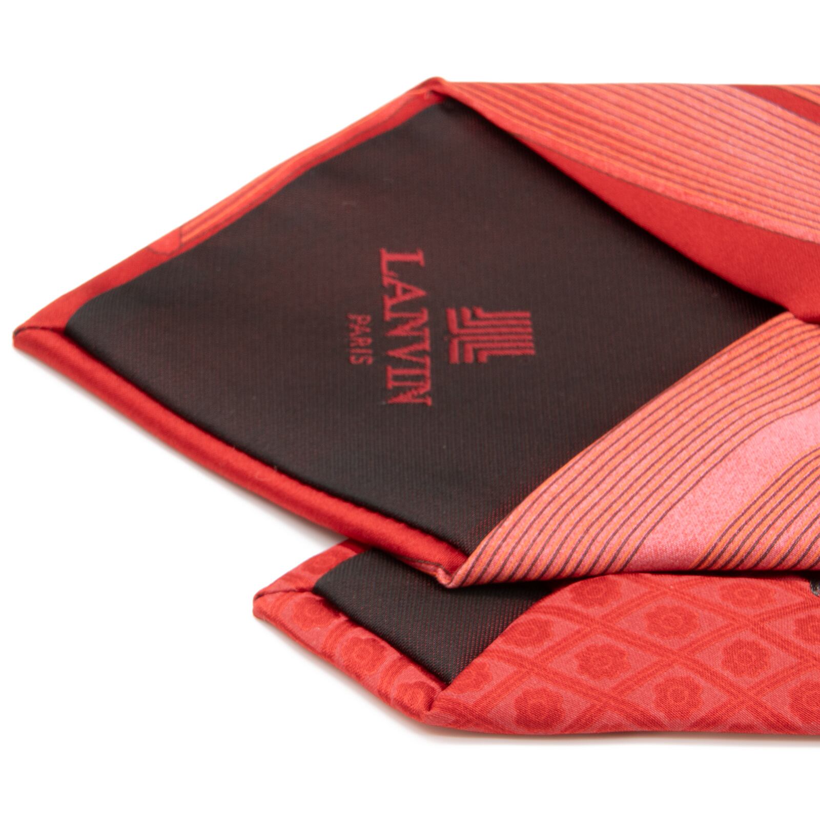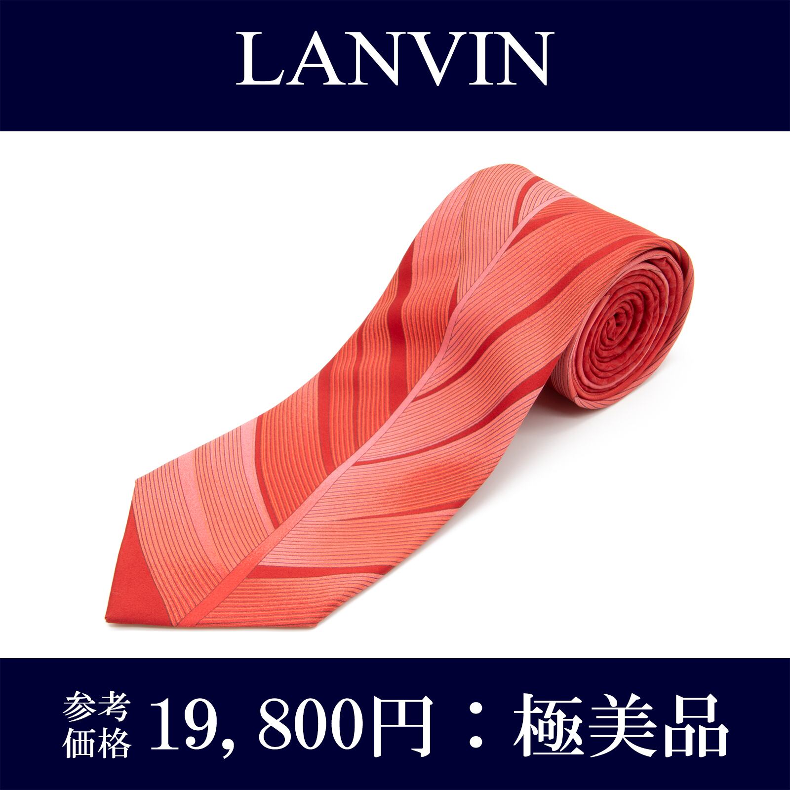 送料無料 ランバン ネクタイ レギュラータイ シルク 赤 レッド ビジネス カジュアル ブランド パネル 葉 リーフ フランス製 レア 綺麗 N444