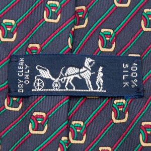 送料無料 エルメス ネクタイ レギュラータイ シルク ネイビーブルー グリーン 赤 レッド 黄色 ビジネス カジュアル ストライプ 綺麗 N452