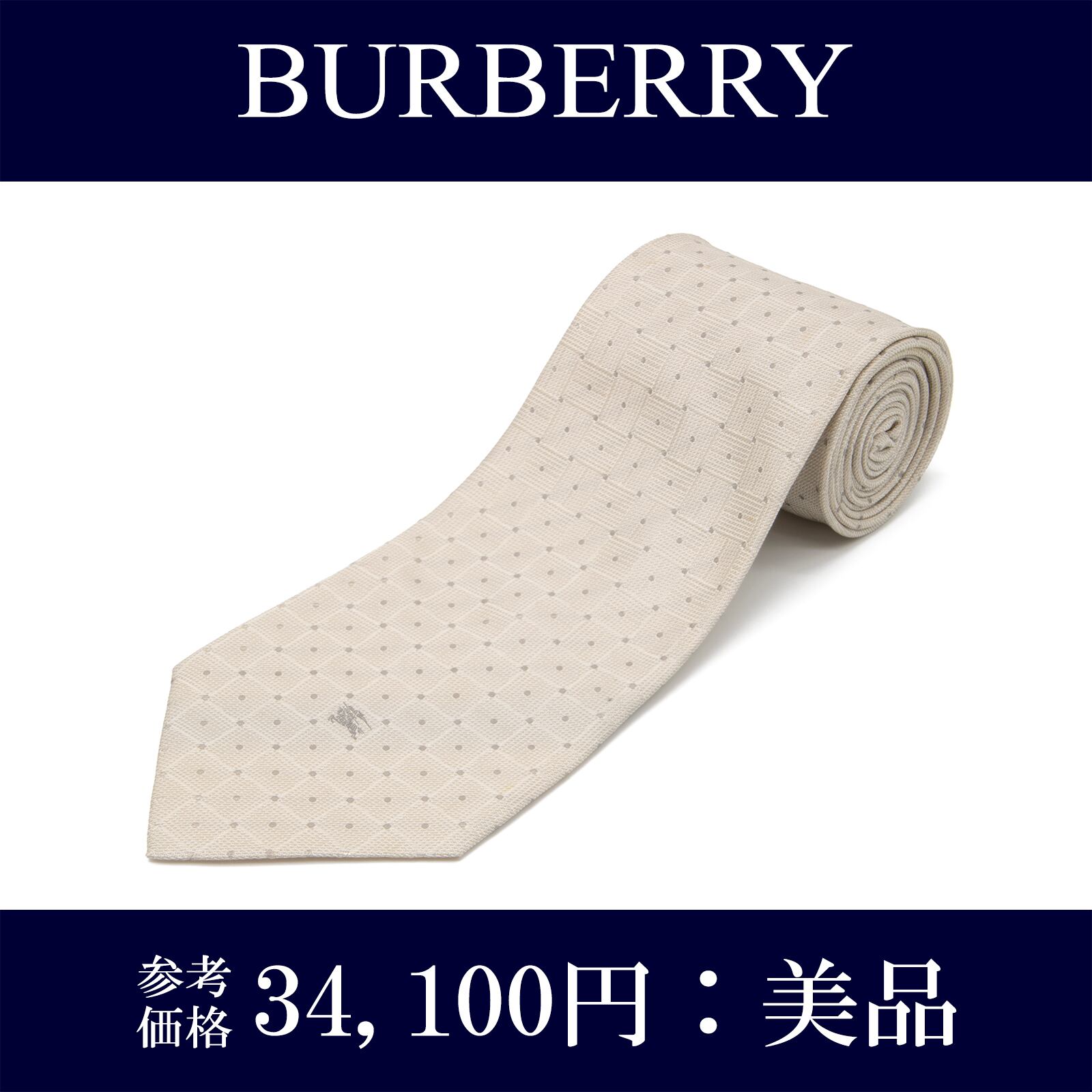 送料無料 バーバリー ネクタイ ジャガードタイ シルク アイボリー ライトグレー ビジネス ブランド シャドーホース 馬 ロゴ マーク N453
