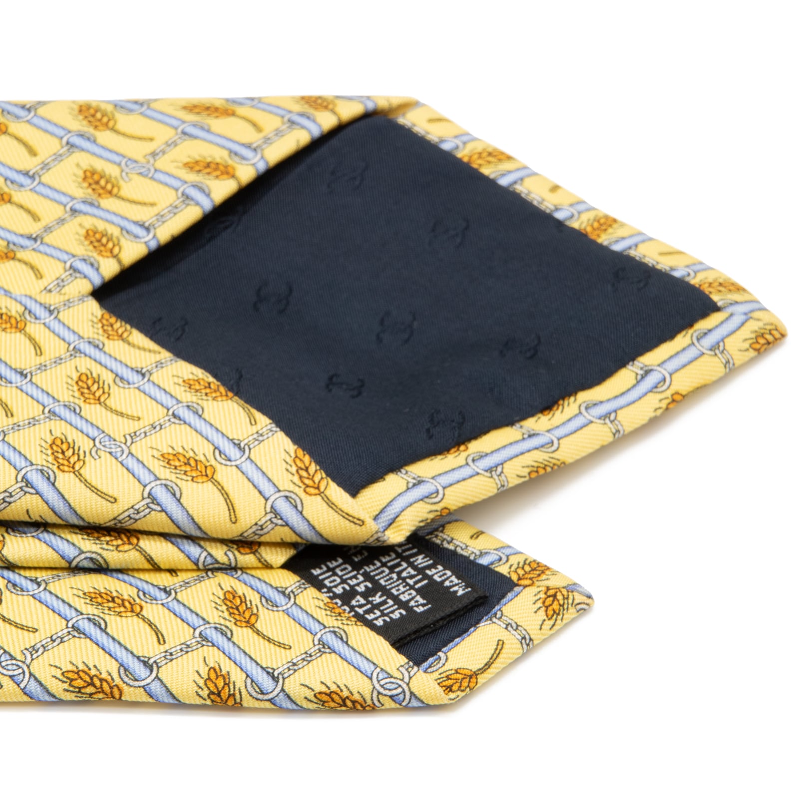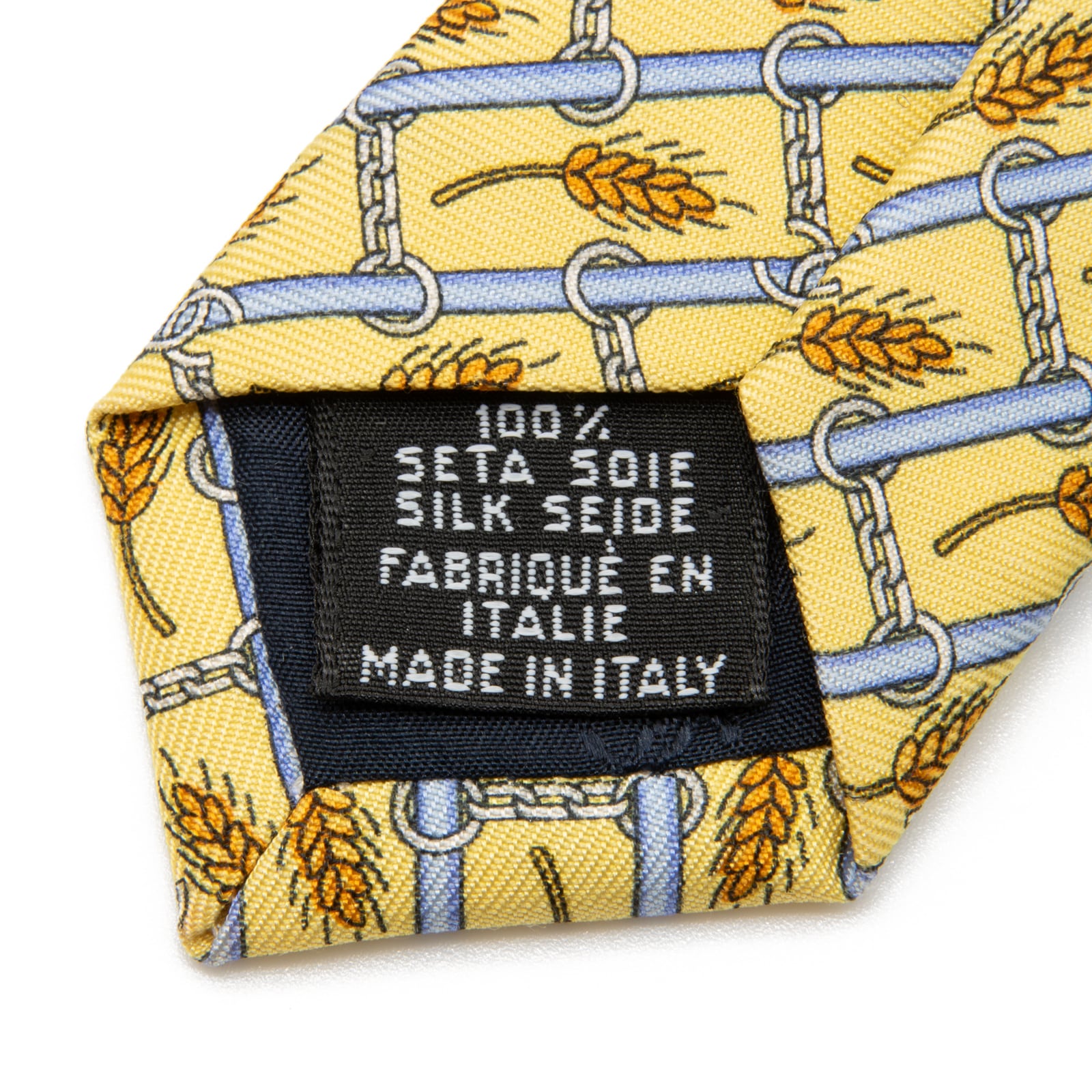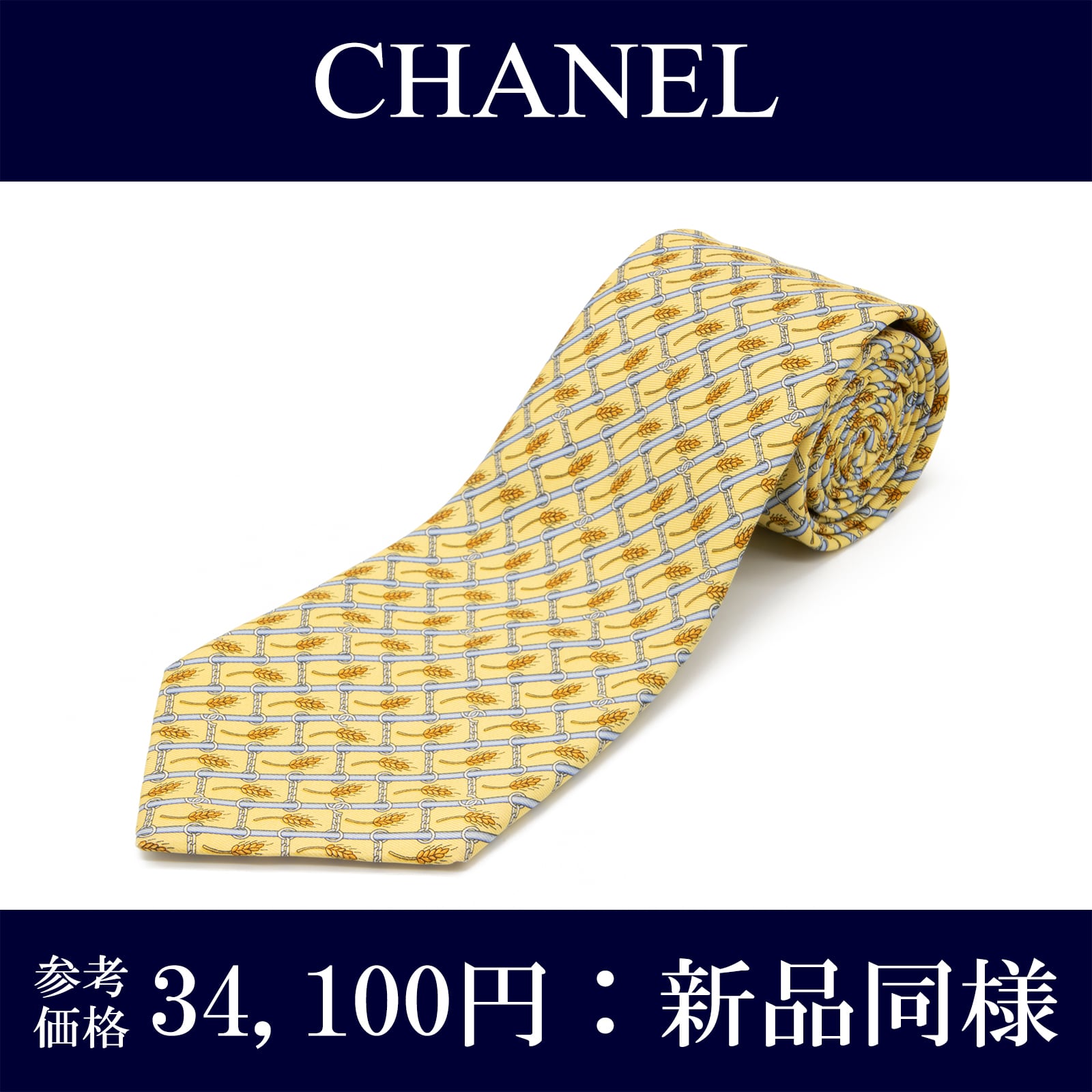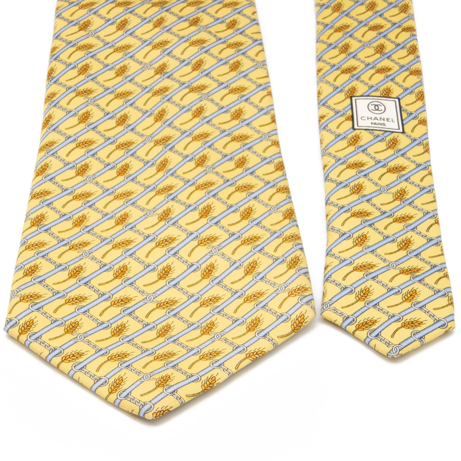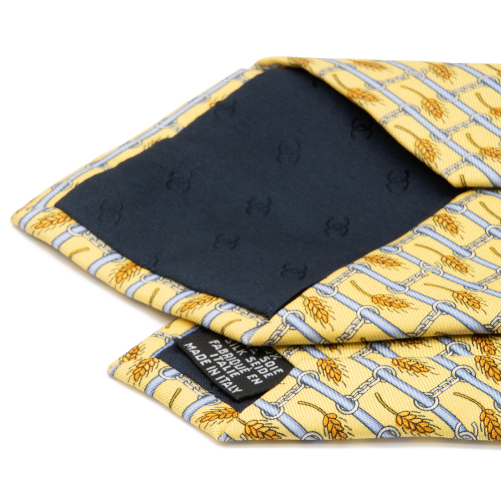 送料無料 シャネル ネクタイ 新品同様 シルク 黄色 イエロー 水色 カジュアル ブランド ココマーク 麦 稲穂 秋 ゴールドチェーン 綺麗 N454