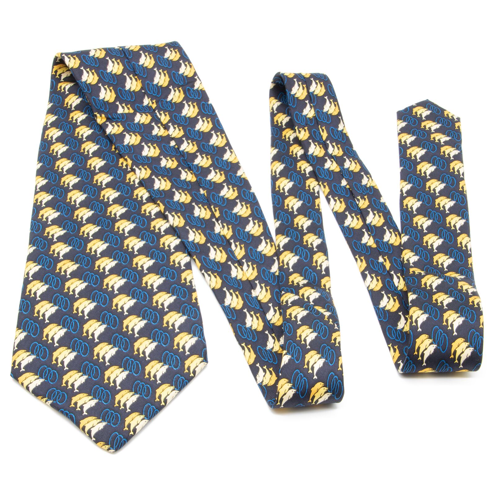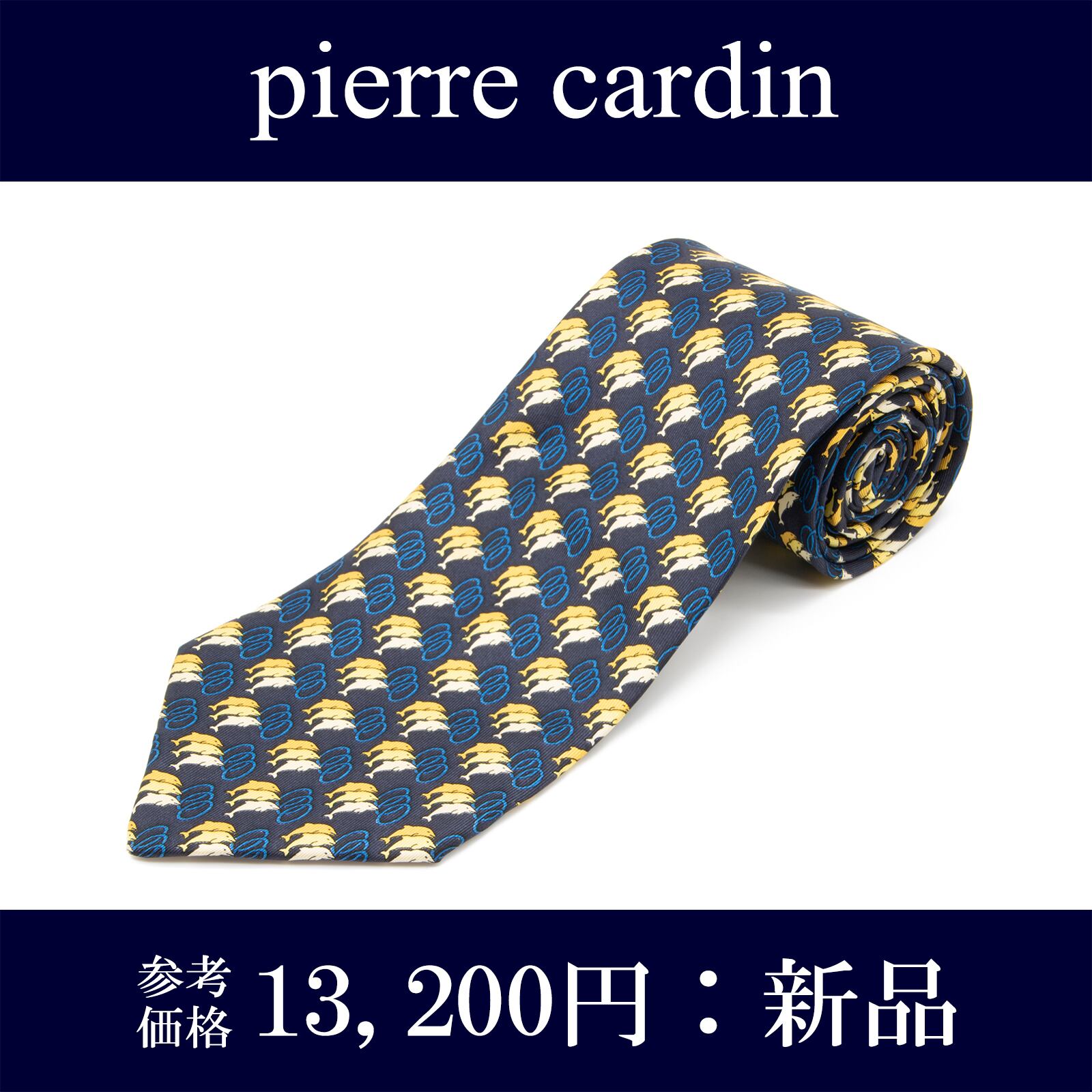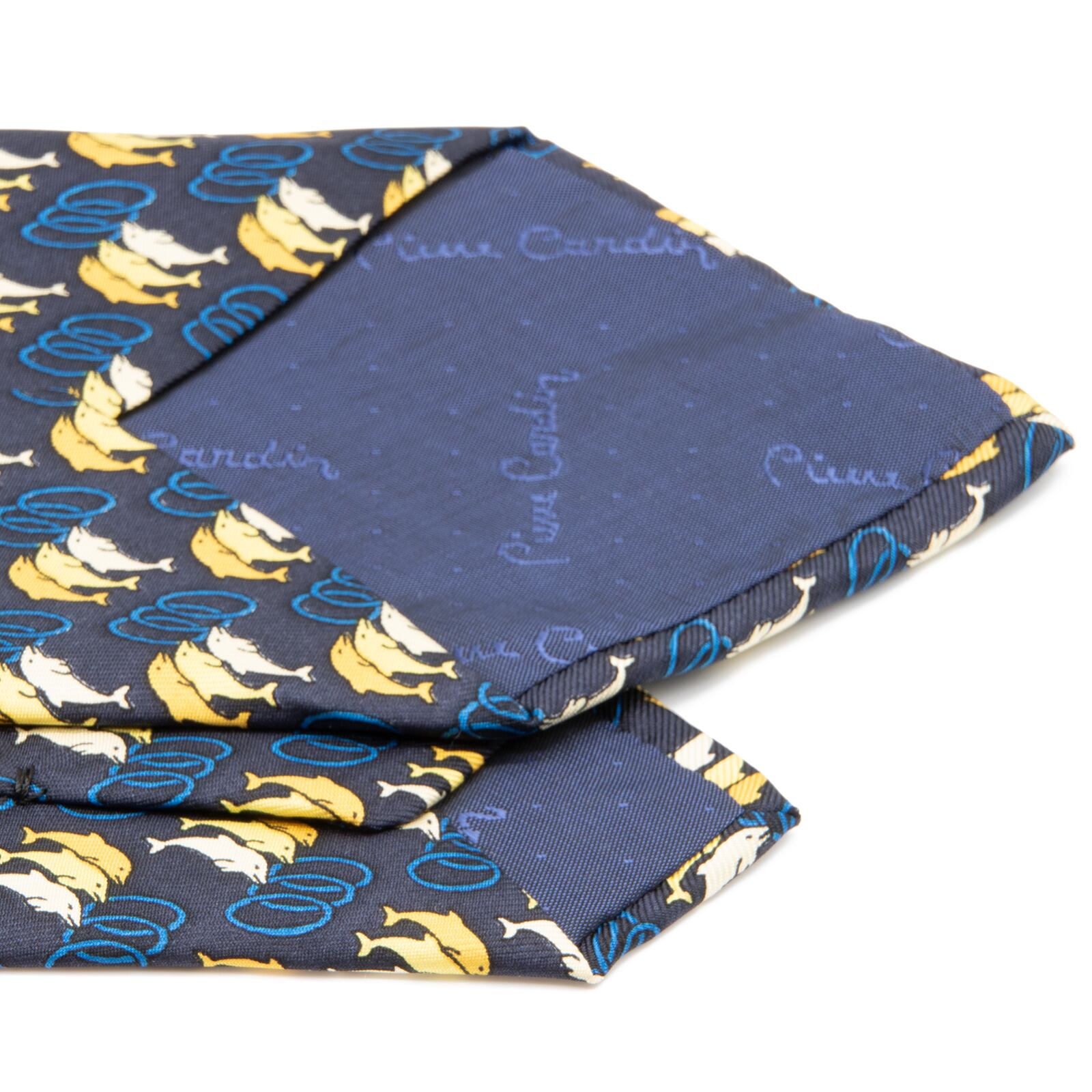 送料無料 ピエールカルダン ネクタイ 新品 ワイドタイ シルク ネイビーブルー 黄色 ブランド アニマル イルカ イタリア製 レア 綺麗 N455