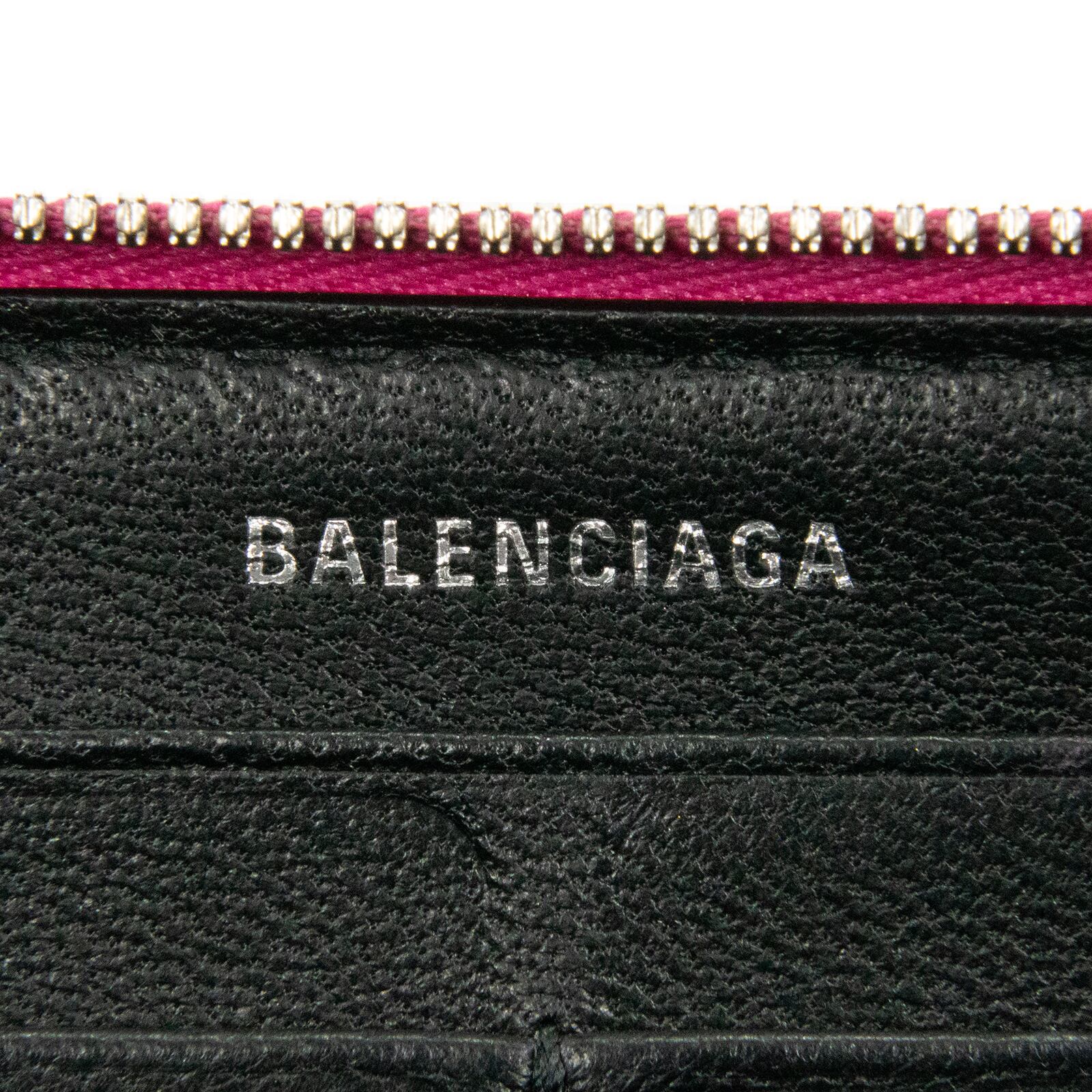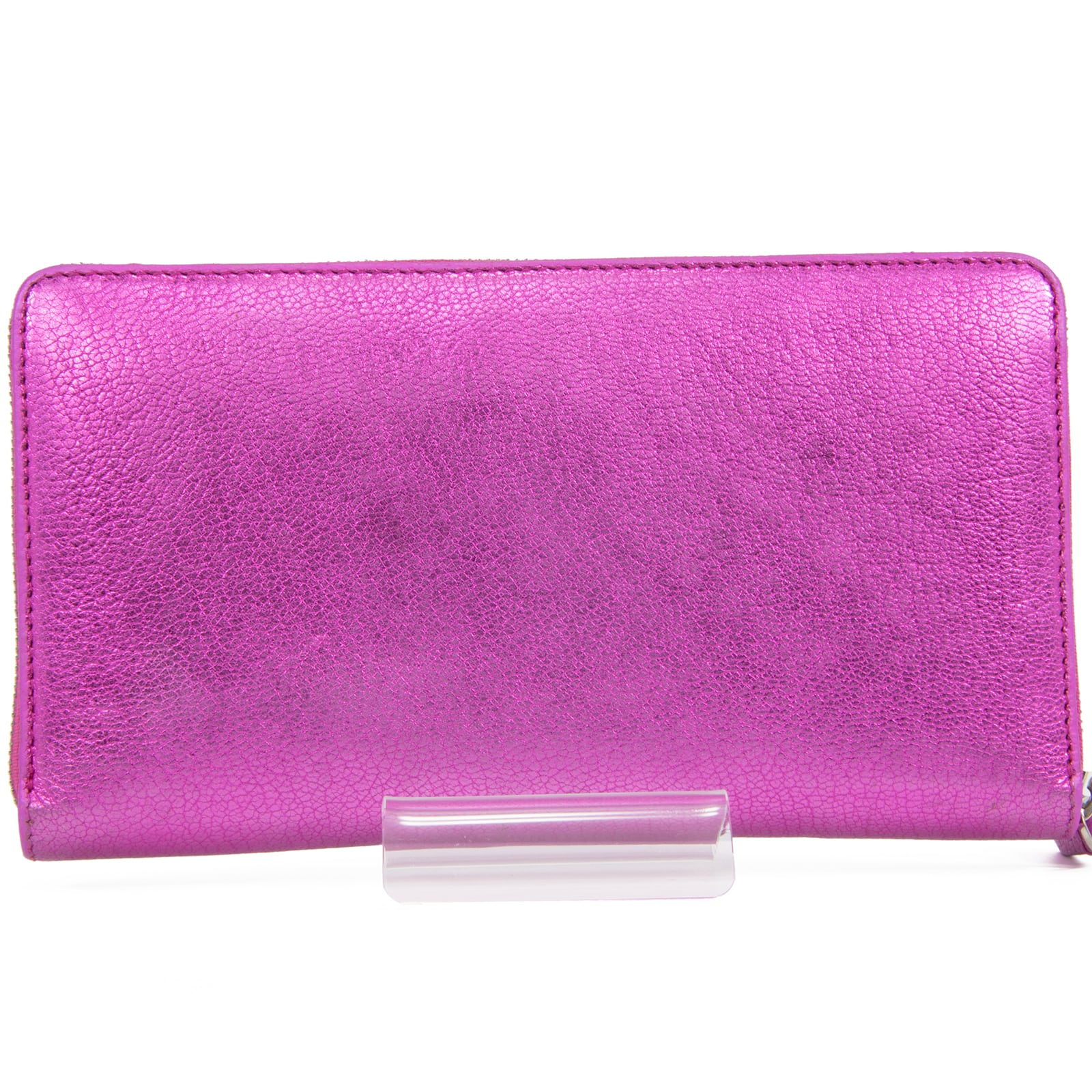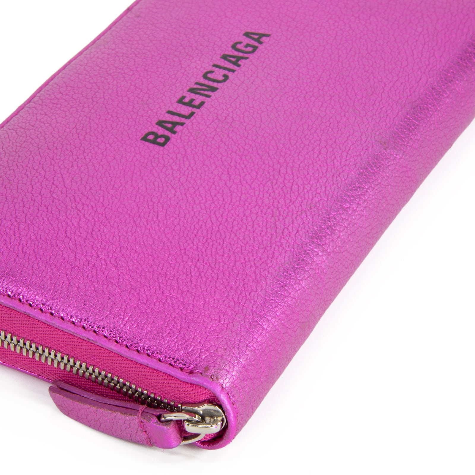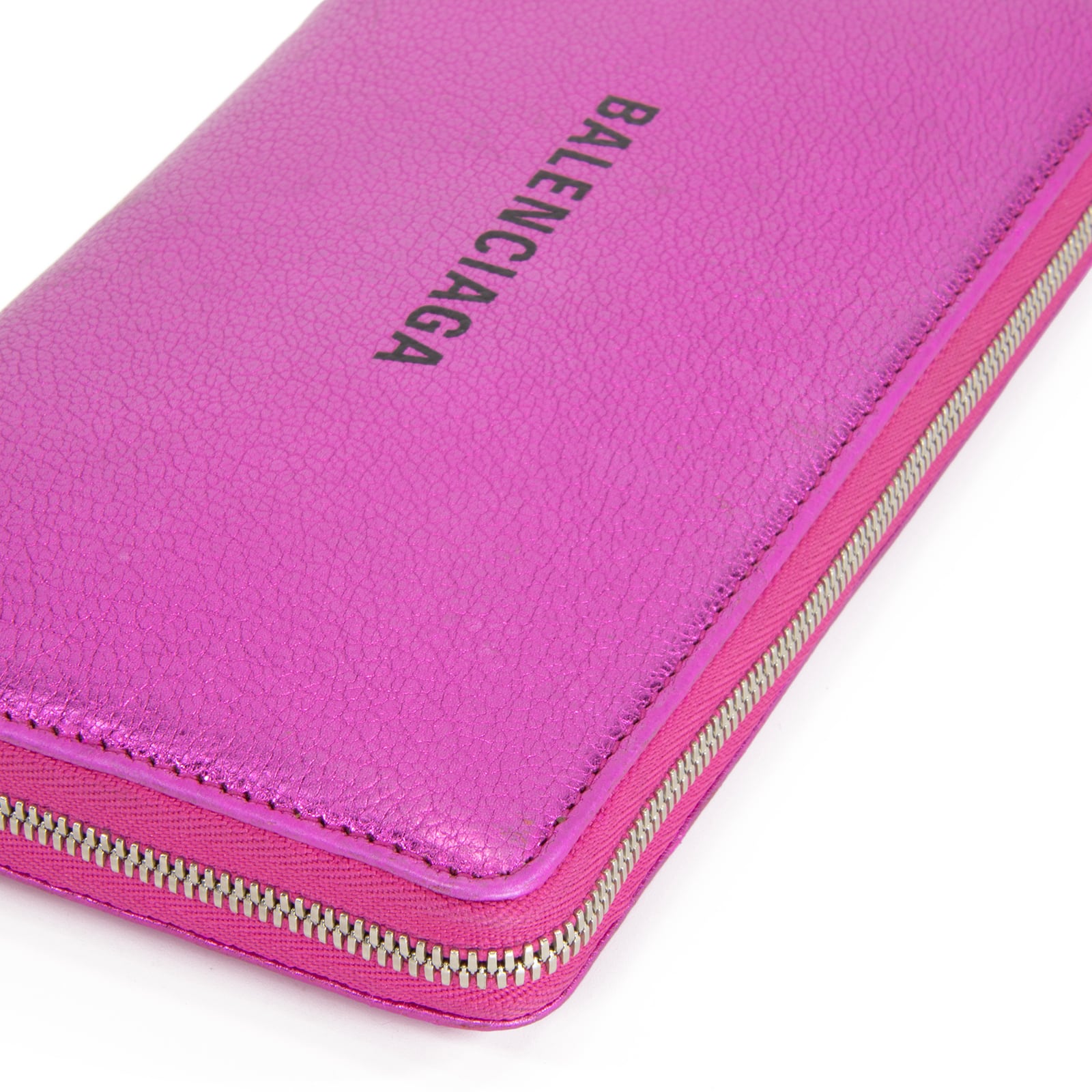 本物 送料無料 バレンシアガ 長財布 ラウンドファスナー レディース エブリデイ メタリックピンク 紫色 パープル レア ロゴ 派手 T032