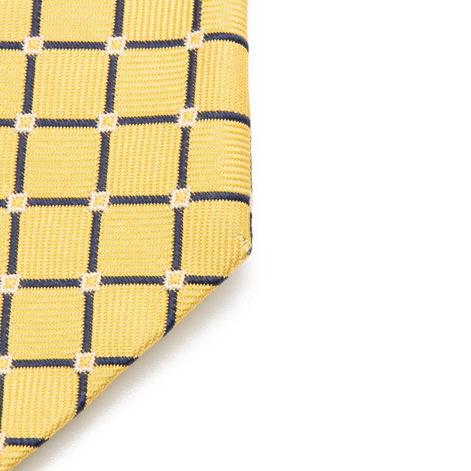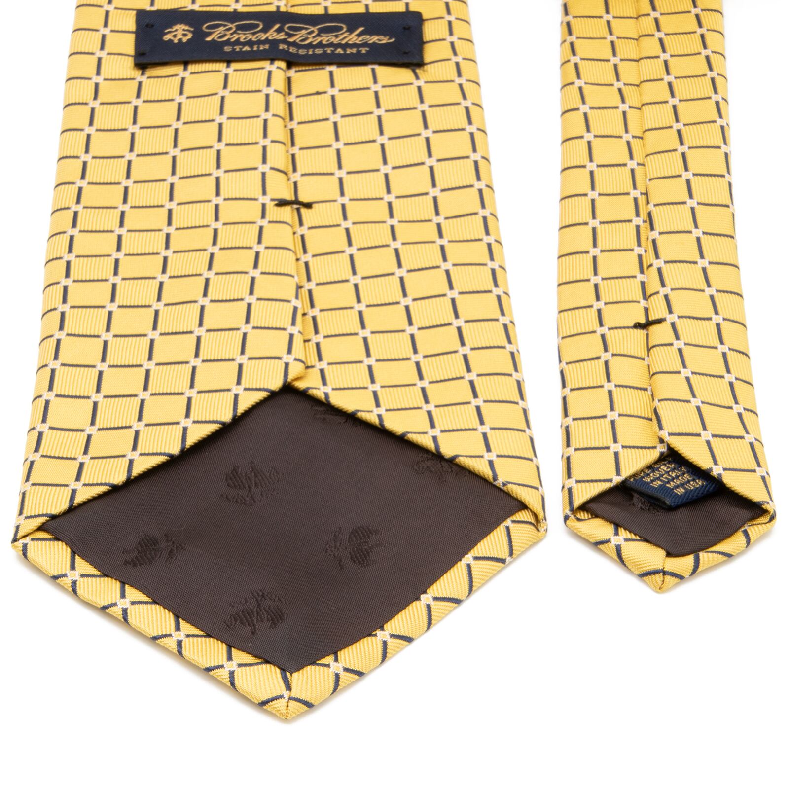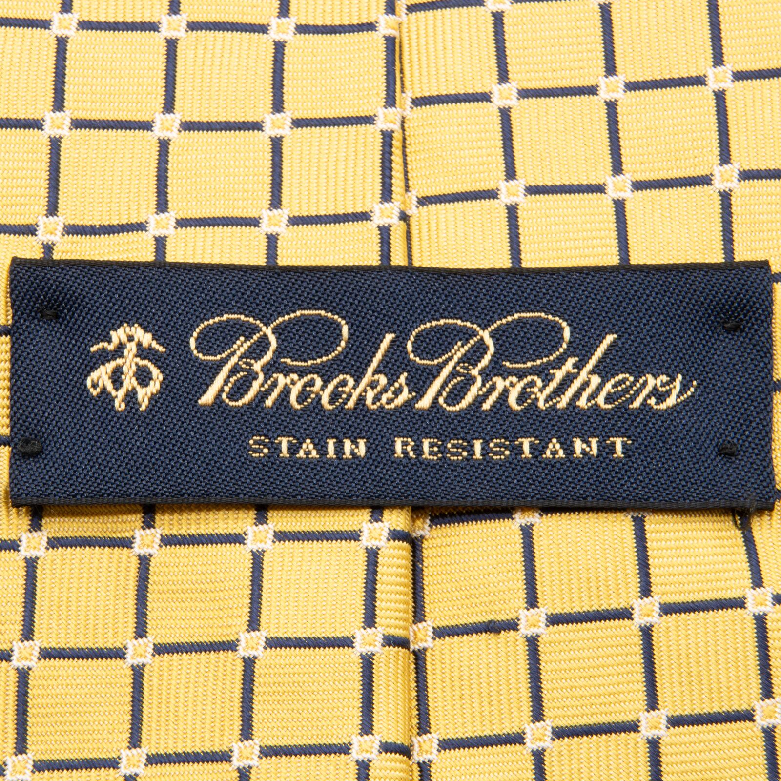 送料無料 ブルックスブラザーズ ネクタイ ジャガードタイ シルク 黄色 イエロー ネイビーブルー ブランド スクエア シンプル 幾何学 N462