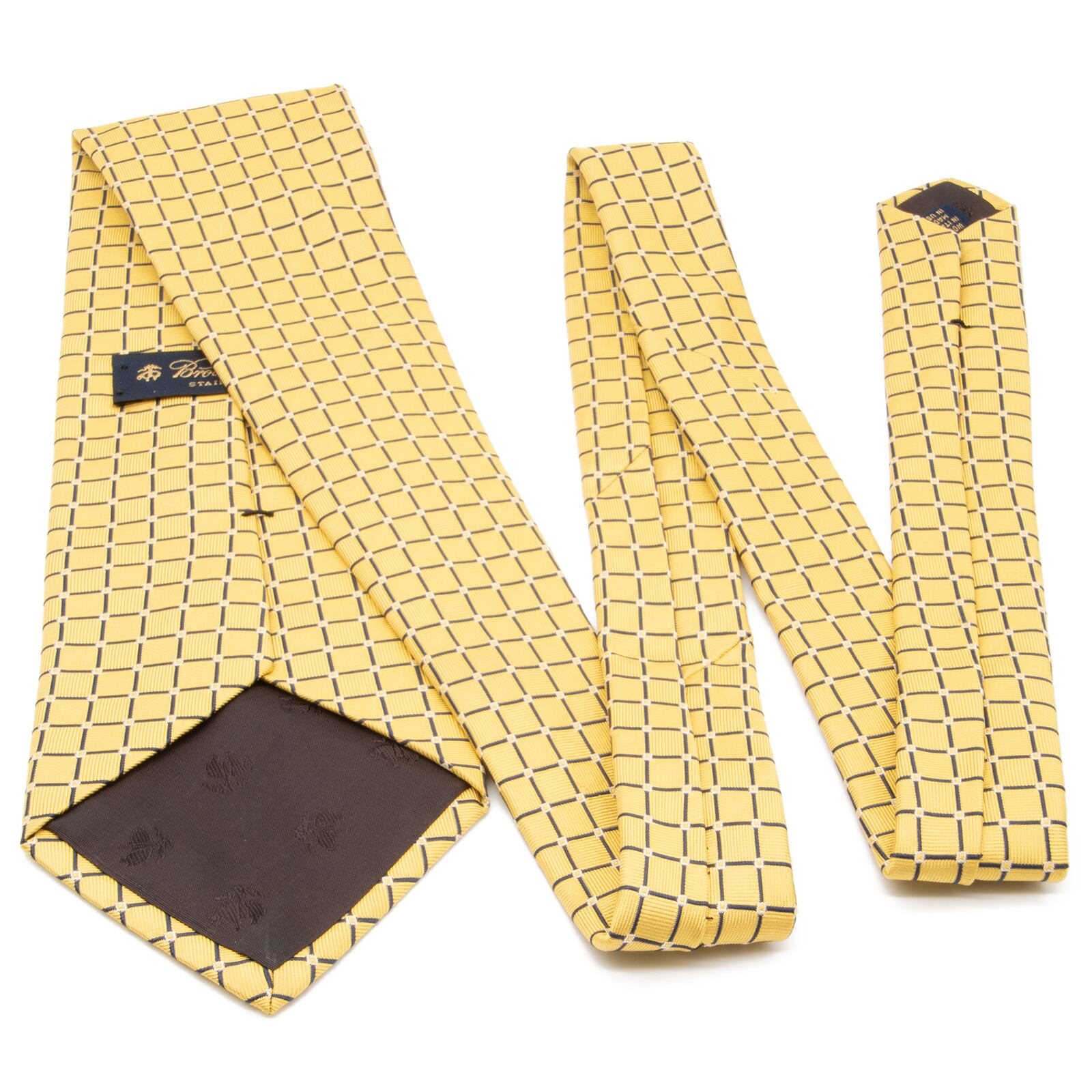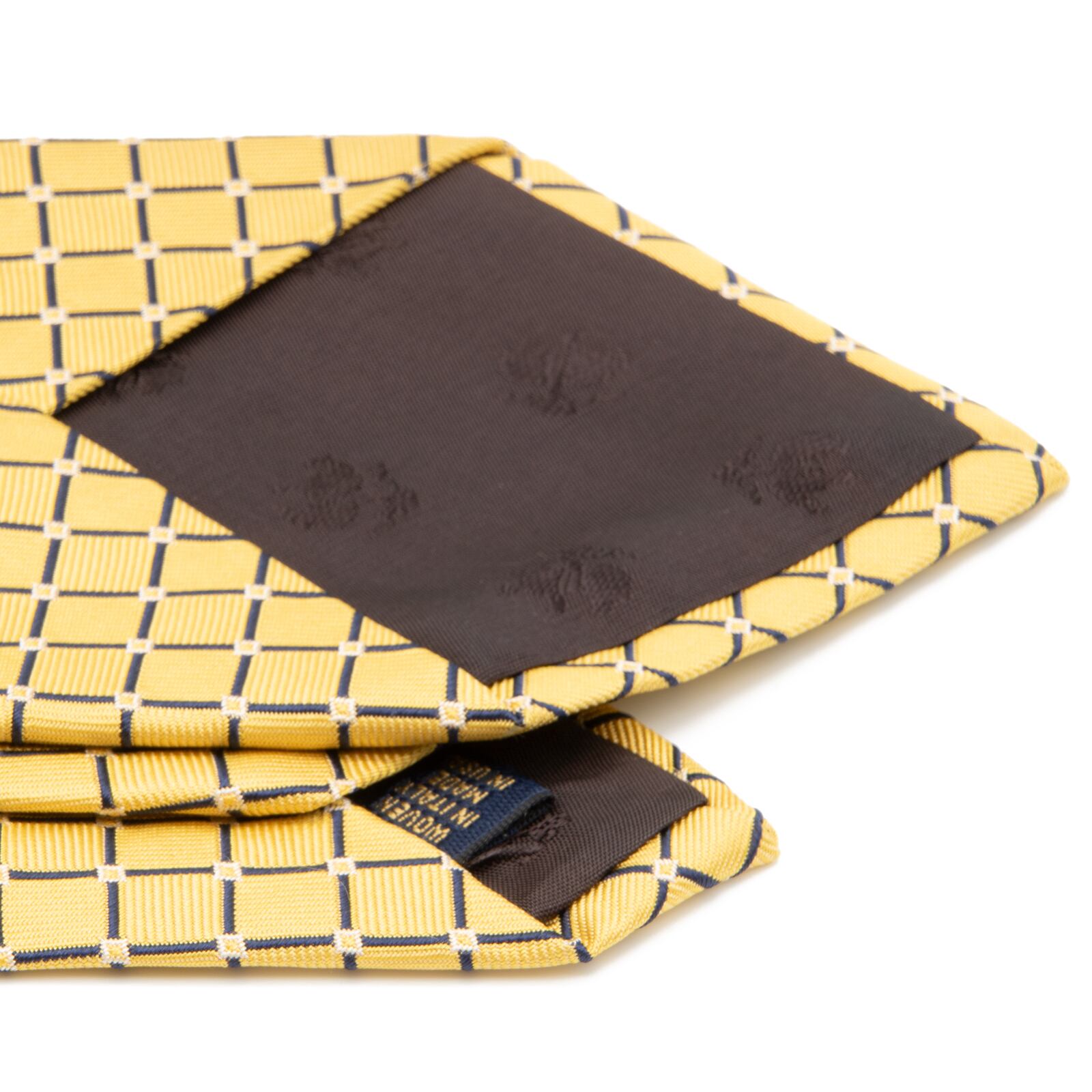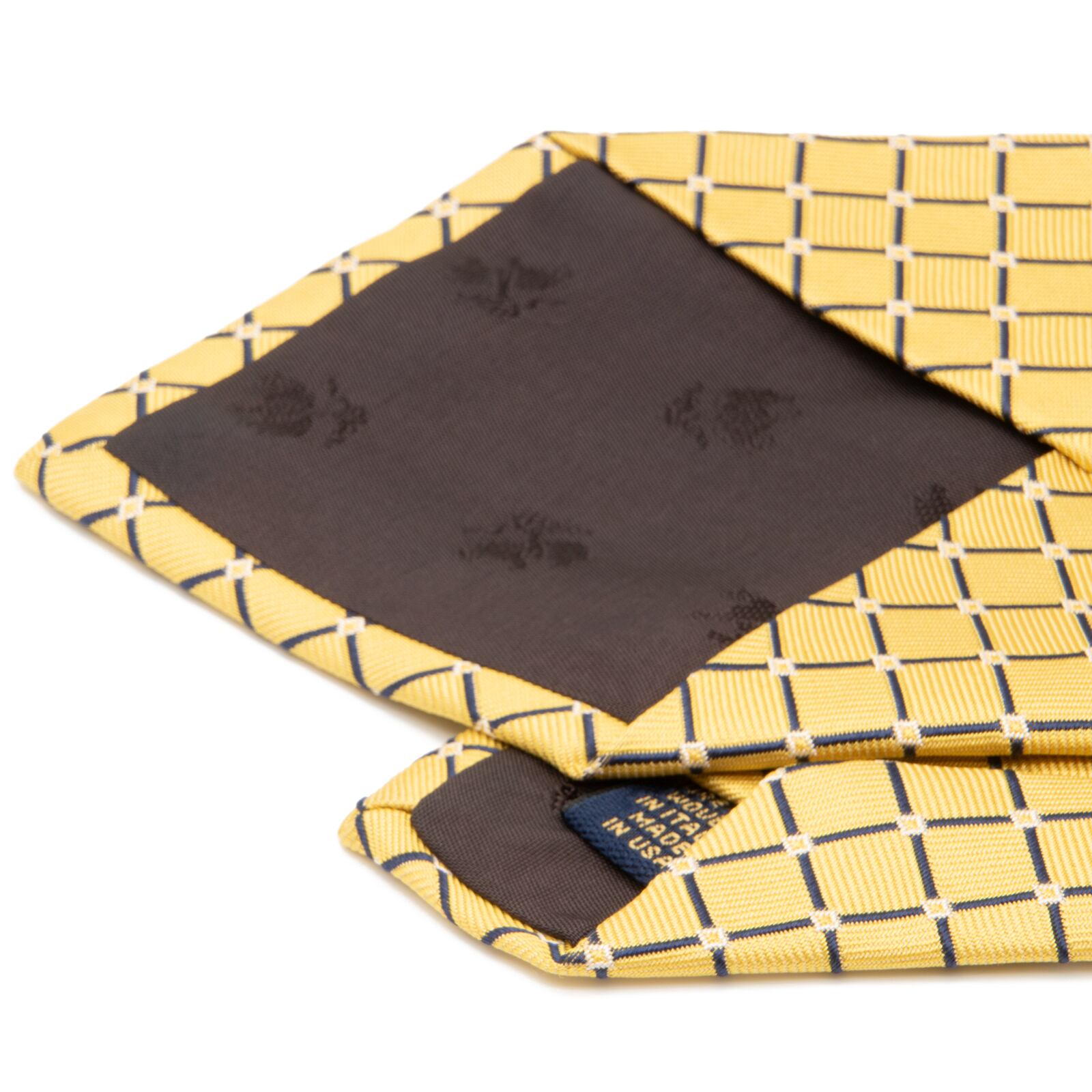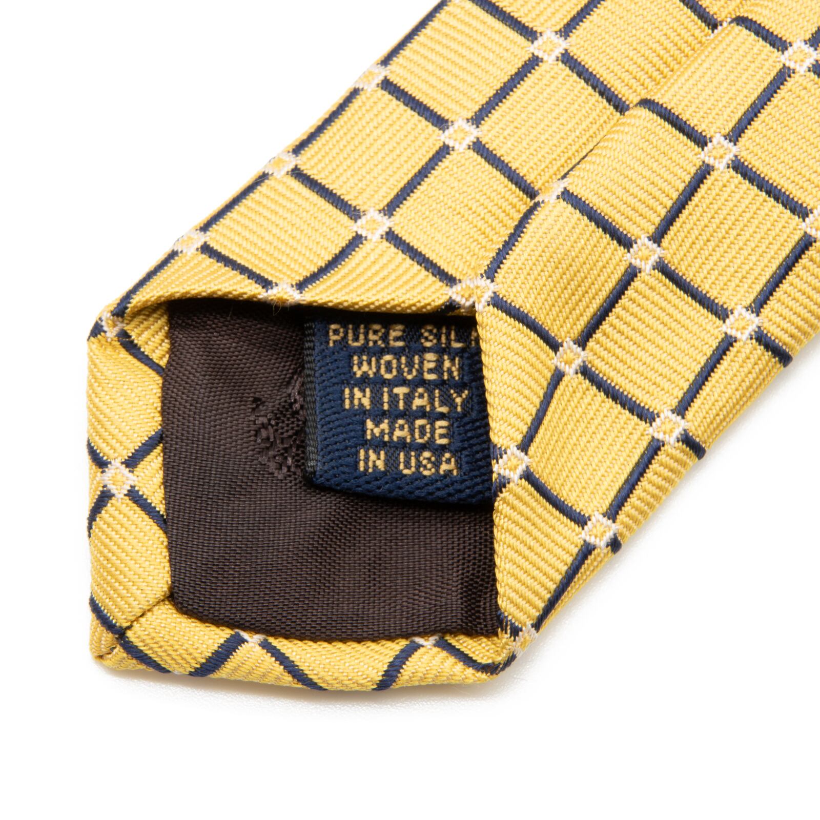 送料無料 ブルックスブラザーズ ネクタイ ジャガードタイ シルク 黄色 イエロー ネイビーブルー ブランド スクエア シンプル 幾何学 N462