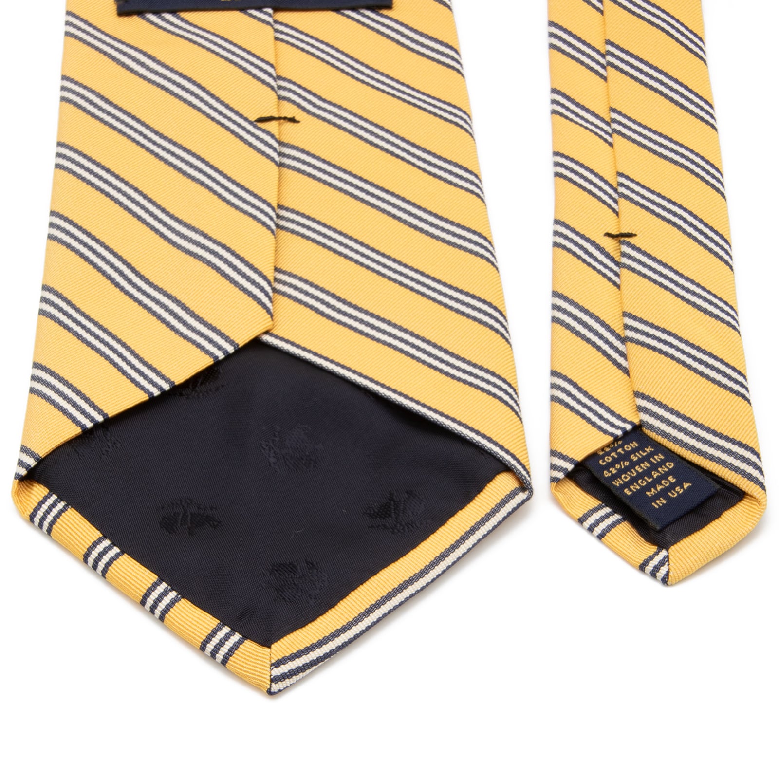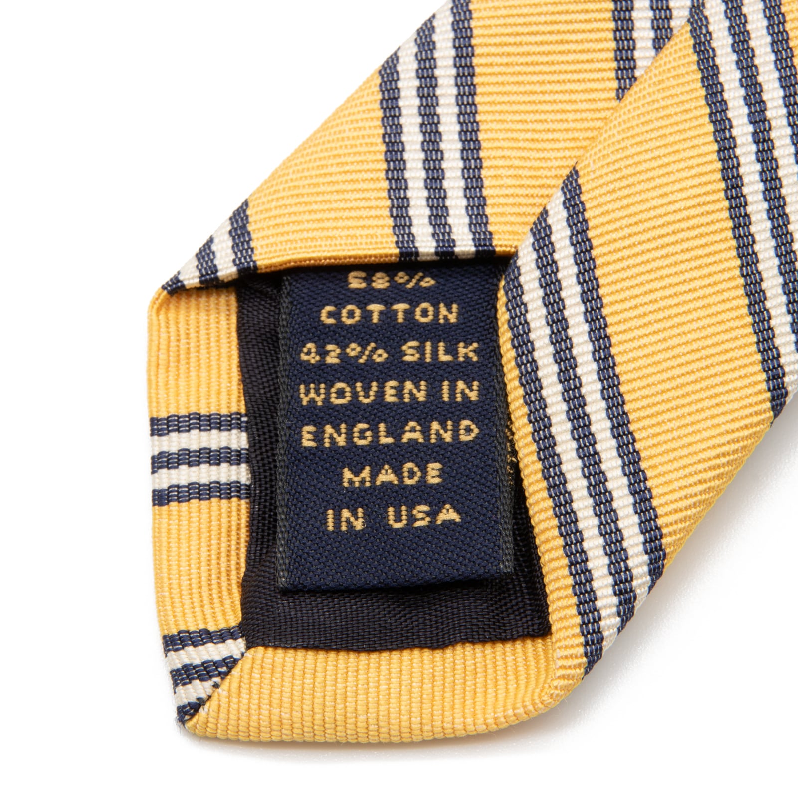 送料無料 ブルックスブラザーズ ネクタイ 新品同様 ジャガードタイ コットン シルク 黄色 イエロー 白 ビジネス ストライプ シンプル N467
