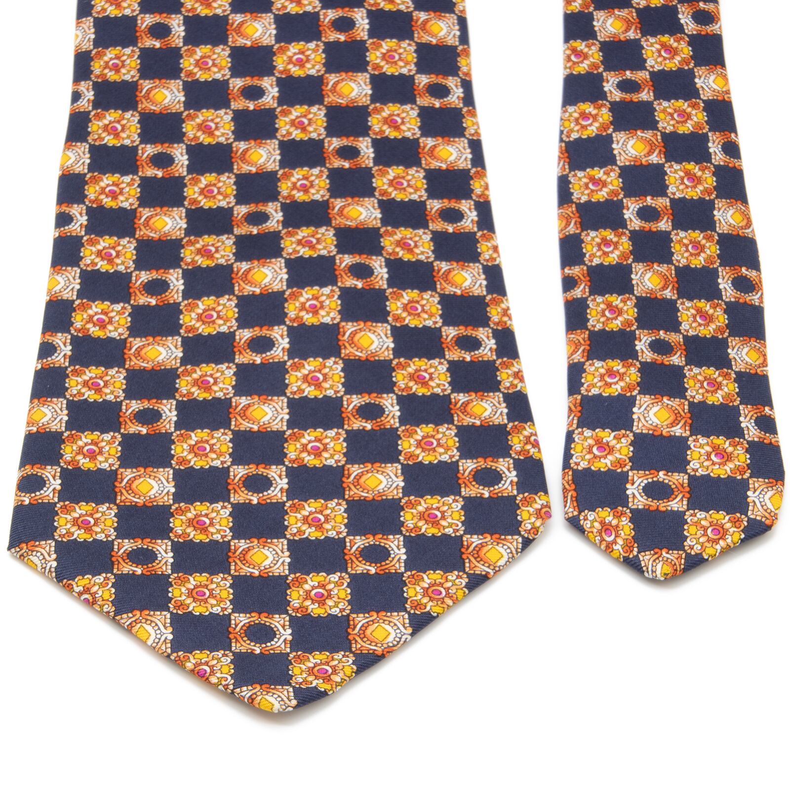 送料無料 ピエールバルマン ネクタイ 新品 ワイドタイ シルク ネイビーブルー オレンジ ブランド パターン ビジュー フランス製 綺麗 N468