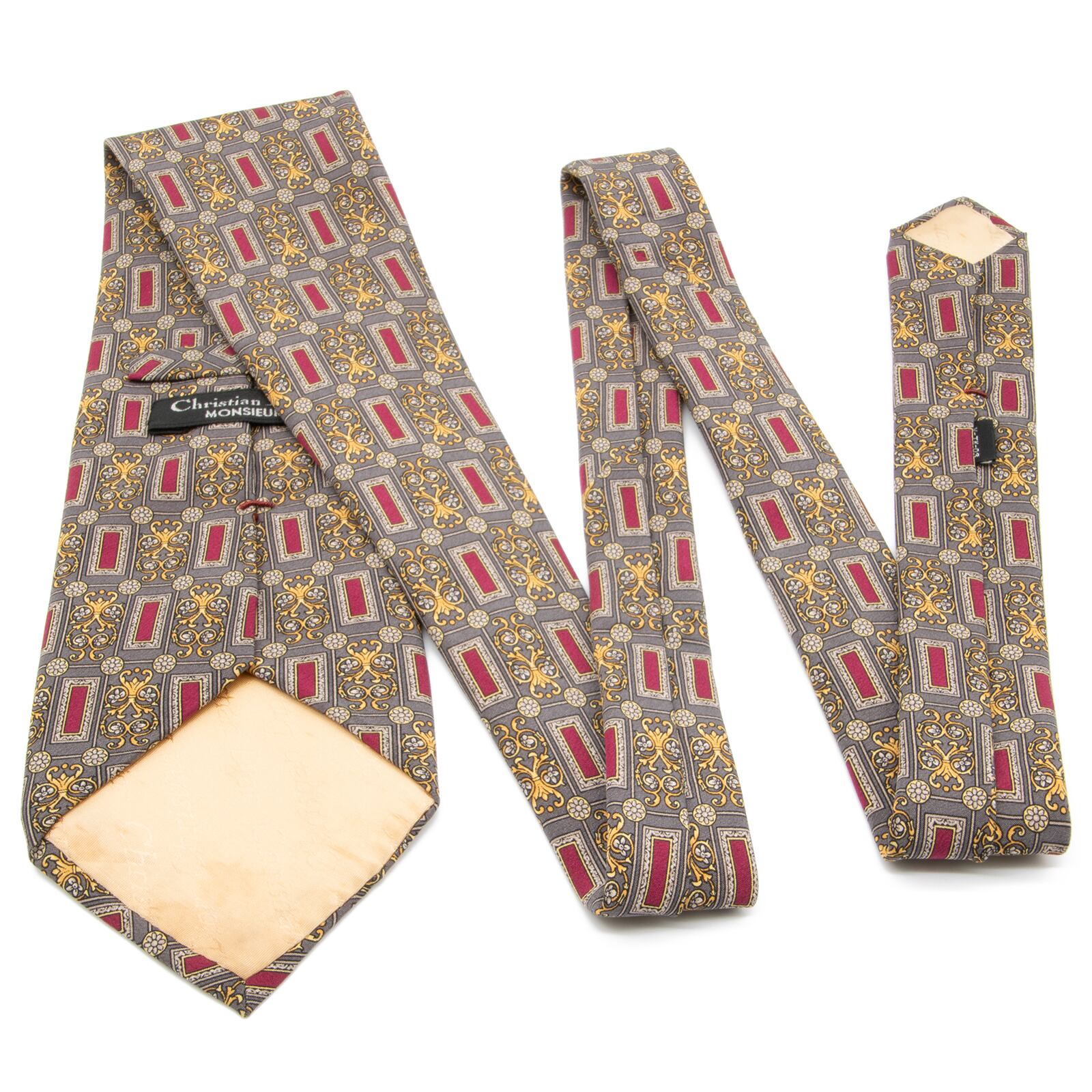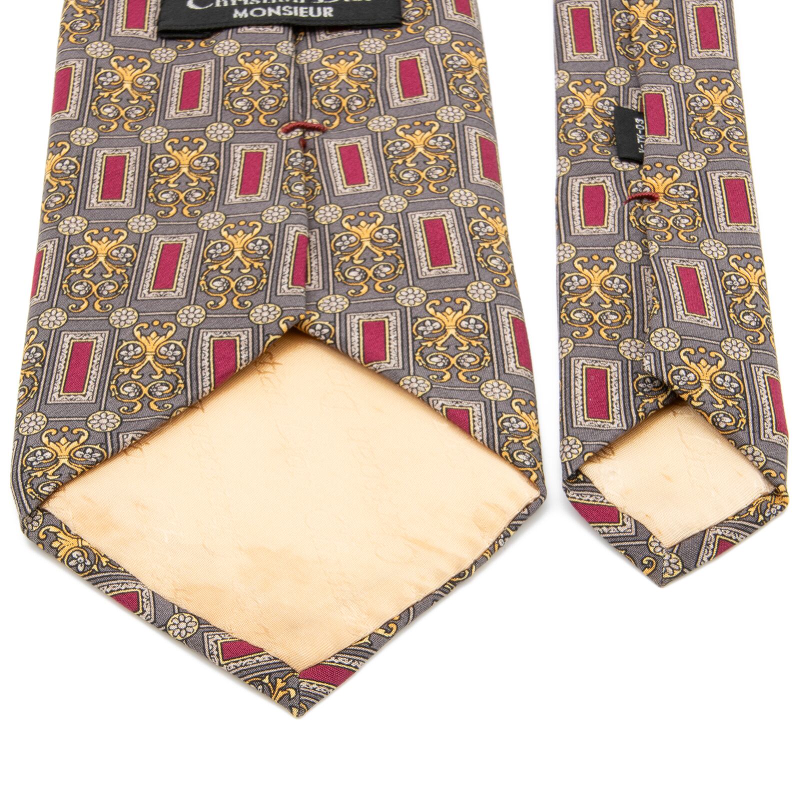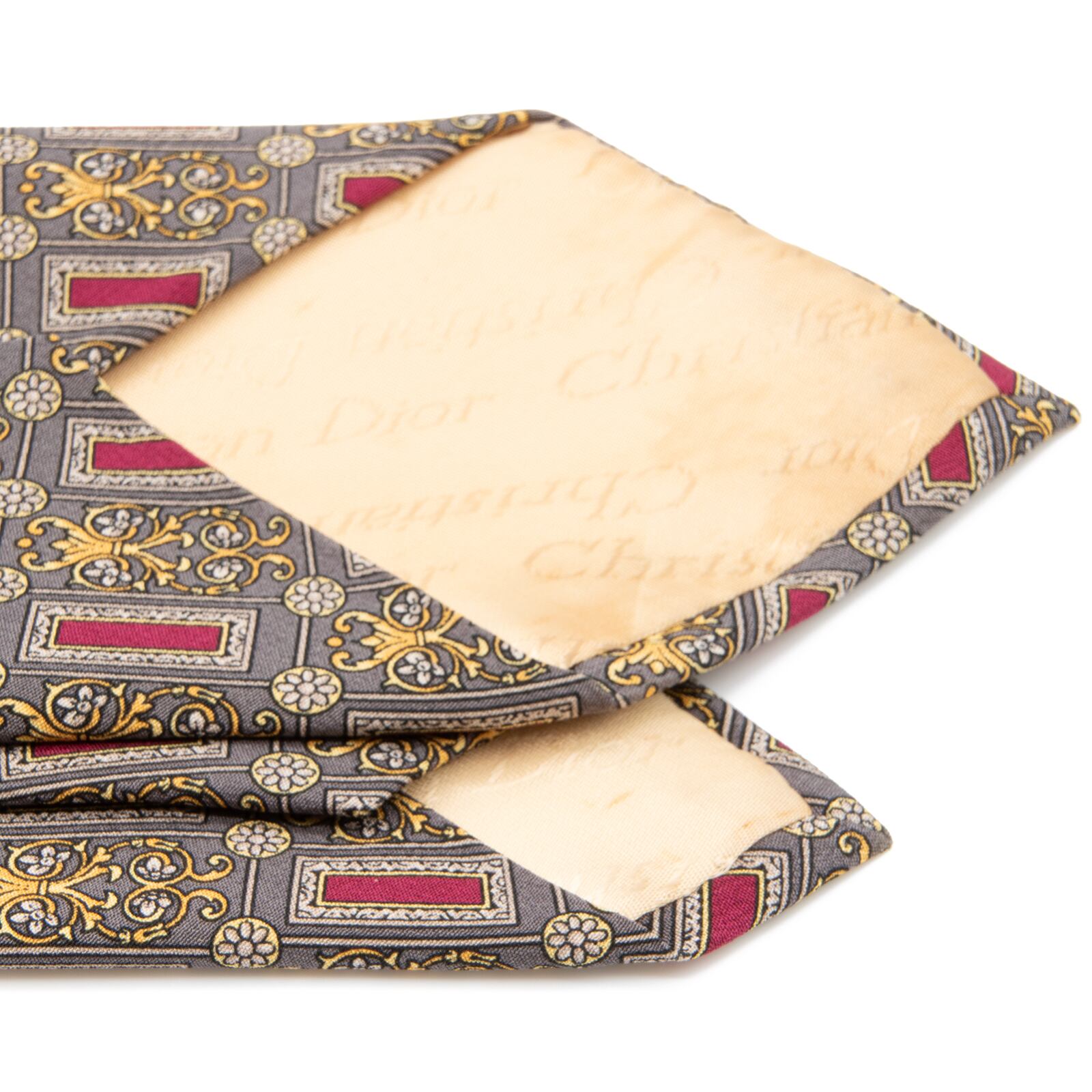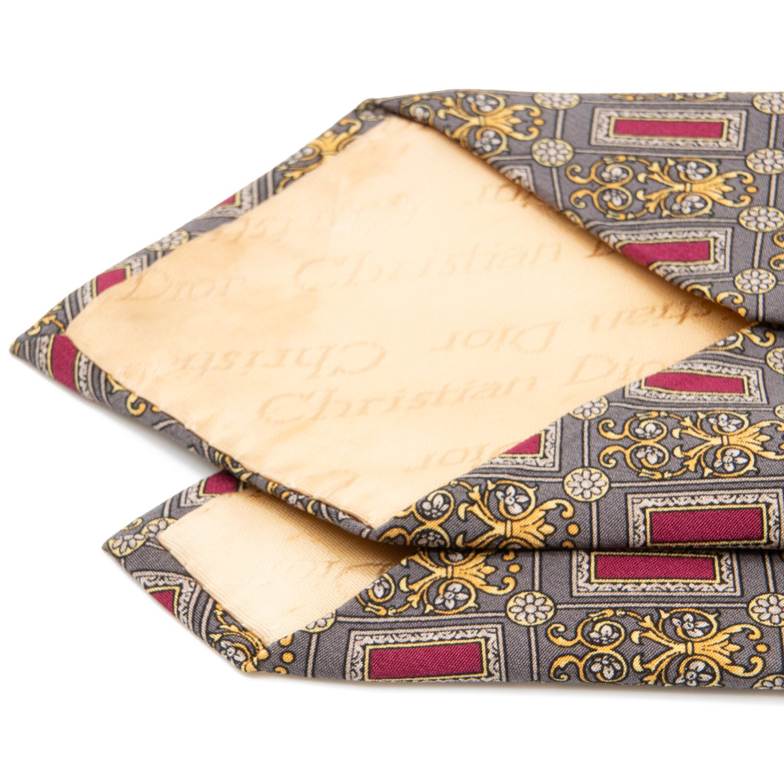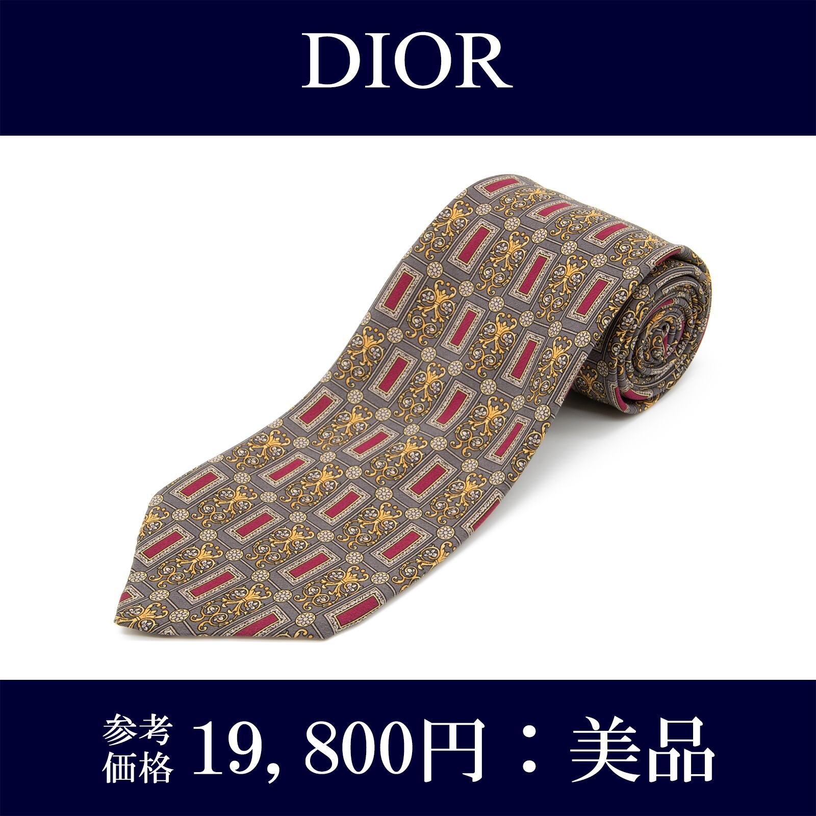 送料無料 ディオール ネクタイ レギュラータイ シルク グレー ワインレッド 黄色 イエロー ブランド 西洋テイスト 日本製 レア 綺麗 N470