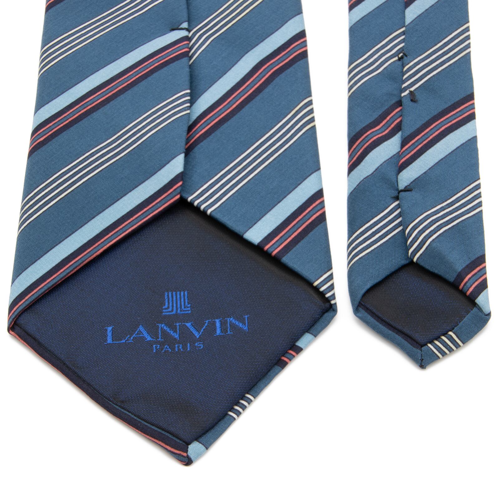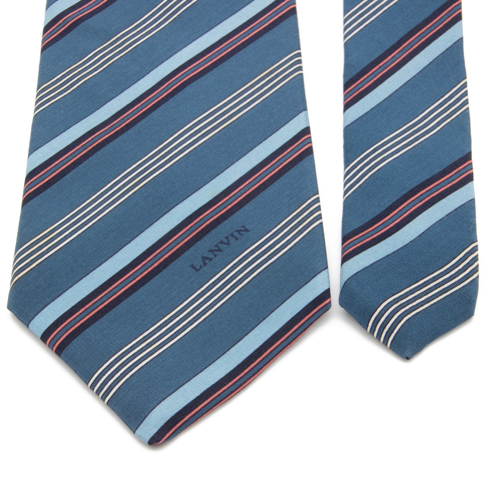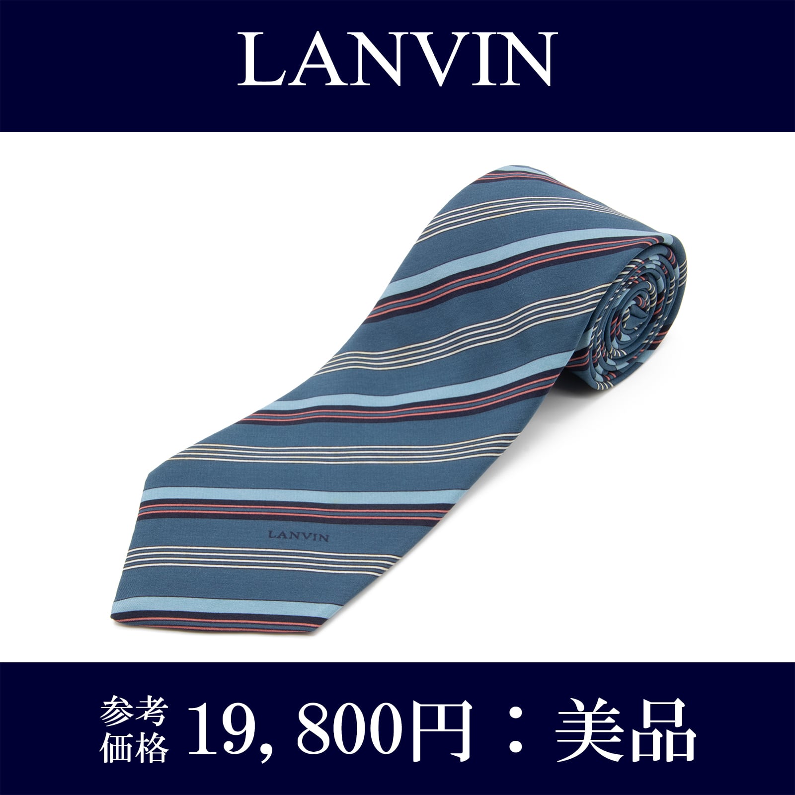 送料無料 ランバン ネクタイ レギュラータイ シルク 青 ブルー 白 ホワイト ピンク ブランド ストライプ ロゴ シンプル レア 綺麗 N477