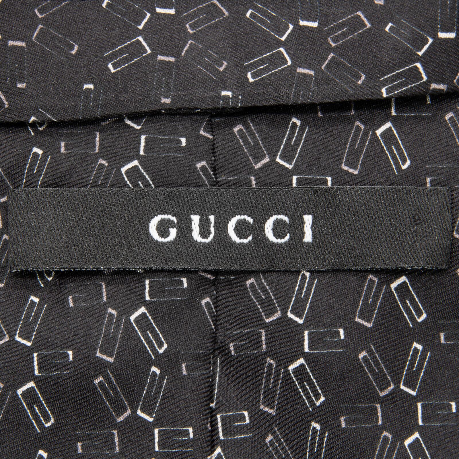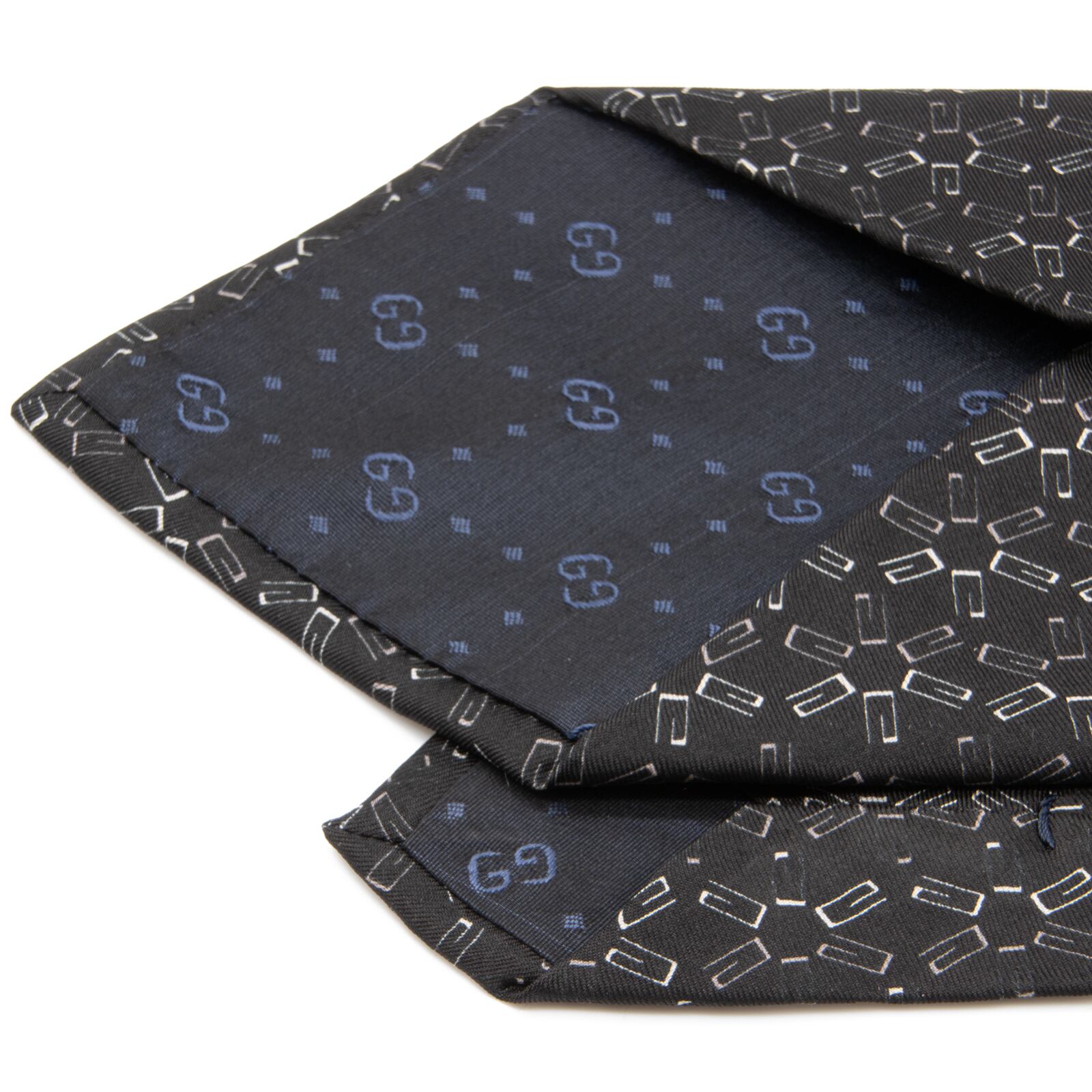 送料無料 グッチ ネクタイ ワイドタイ シルク 黒 ブラック ダークグレー 白 ホワイト ビジネス ブランド GGロゴ マーク クレスト 綺麗 N480