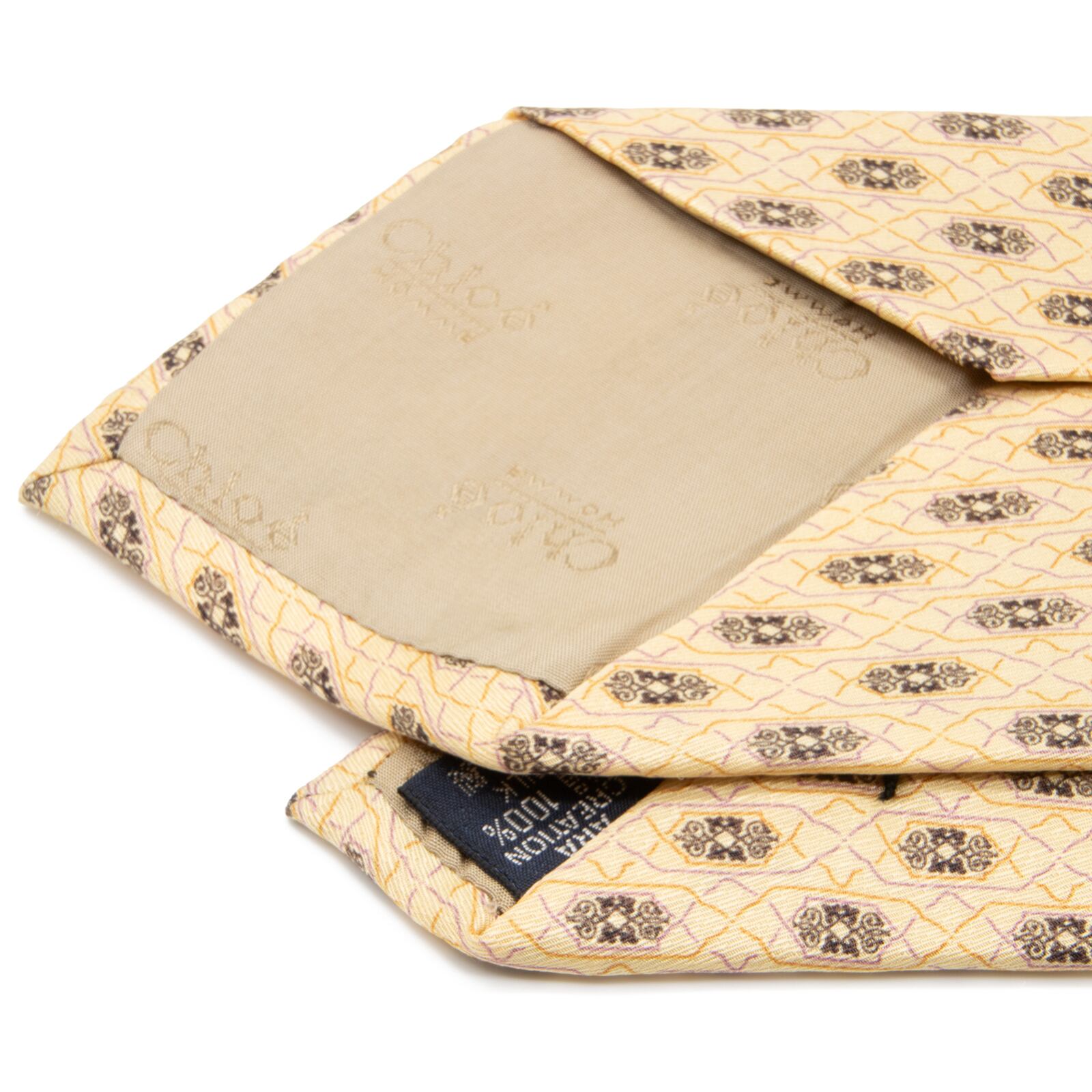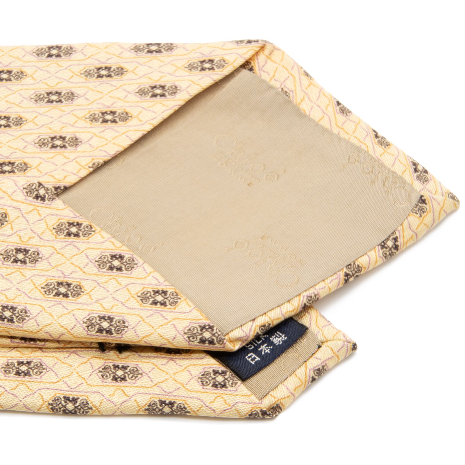 送料無料 クロエ ネクタイ レギュラータイ シルク バイカラー 黄色 イエロー ダークブラウン ビジネス カジュアル ブランド レア 綺麗 N485
