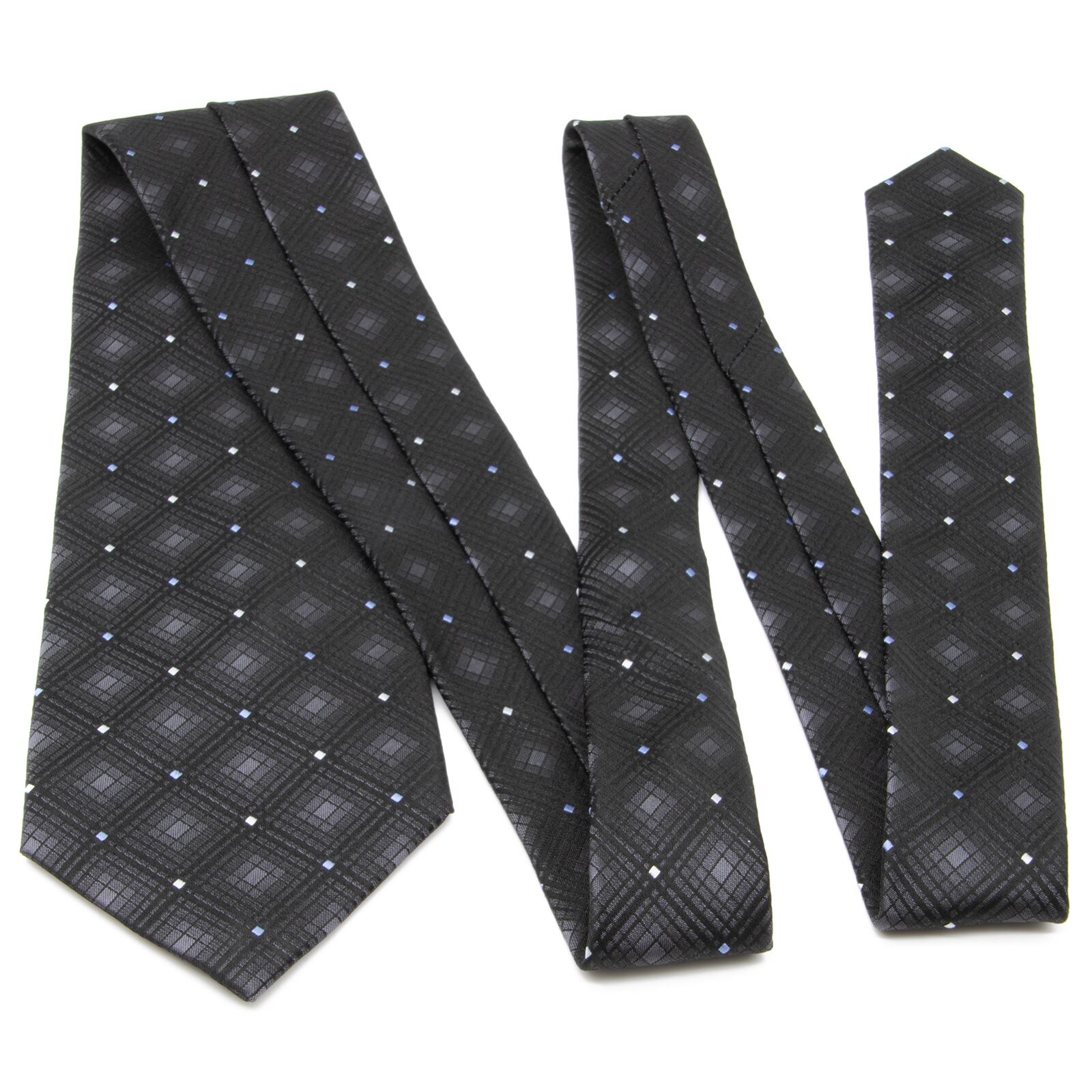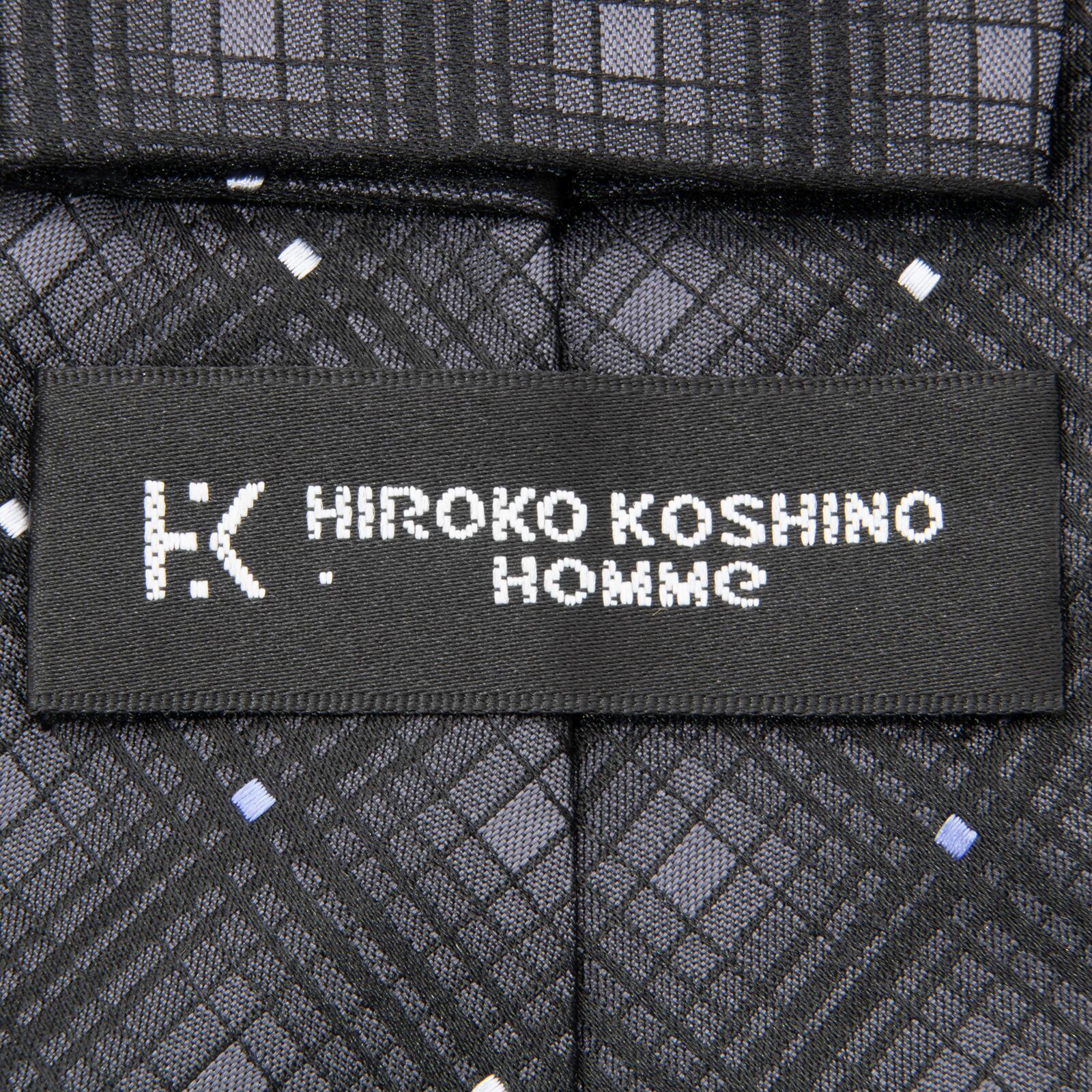 送料無料 ヒロココシノ ネクタイ 新品 ジャガードタイ シルク 黒 ブラック 青 ブルー グレー ビジネス ブランド チェック ドット レア N490