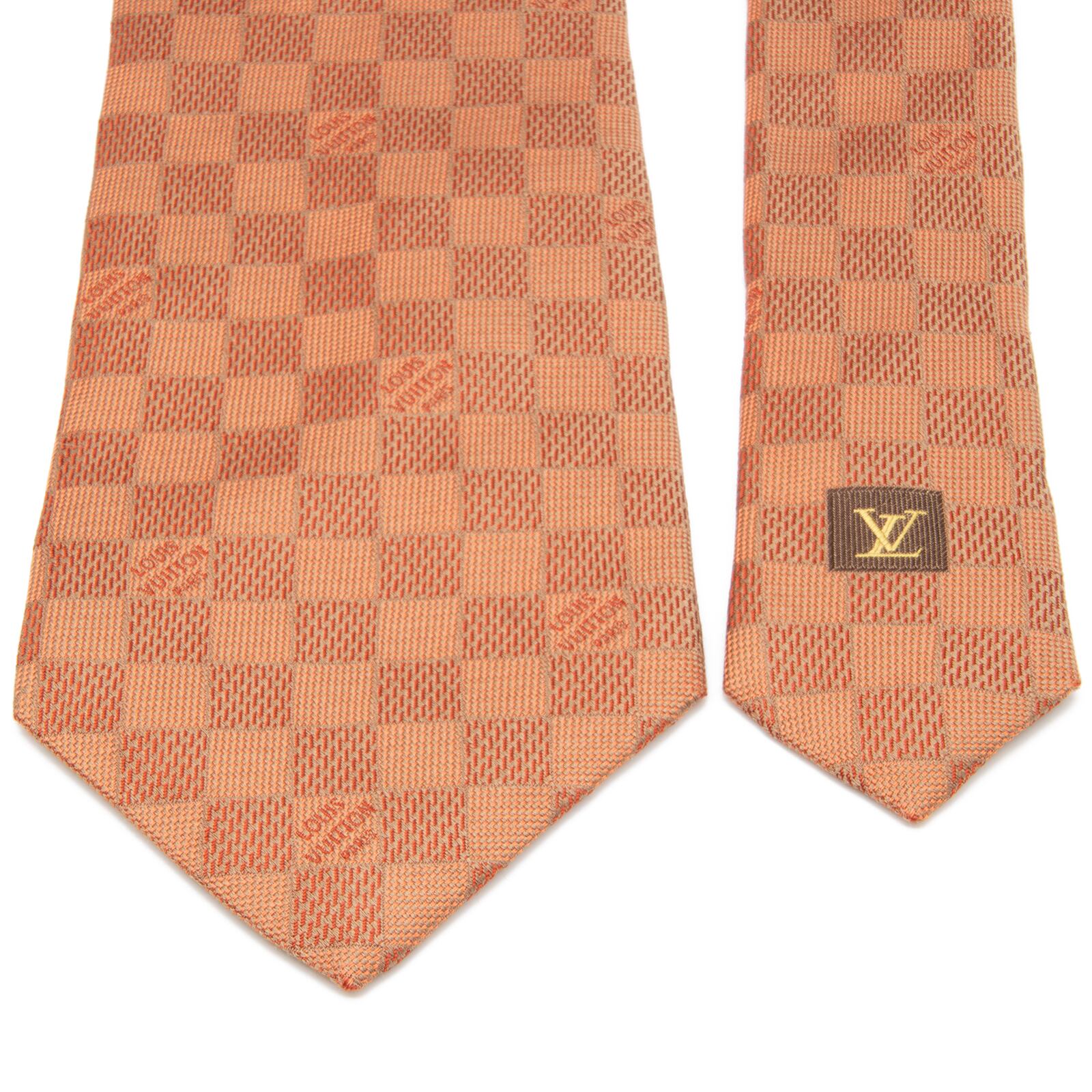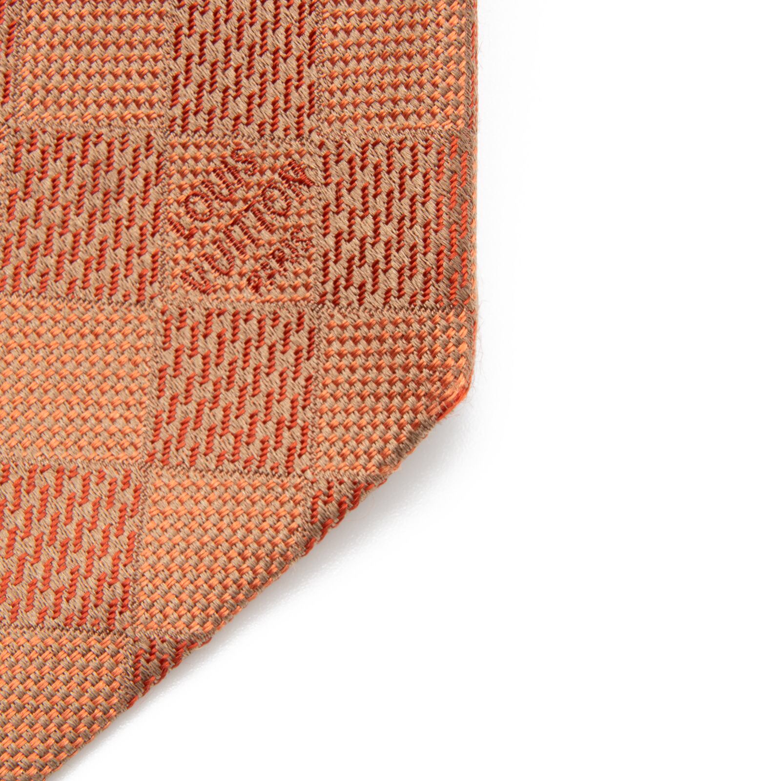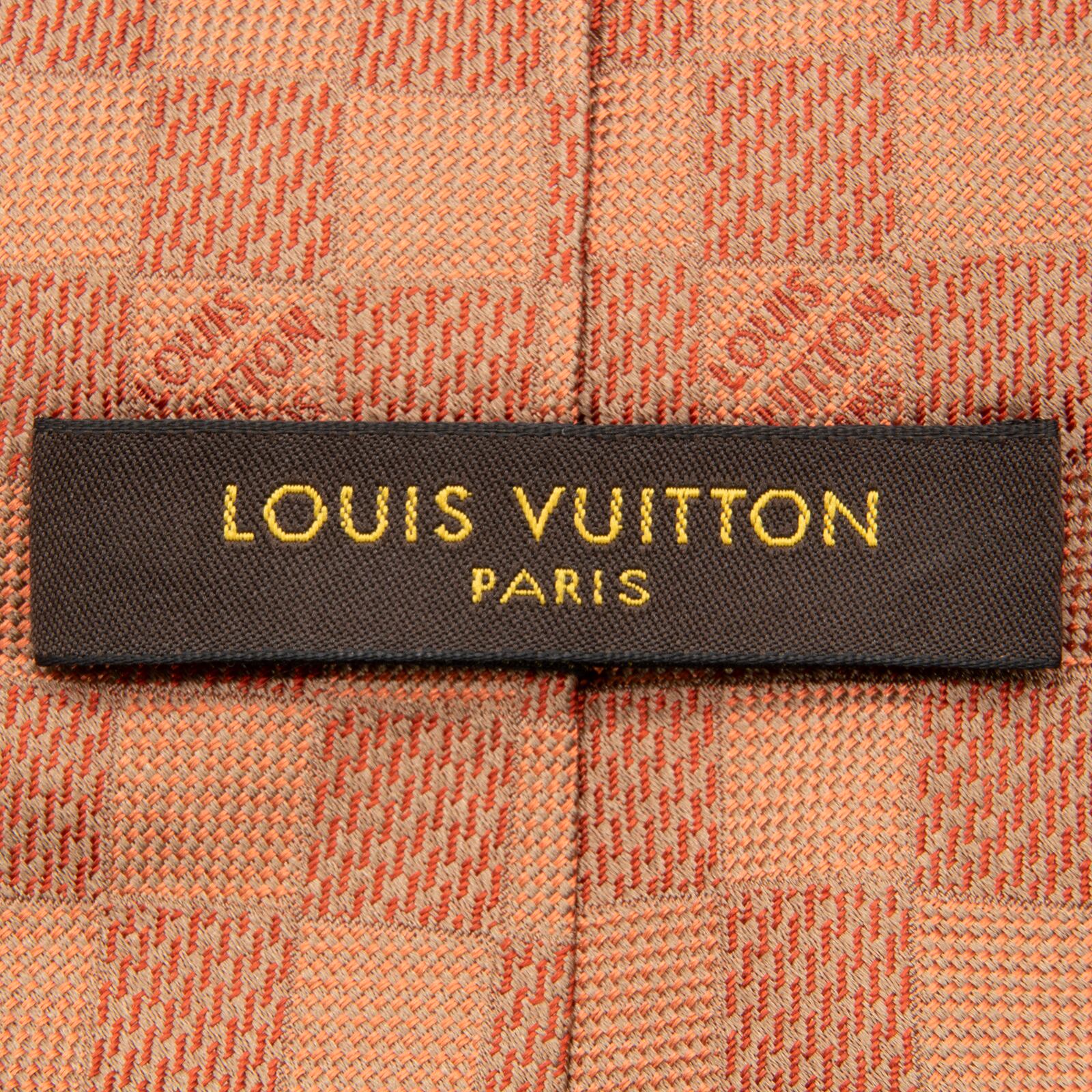 送料無料 ヴィトン ネクタイ ジャガードタイ シルク オレンジ ビジネス カジュアル ブランド ダミエ タイル ロゴ マーク レア 綺麗 N506