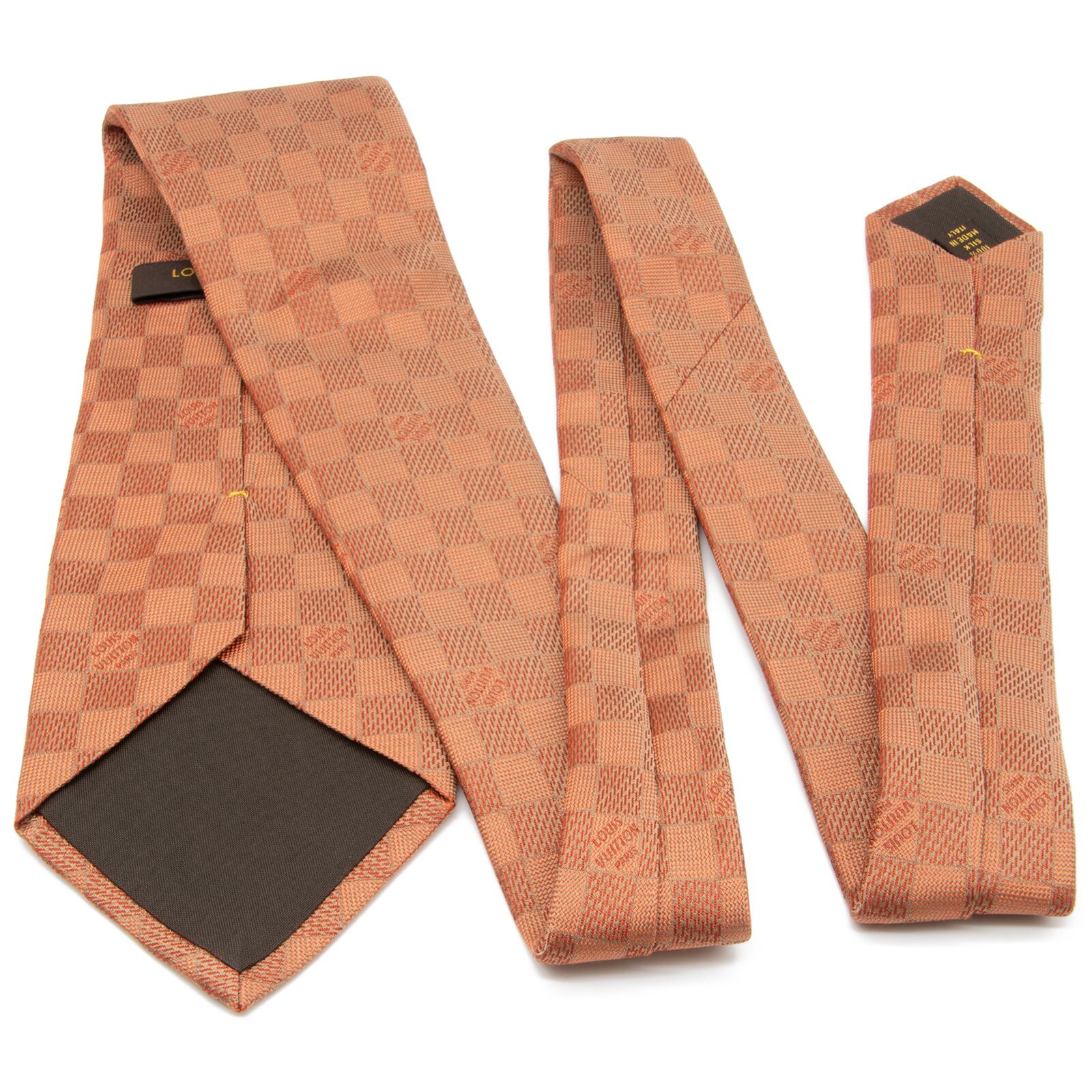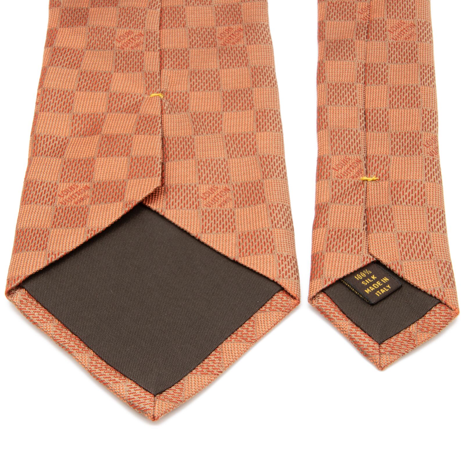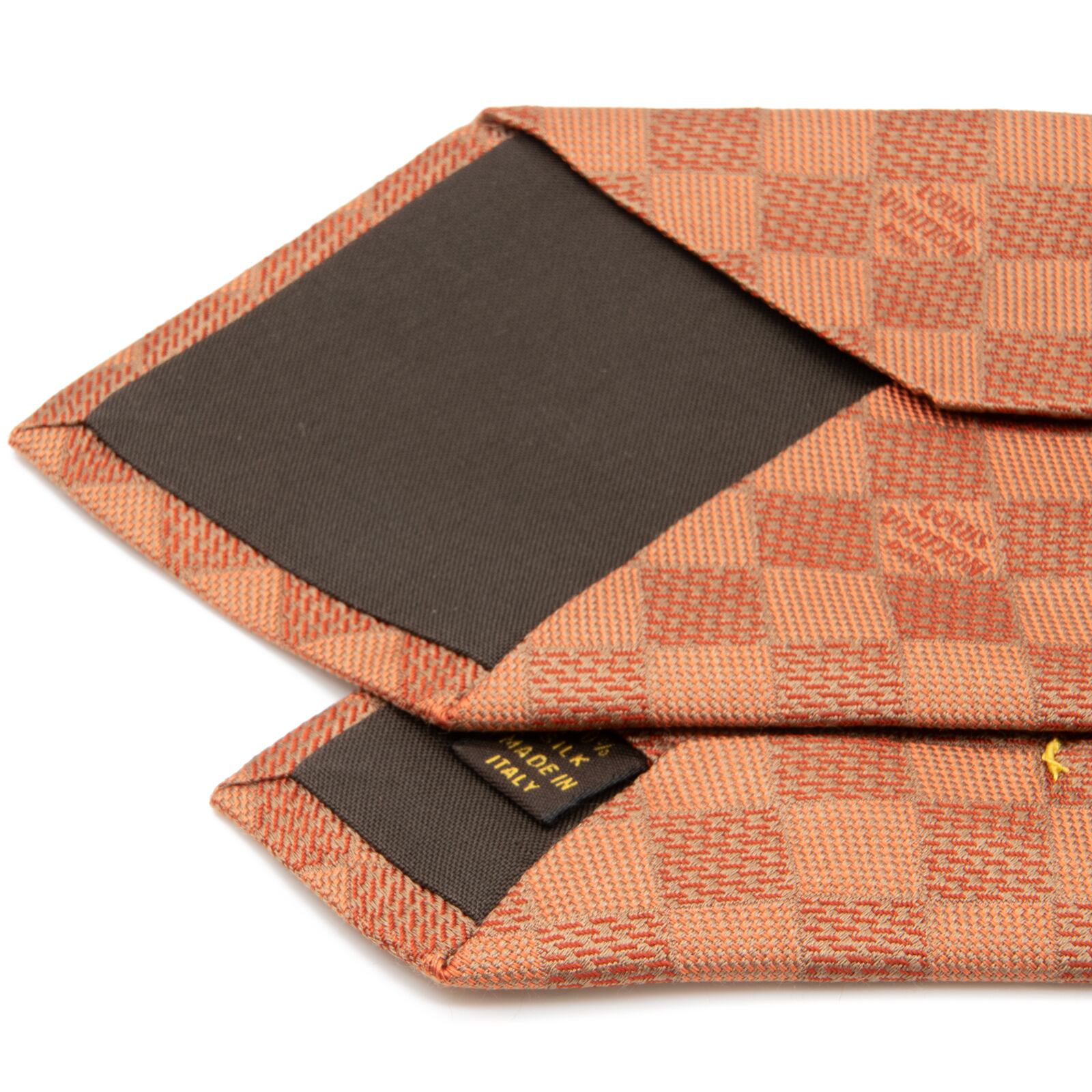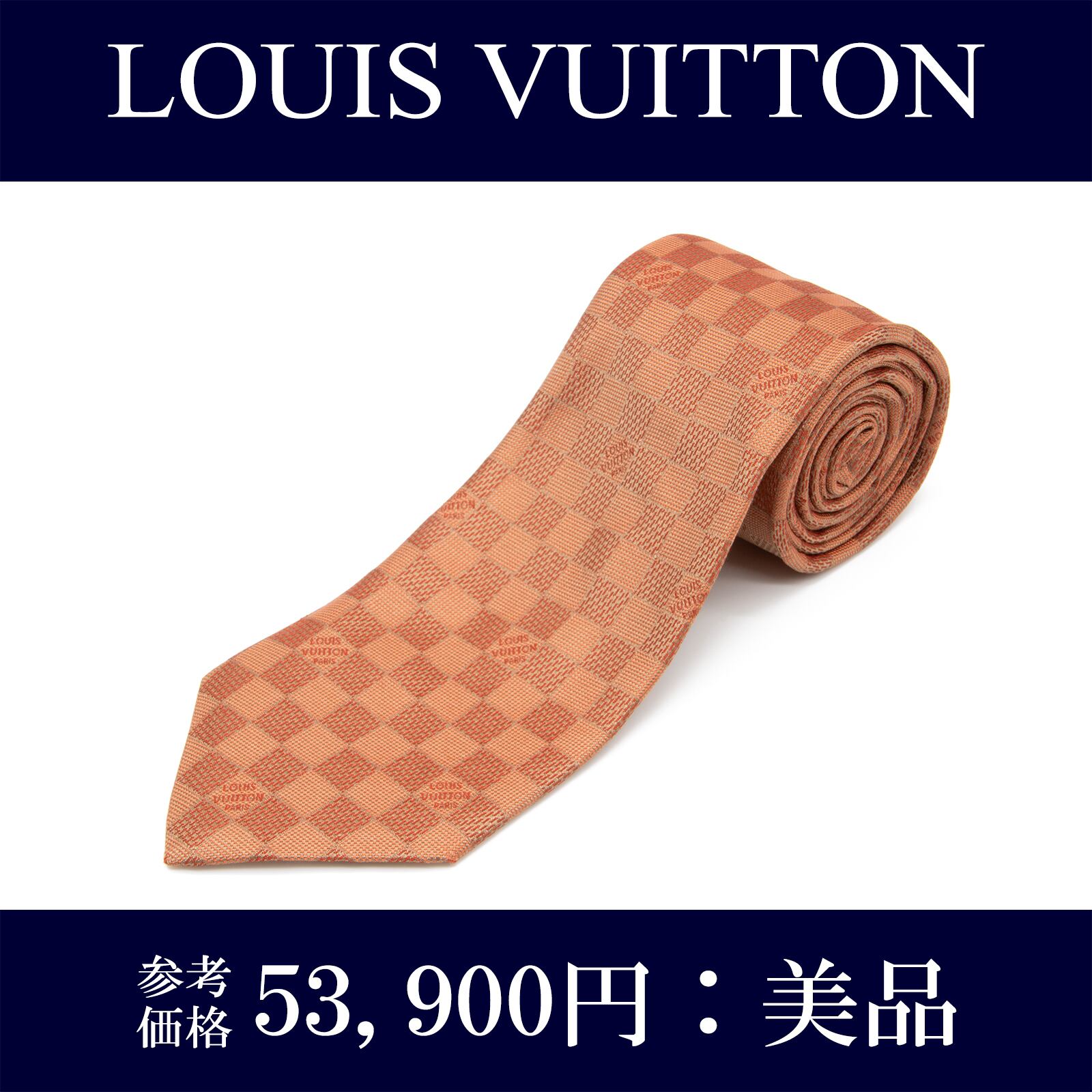 送料無料 ヴィトン ネクタイ ジャガードタイ シルク オレンジ ビジネス カジュアル ブランド ダミエ タイル ロゴ マーク レア 綺麗 N506