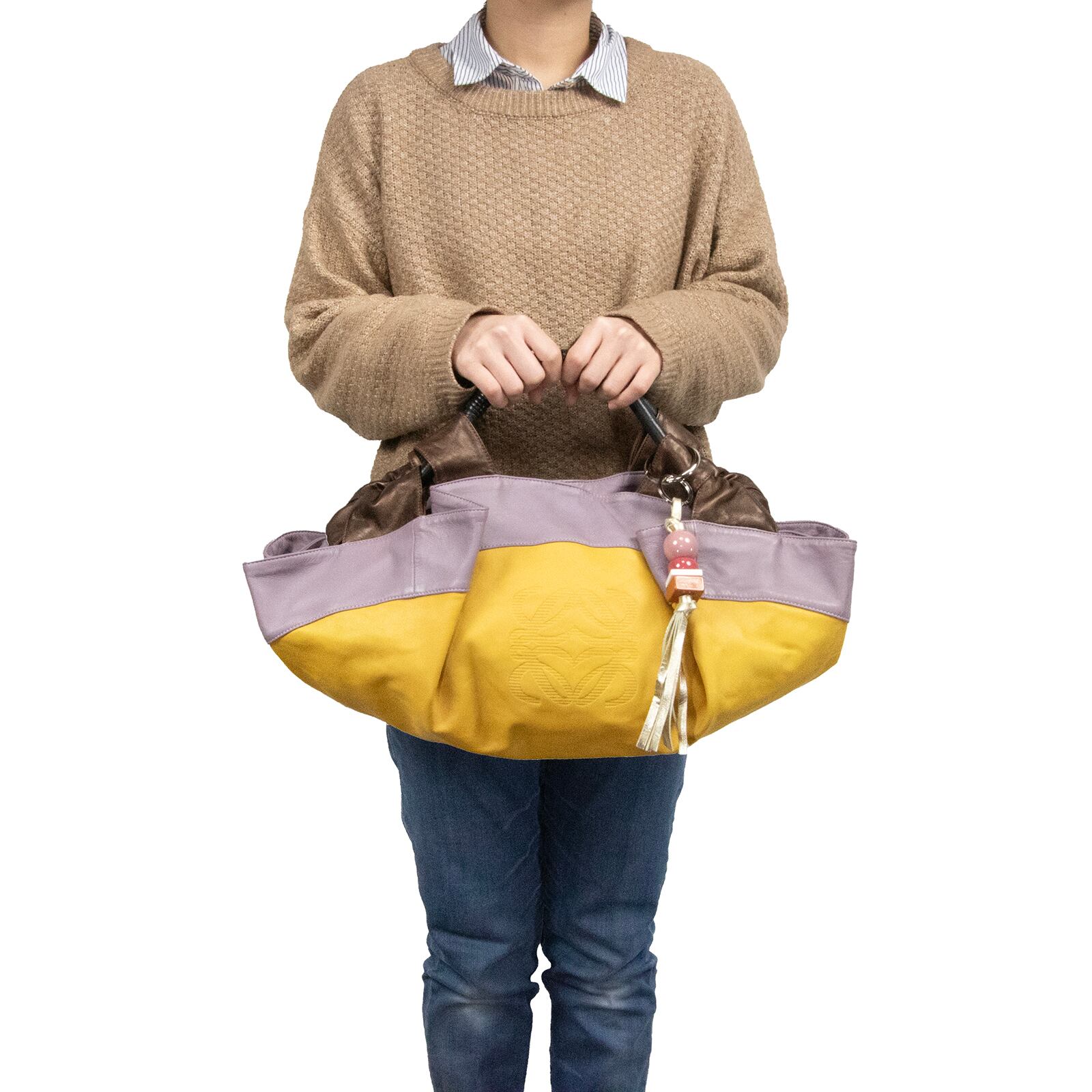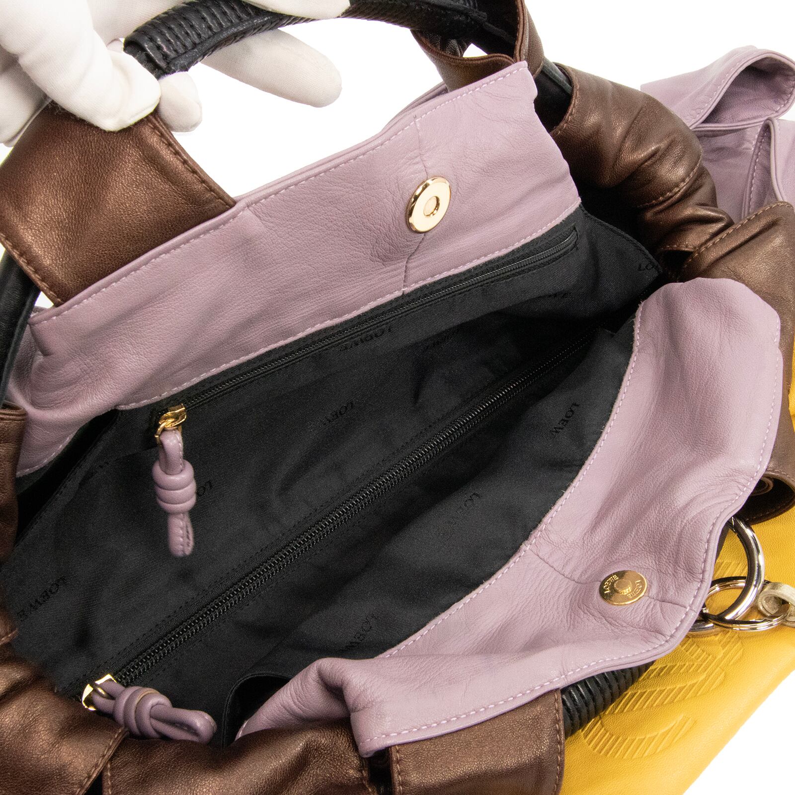 本物 送料無料 ロエベ ハンドバッグ レディース ナッパアイレ 黄色 紫 メタリックブラウン ブラック レアカラー ロゴ マーク 大容量 L154
