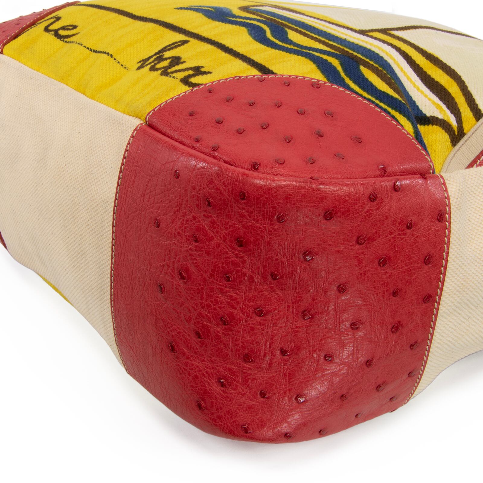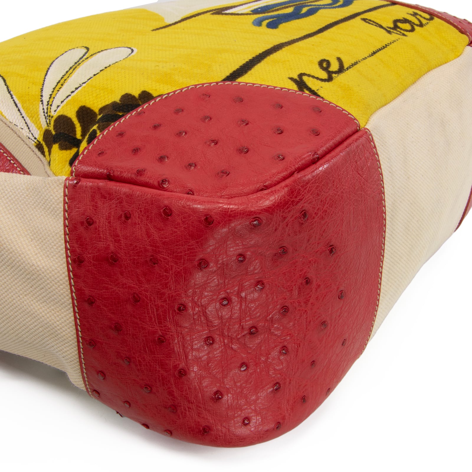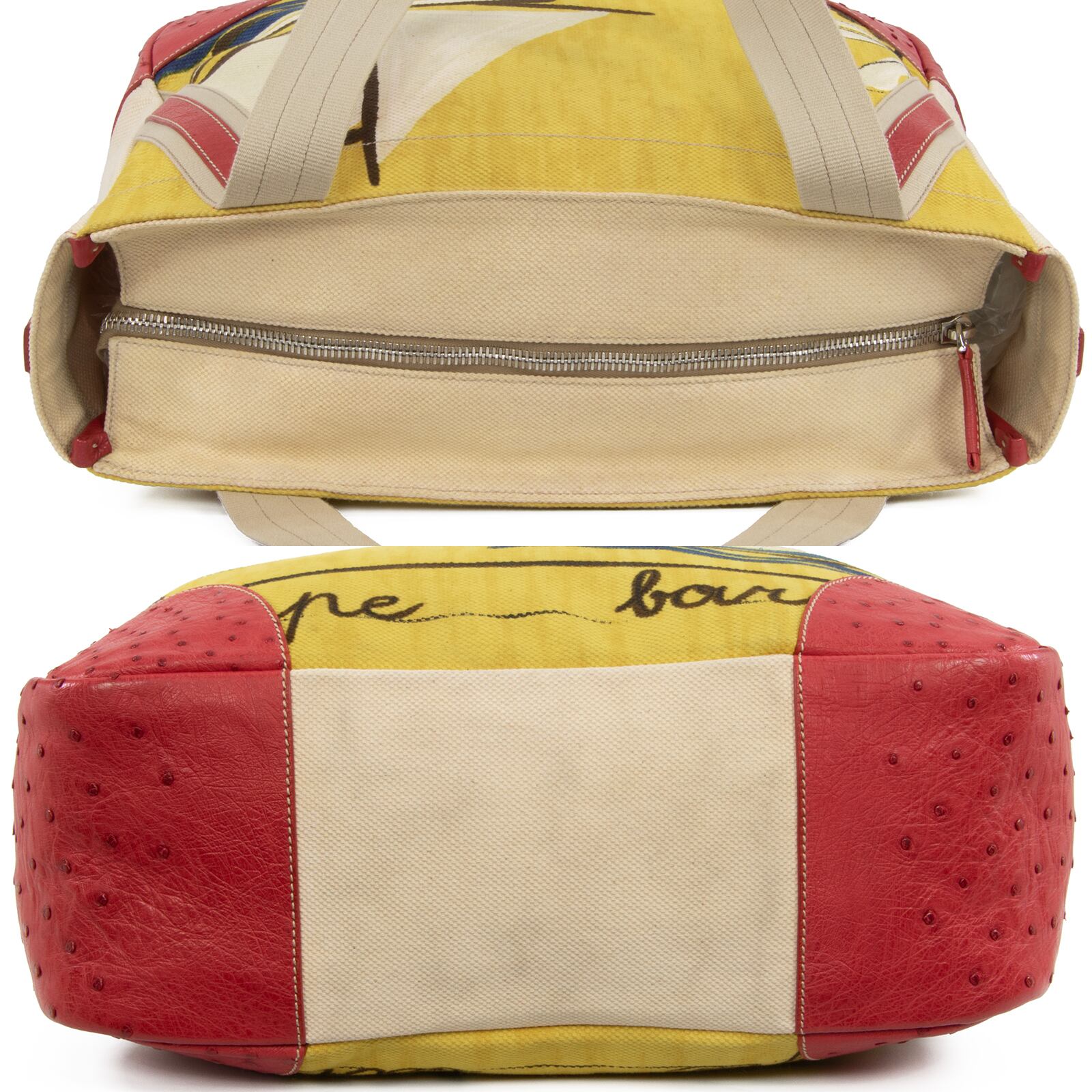 本物 送料無料 プラダ ハンドバッグ ボストンバッグ メンズ レディース オーストリッチ 赤 ベージュ 黄色 青 ヨット 海 夏 ロゴ 綺麗 L157