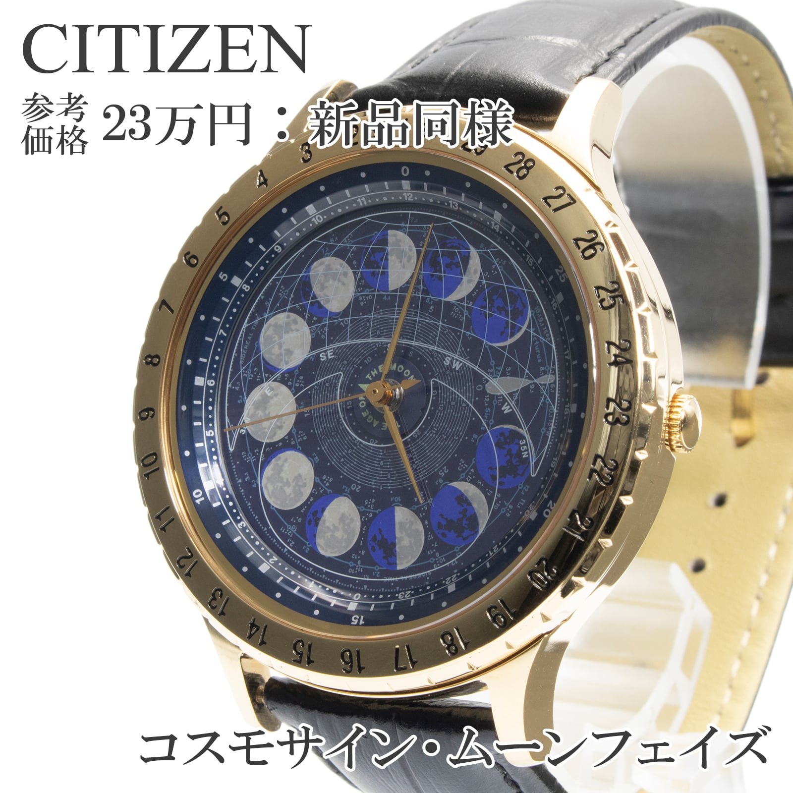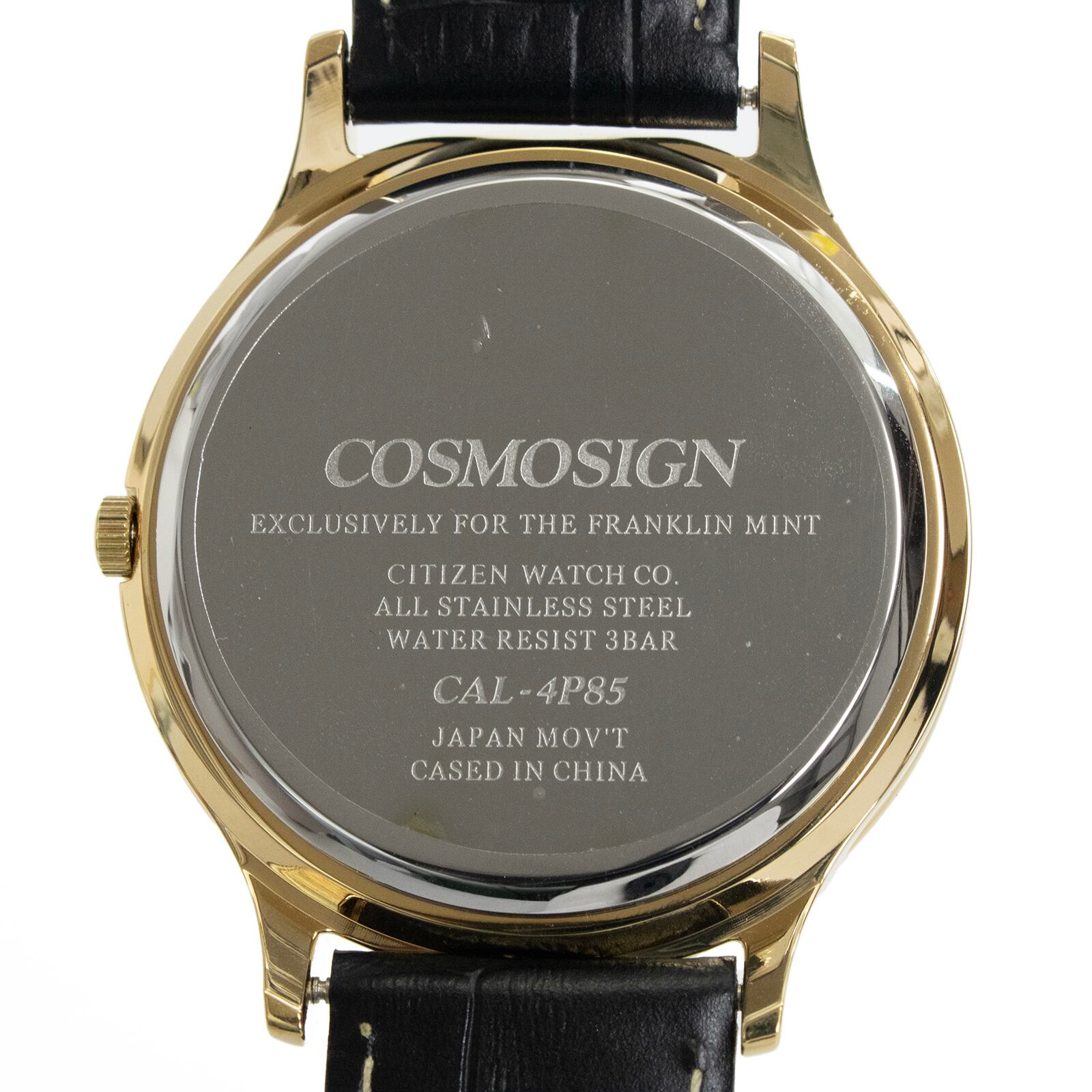 送料無料 シチズン 腕時計 クオーツ メンズ フランクリンミント コスモサイン 月齢表示 青 ゴールド 黒 ムーンフェイズ クォーツ 綺麗 Y022