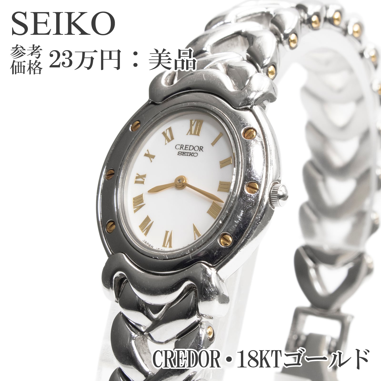 送料無料 セイコー 腕時計 クオーツ レディース クレドール 白 シルバー ドレスウォッチ 18KTゴールド ロゴ ヴィンテージ レア 綺麗 Y029
