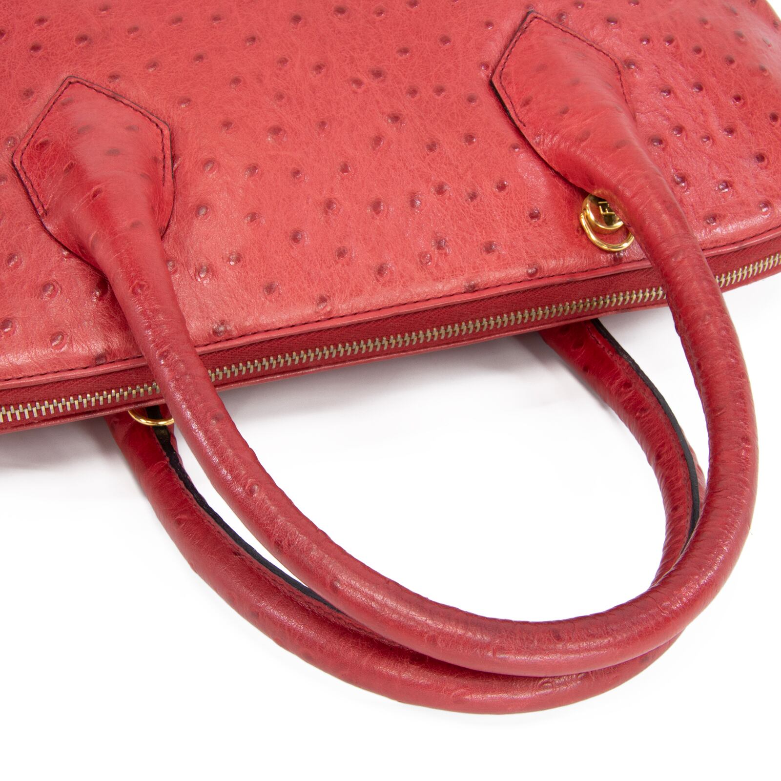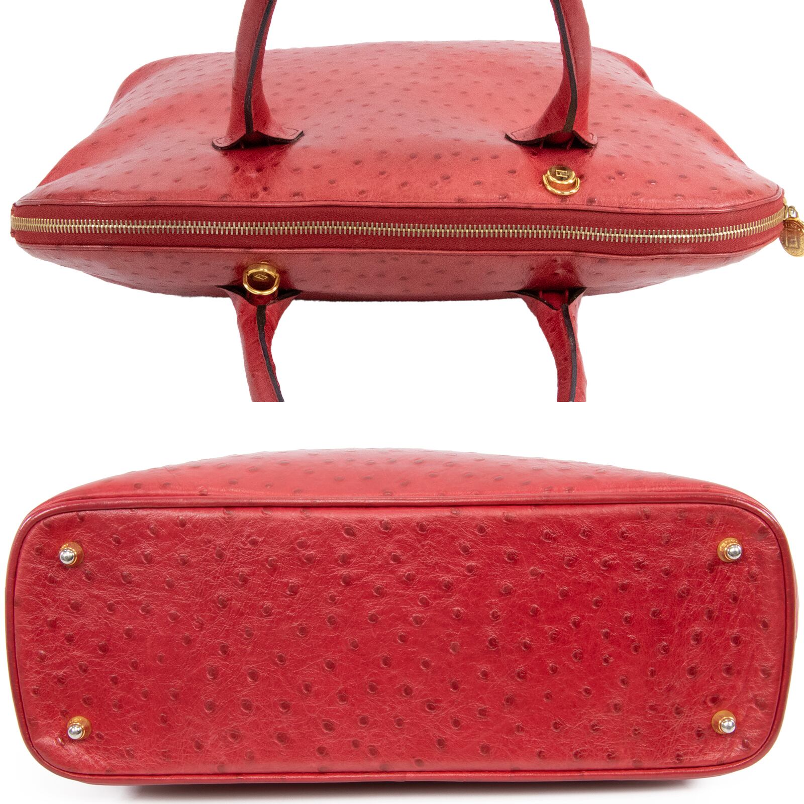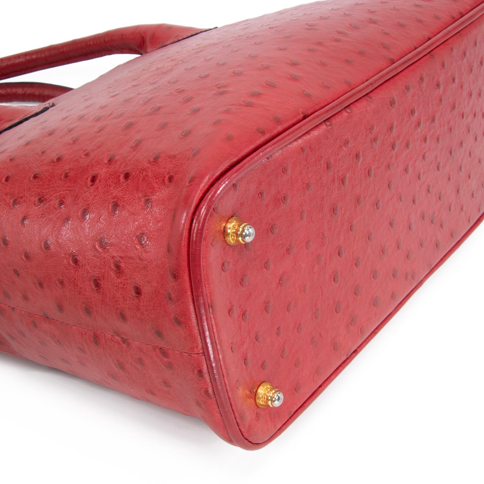 本物 送料無料 フェンディ ハンドバッグ レディース オーストリッチ型押しレザー 赤 レア ロゴ 自立可能 ヴィンテージ 綺麗 鞄 バック E361
