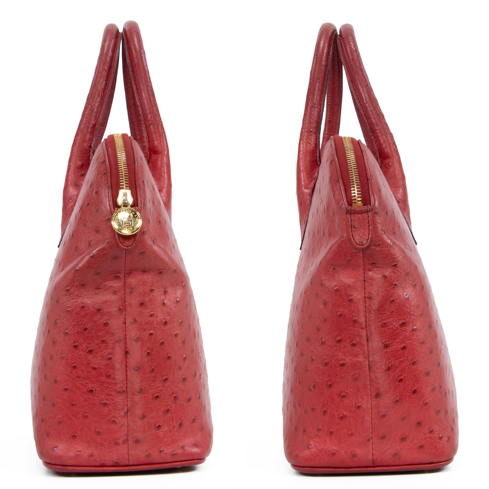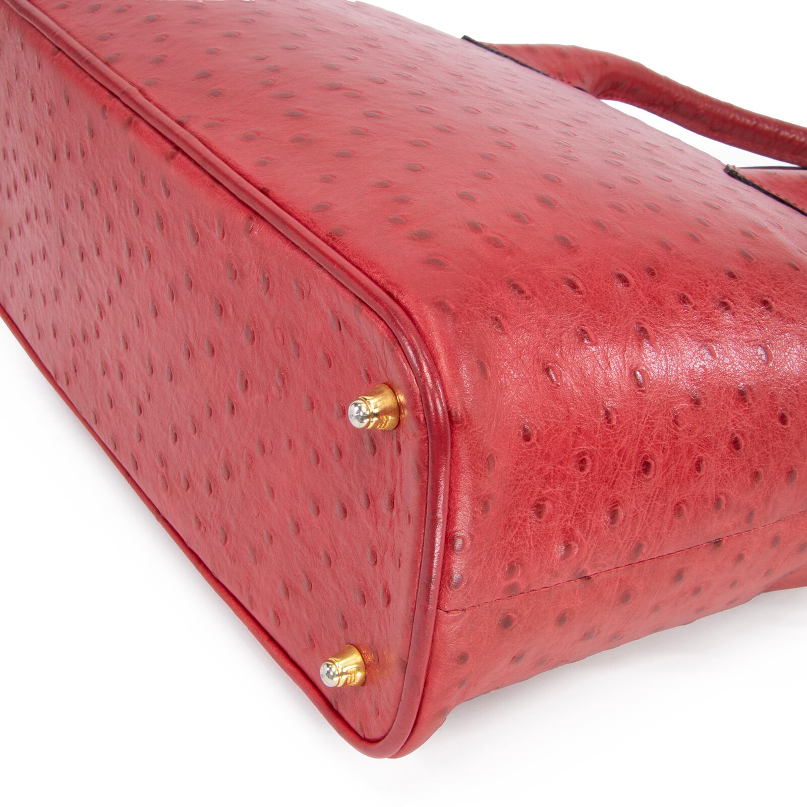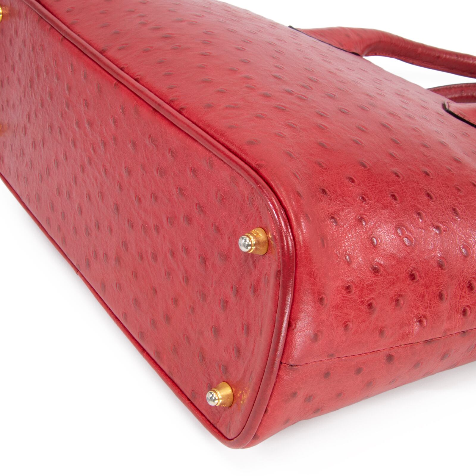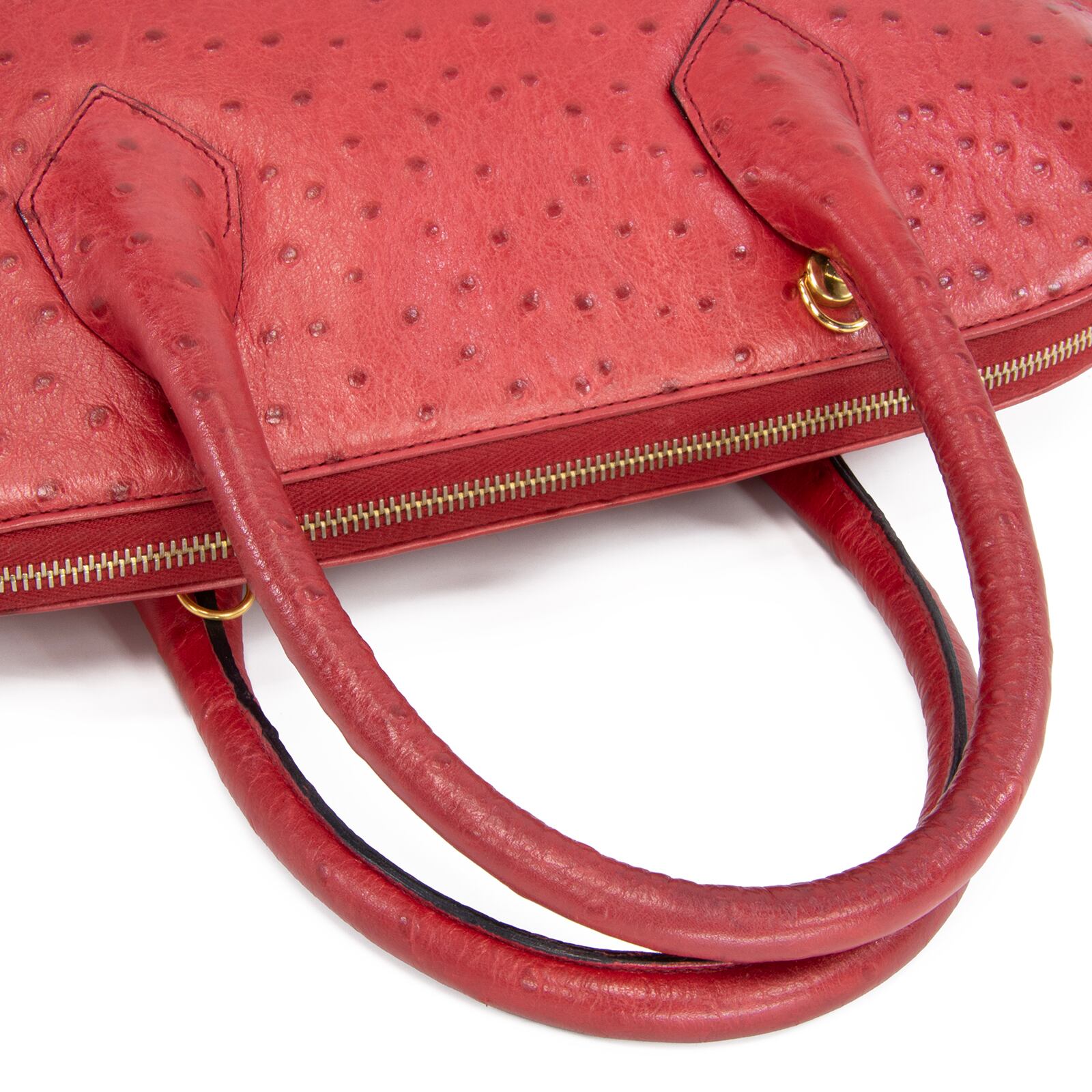 本物 送料無料 フェンディ ハンドバッグ レディース オーストリッチ型押しレザー 赤 レア ロゴ 自立可能 ヴィンテージ 綺麗 鞄 バック E361