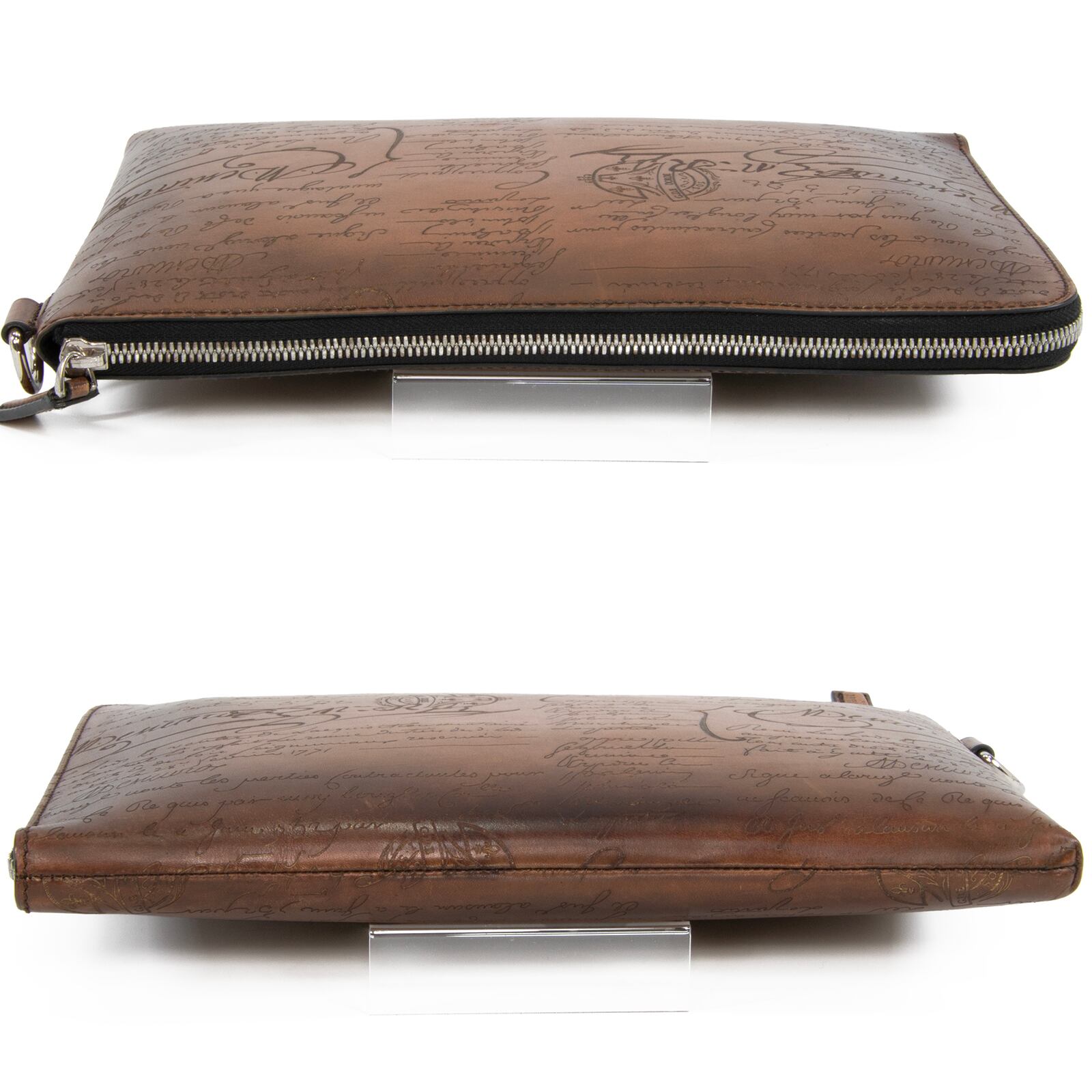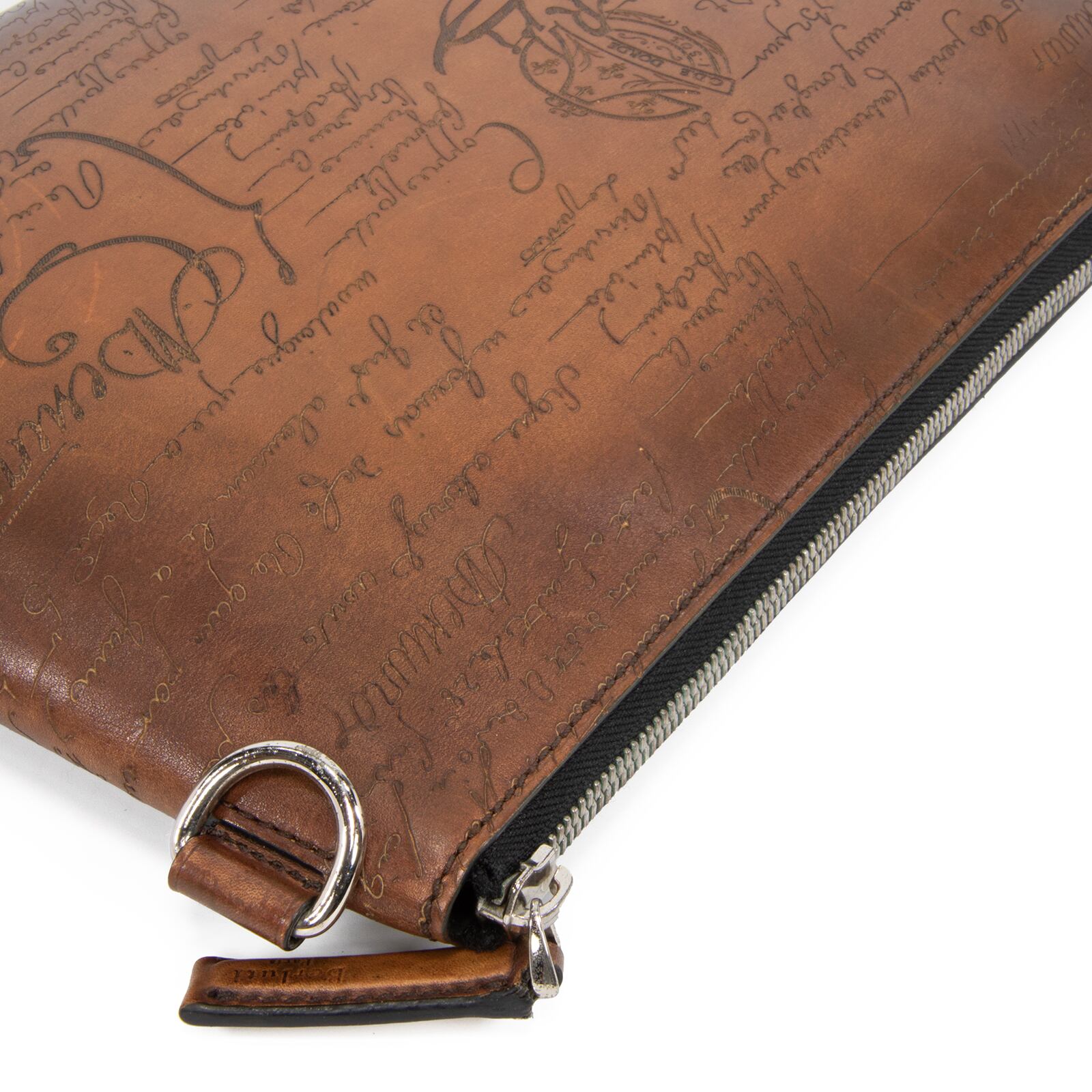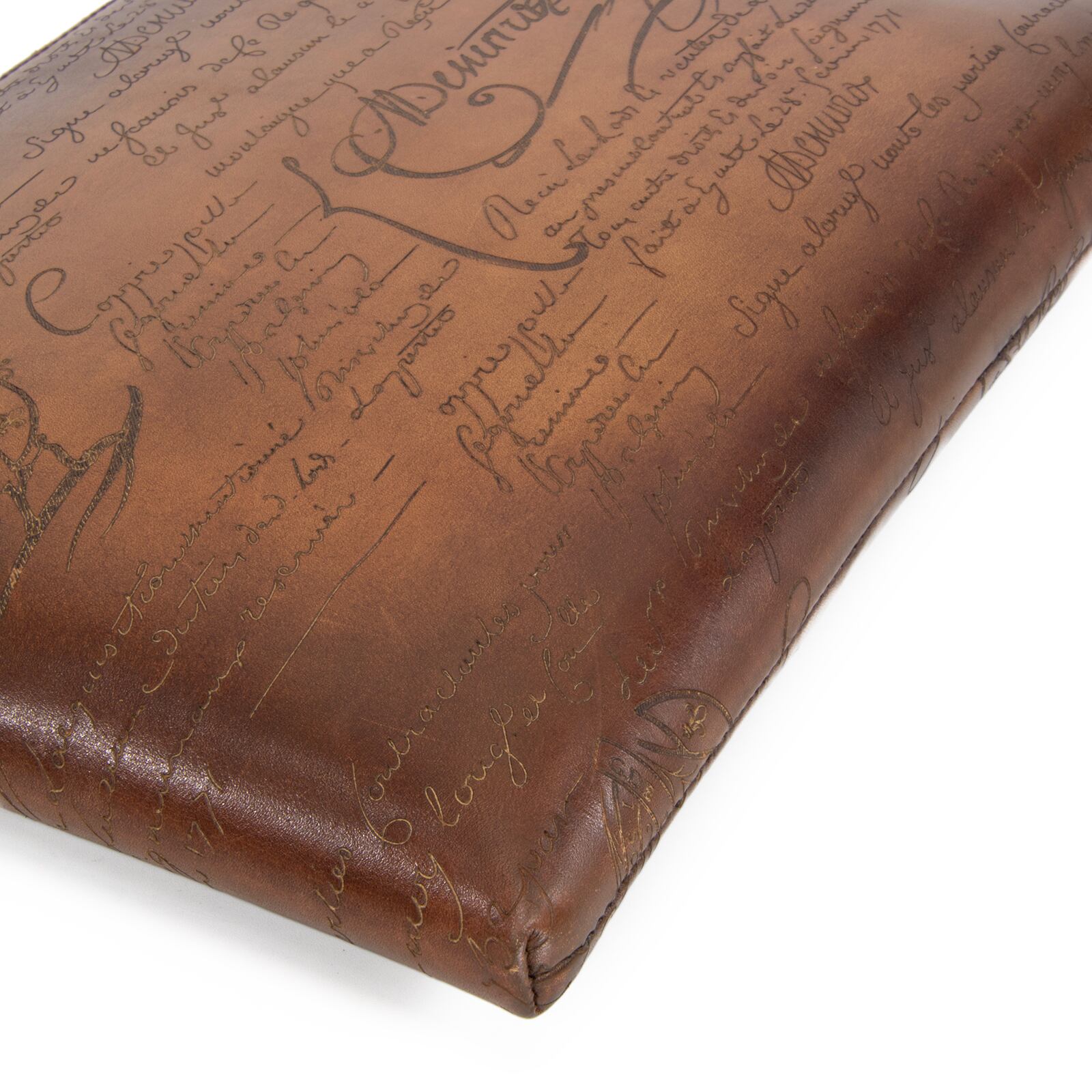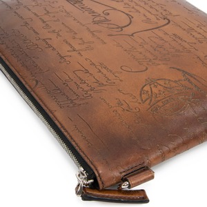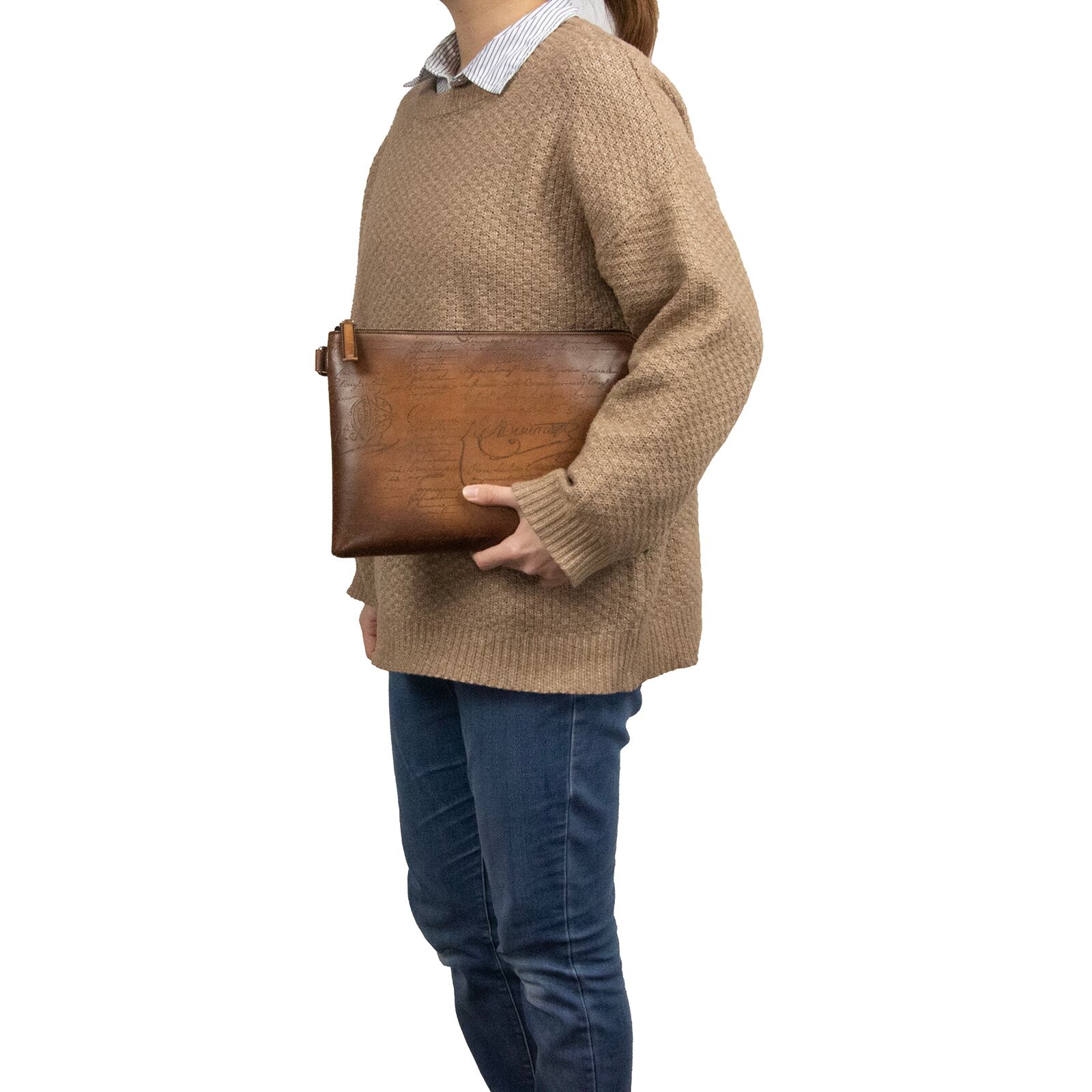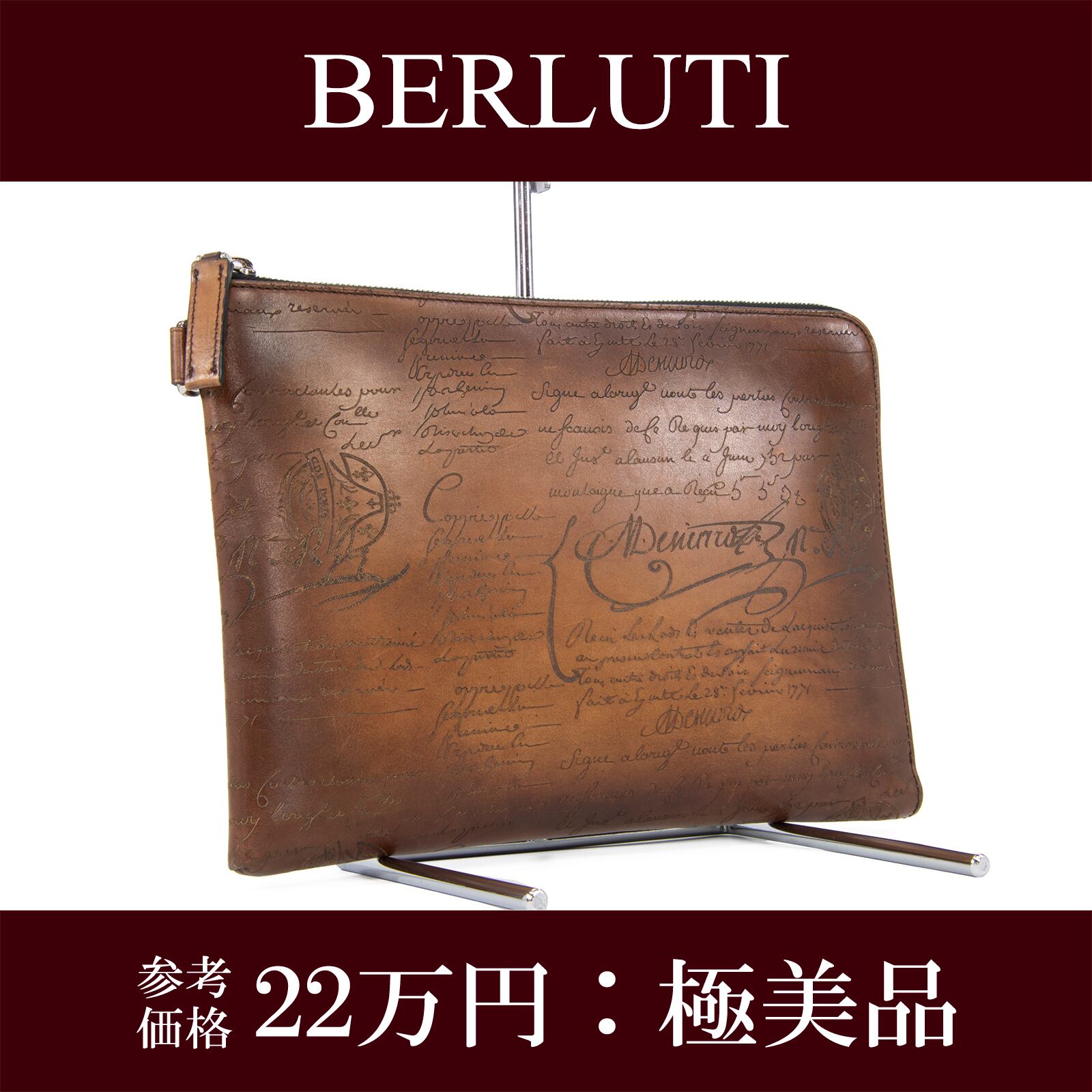 本物 送料無料 ベルルッティ クラッチバッグ セカンドバッグ メンズ ニノGM 茶色 パティーヌ カリグラフィ 文字 ロゴ マーク バック I207