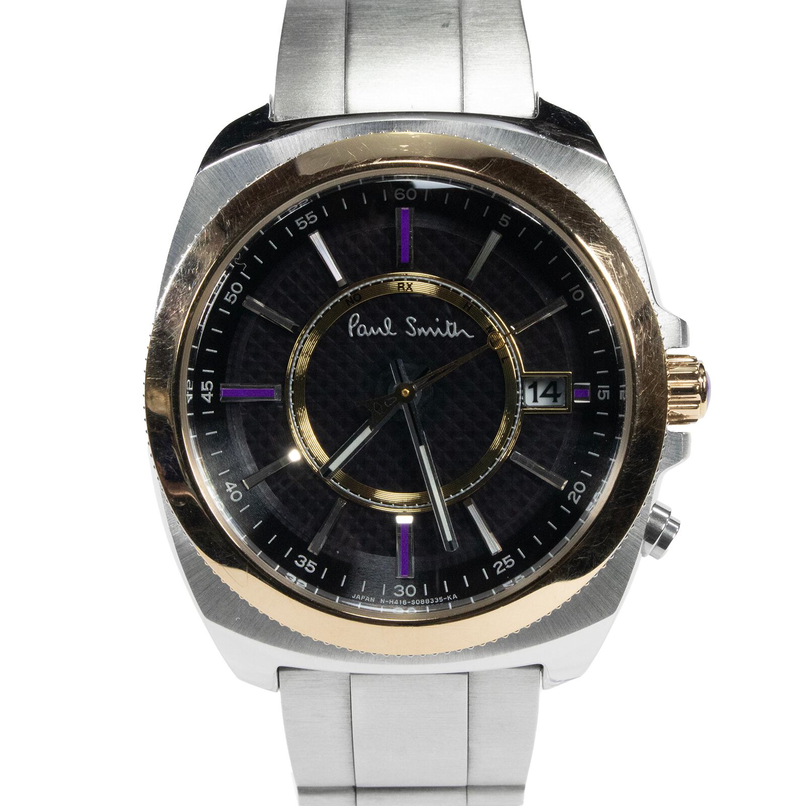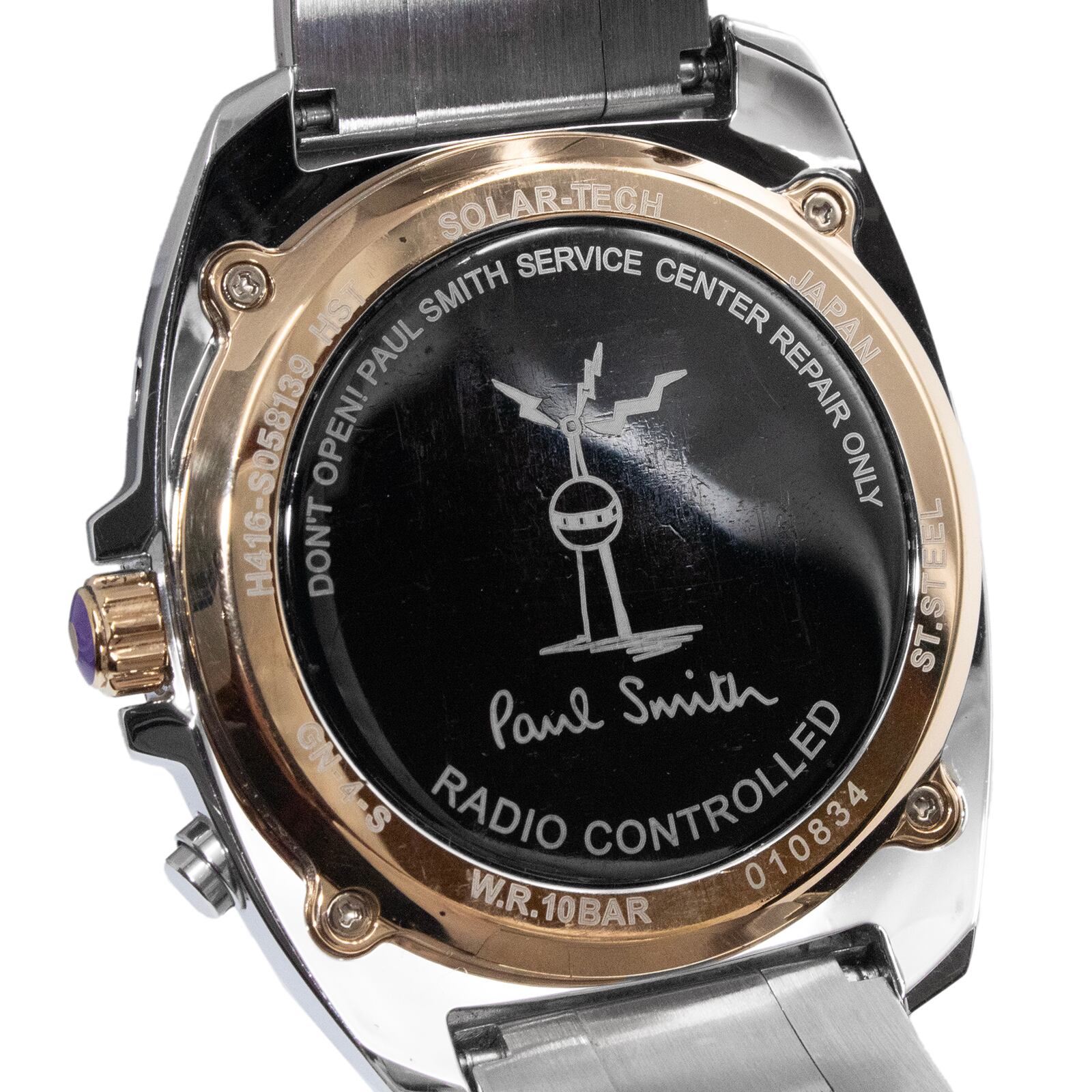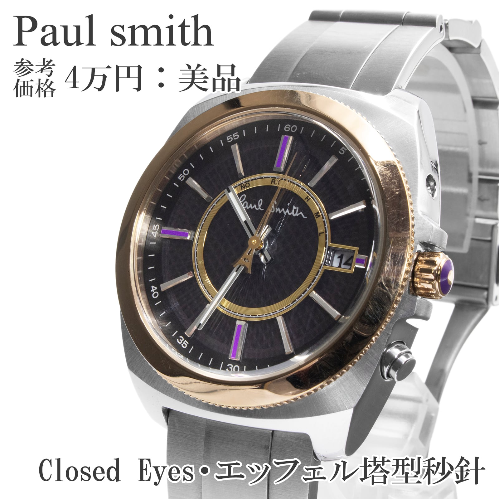 送料無料 ポールスミス 腕時計 メンズ ボーイズ ソーラー Closed Eyes パープル ゴールド エッフェル塔秒針 ロゴ マーク レア 綺麗 Q040