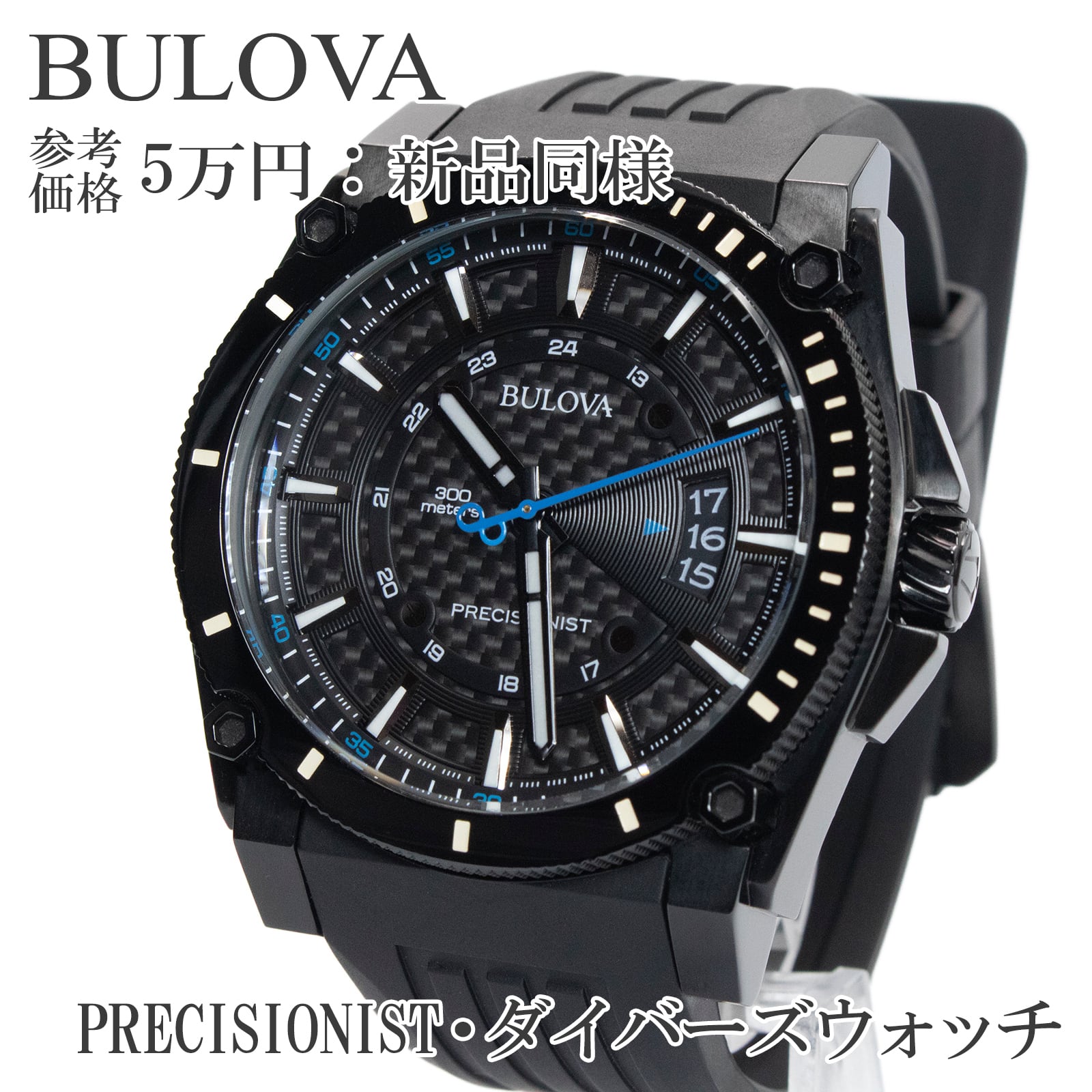 送料無料 ブローバ 腕時計 新品同様 メンズ ダイバーズ クオーツ PRECISIONIST プレシジョニスト 98B142 ブラック 黒 ロゴ レア 綺麗 Q041