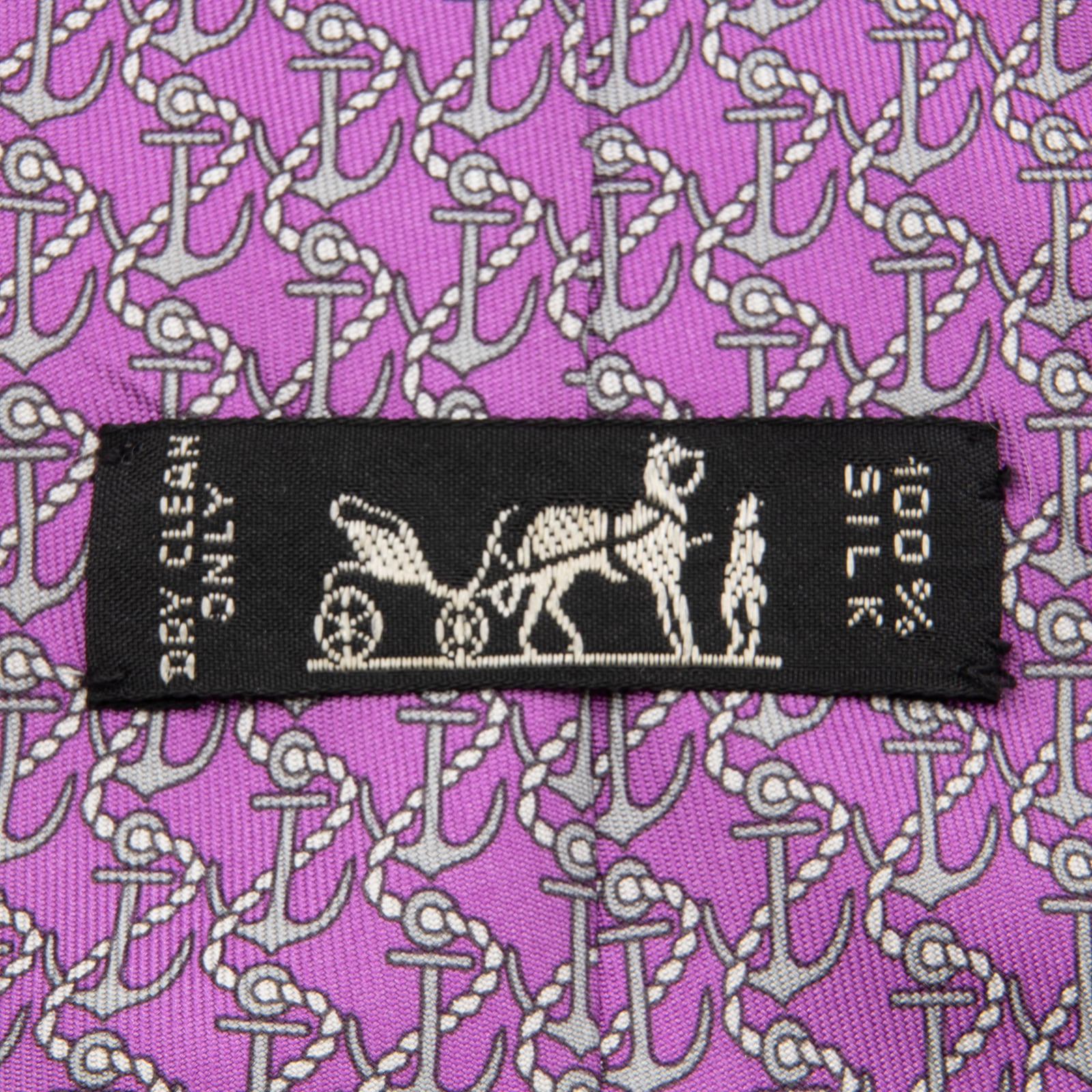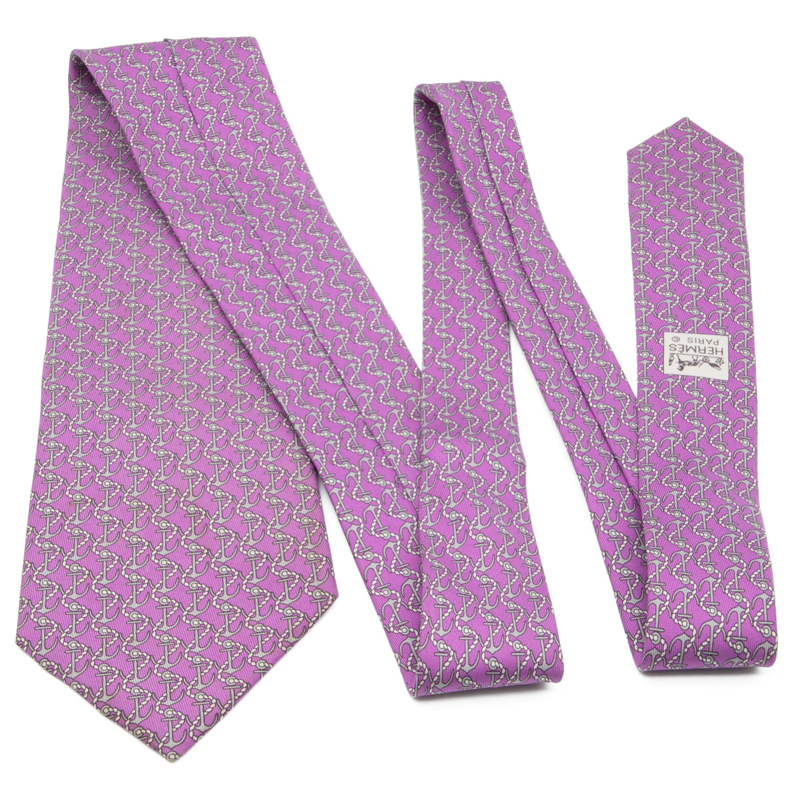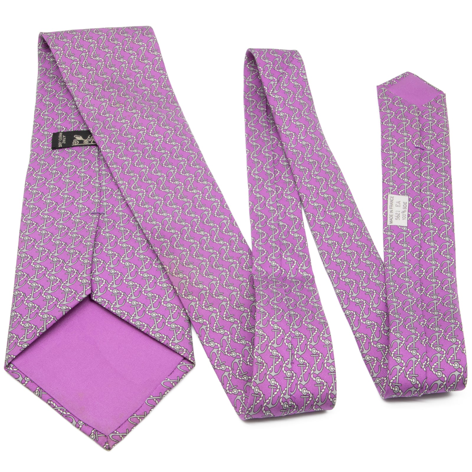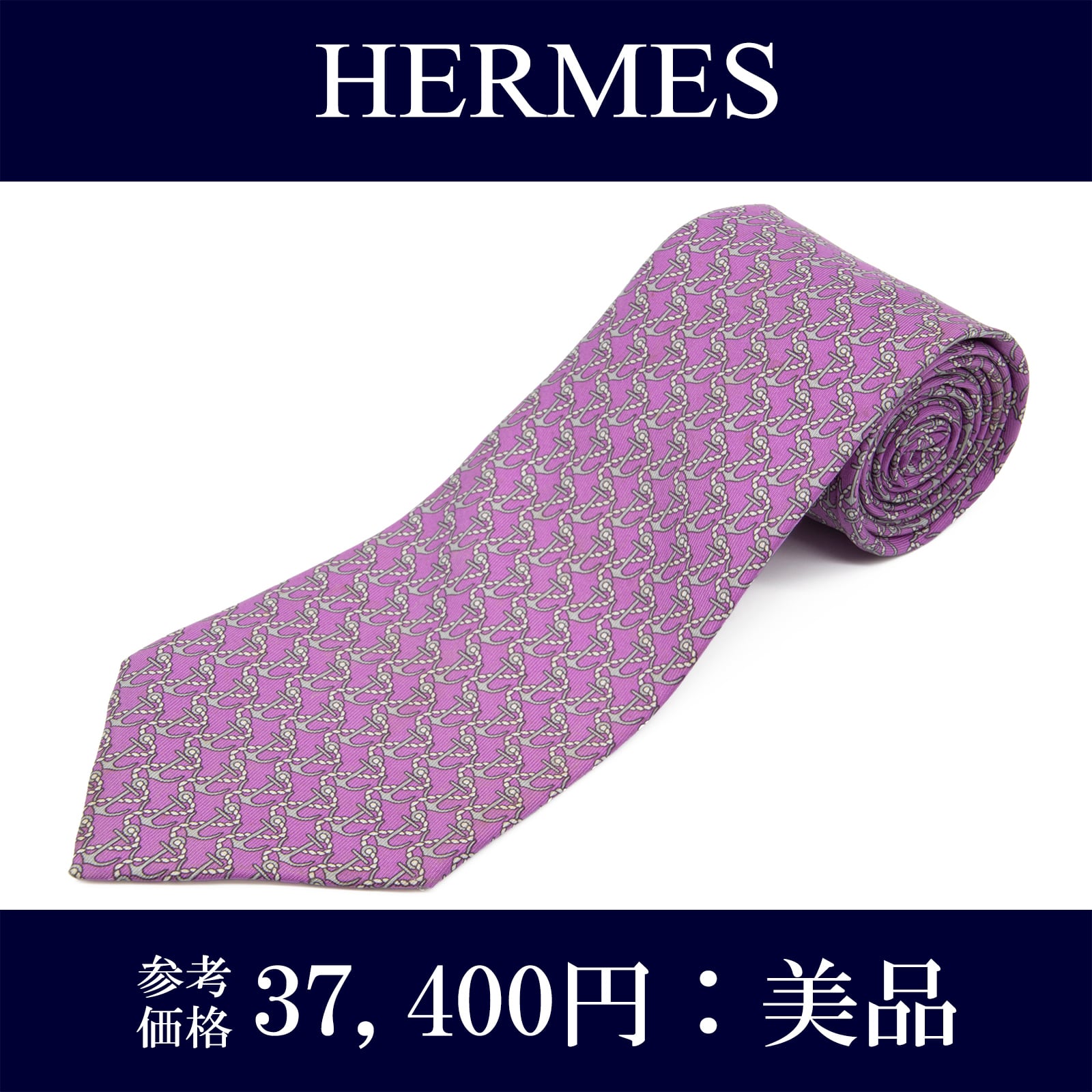 送料無料 エルメス ネクタイ ワイドタイ シルク 紫 パープル 灰色 グレー ビジネス カジュアル ブランド マーク レア フランス製 綺麗 N609