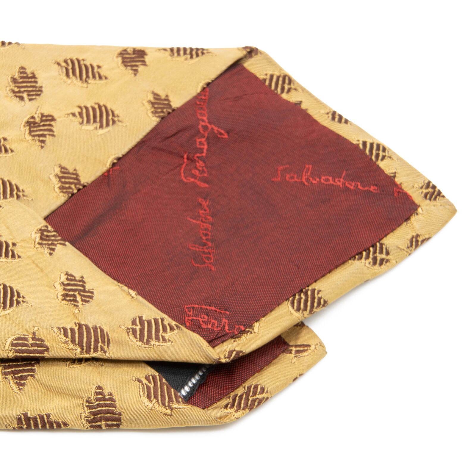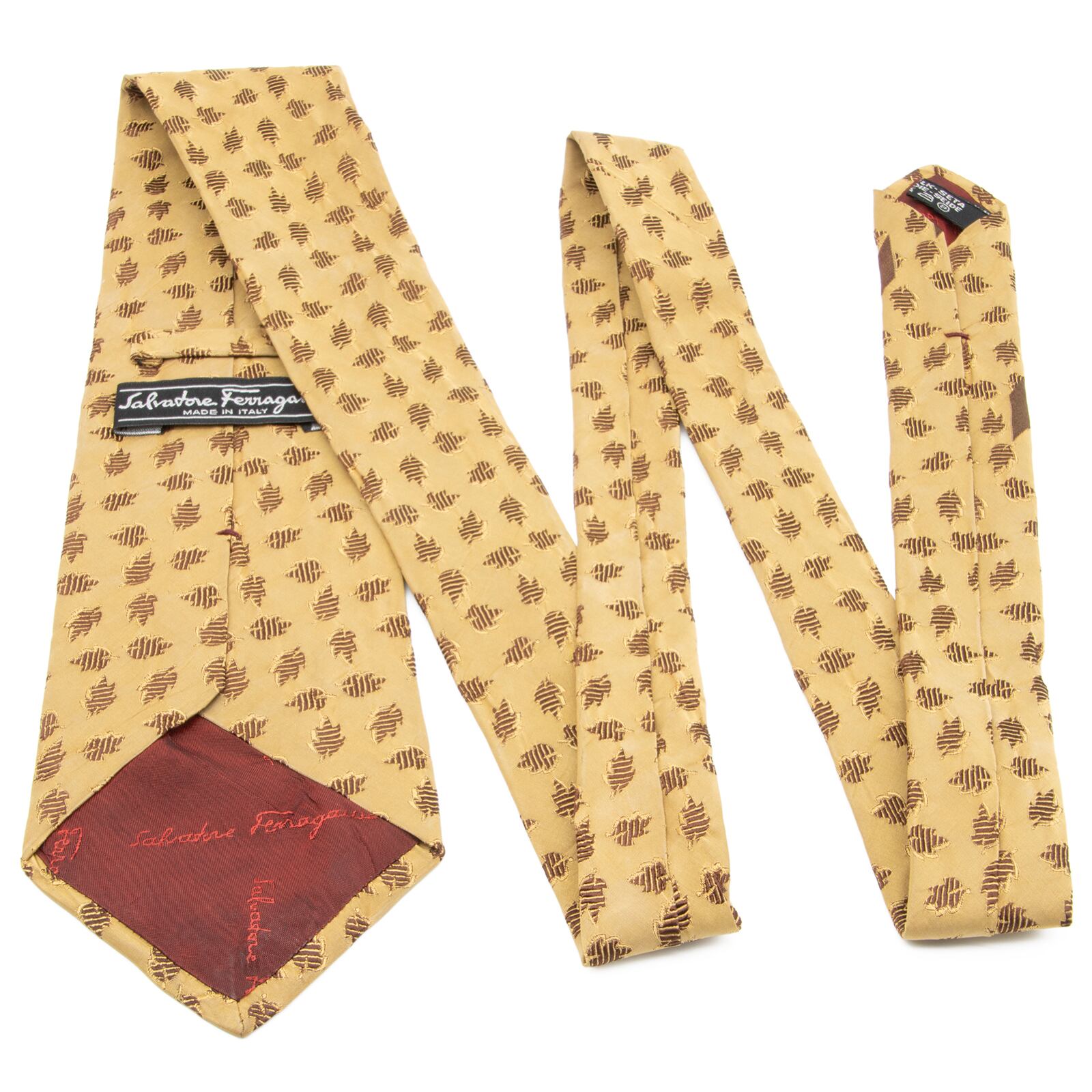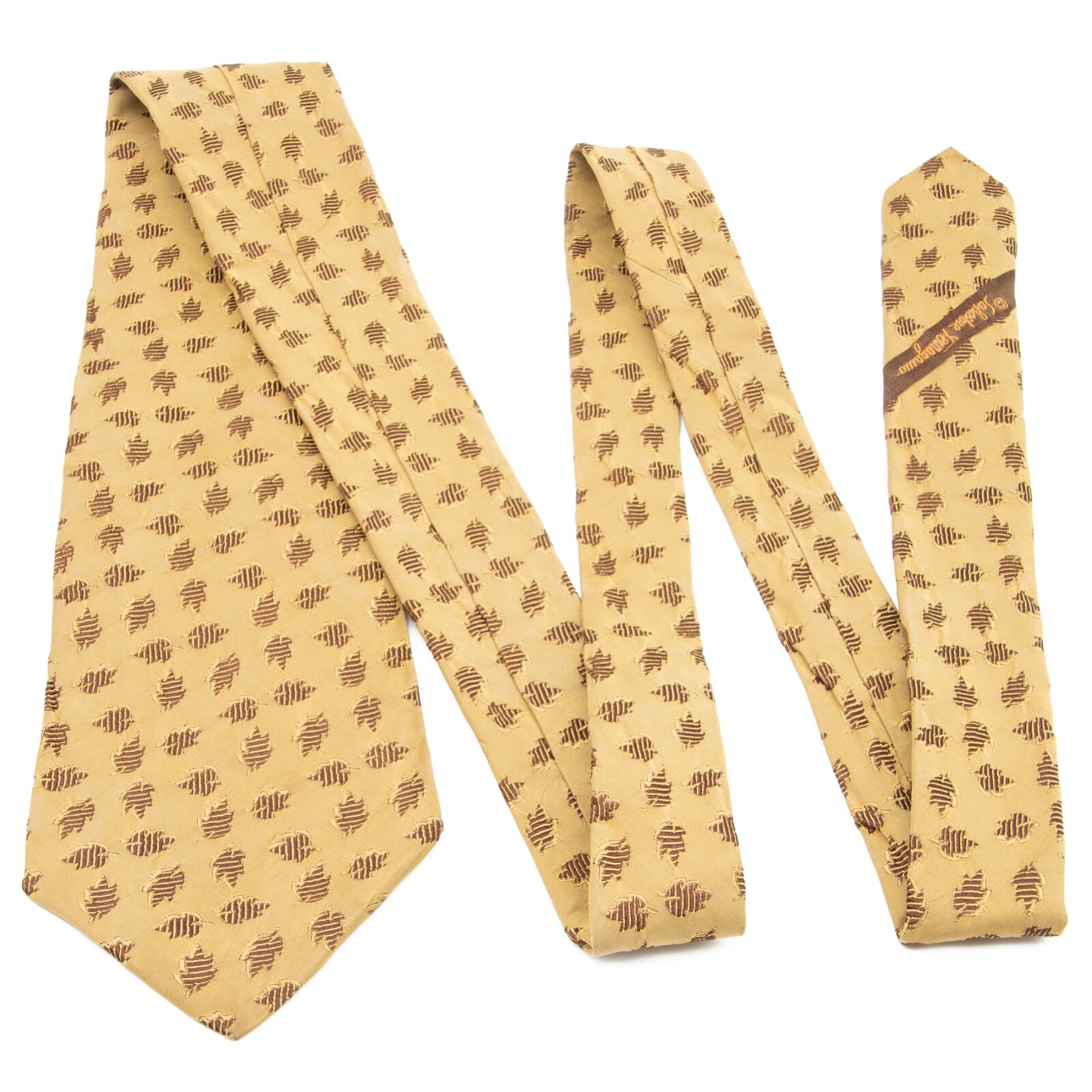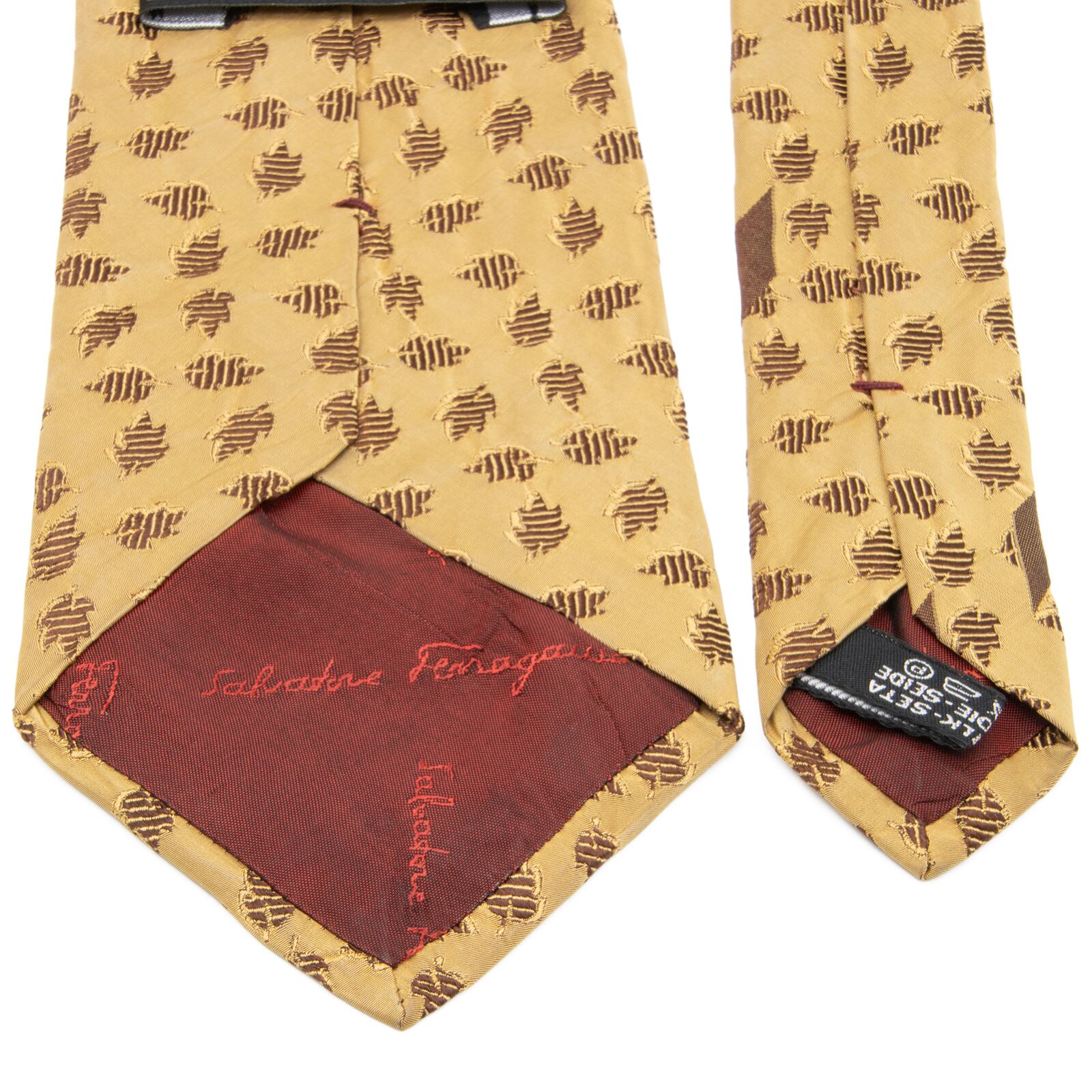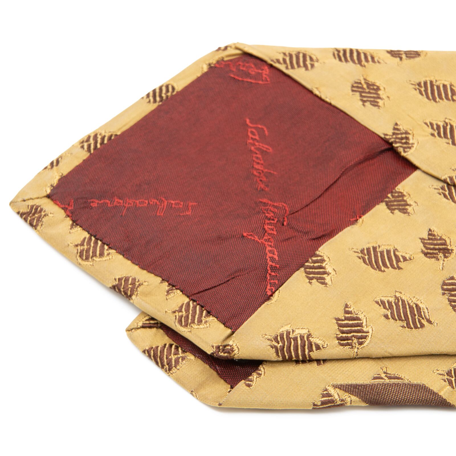 送料無料 フェラガモ ネクタイ ジャガードタイ シルク 茶色 ブラウン ビジネス カジュアル ブランド 葉 マーク レア イタリア製 綺麗 N622