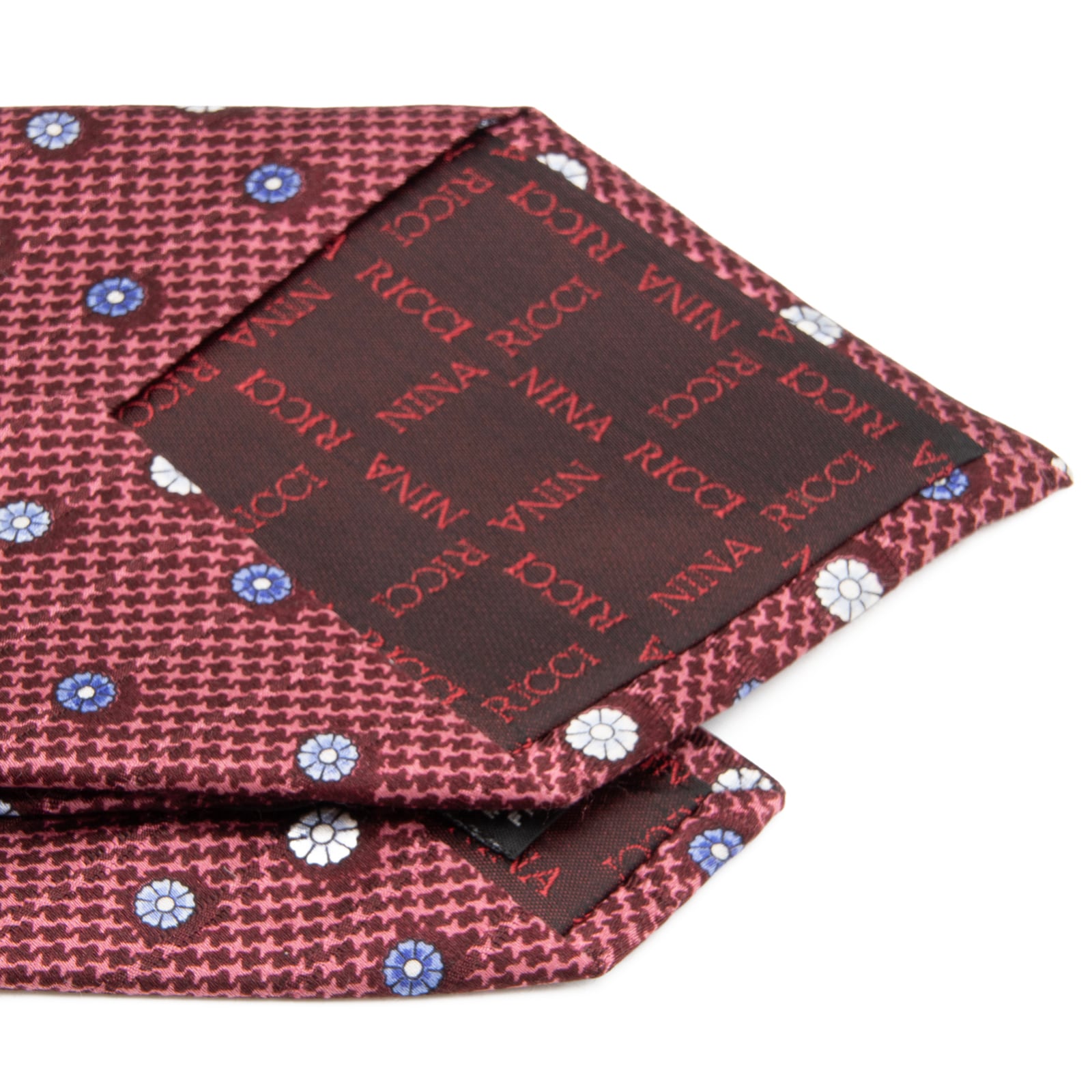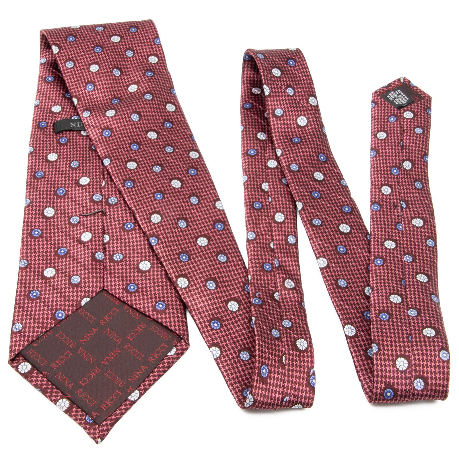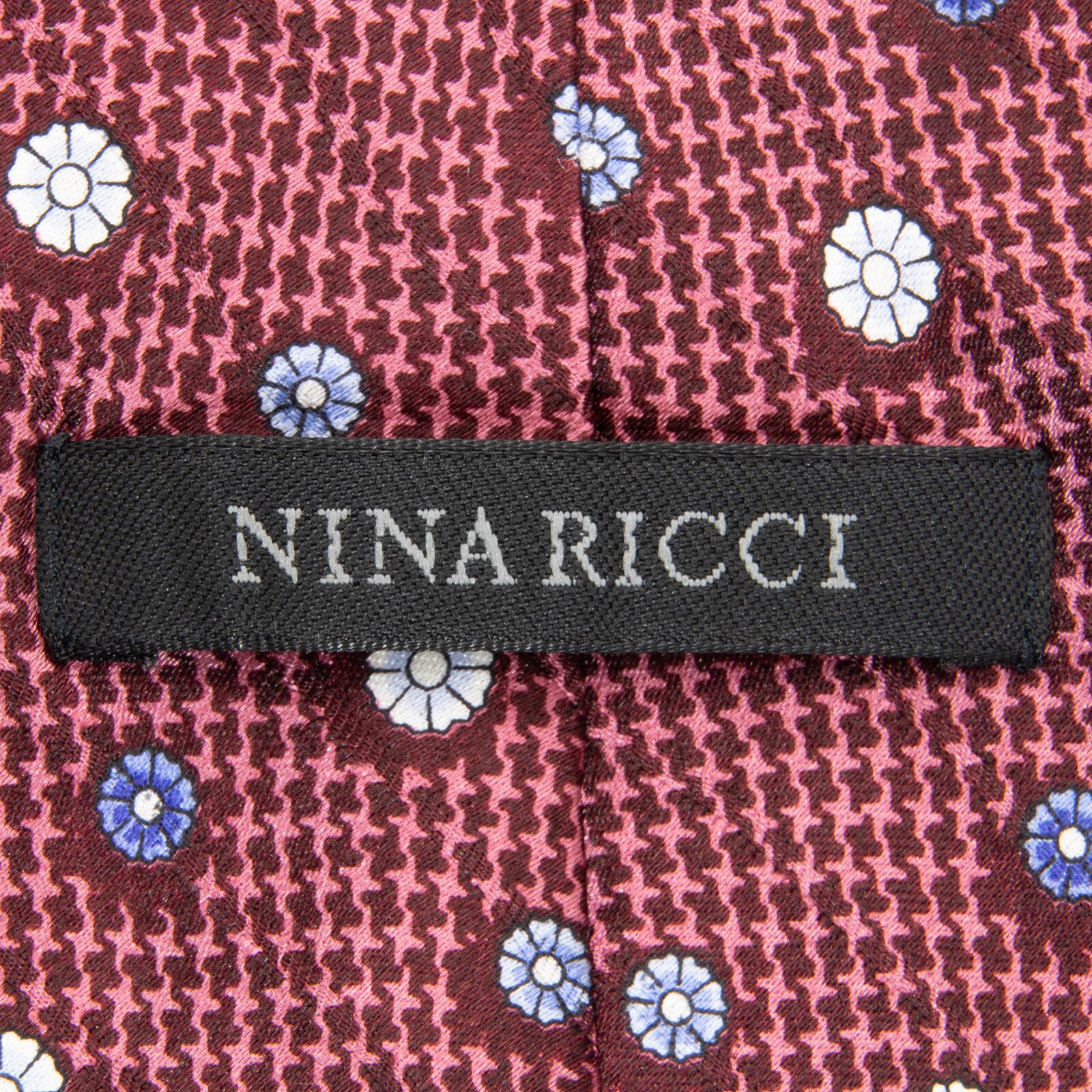 送料無料 ニナリッチ ネクタイ 新品同様 ワイドタイ シルク ガーネット 青 ブルー 白 ホワイト ブランド 花 マーク レア フランス製 N625