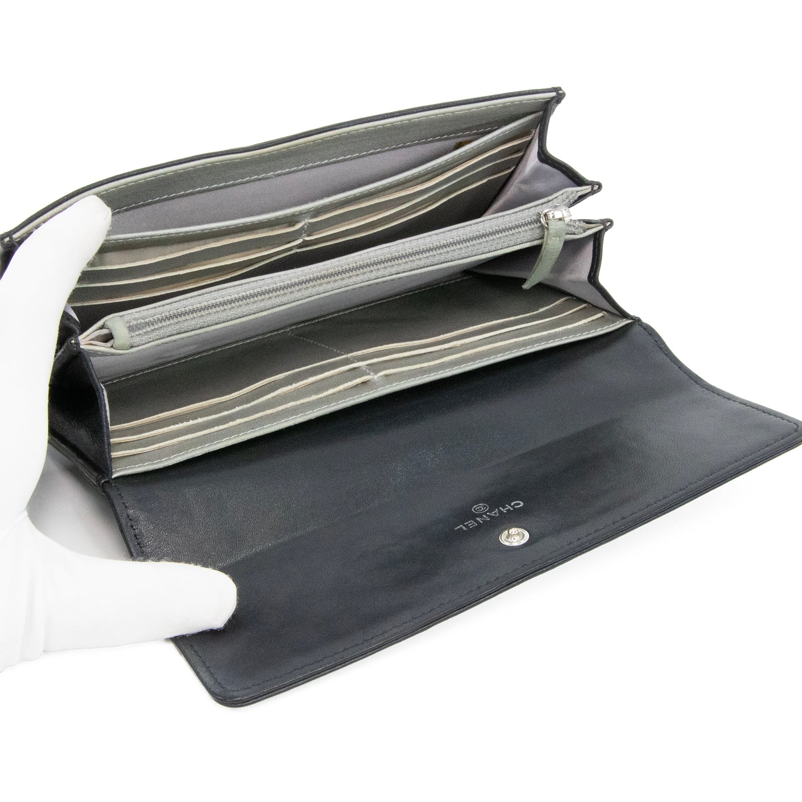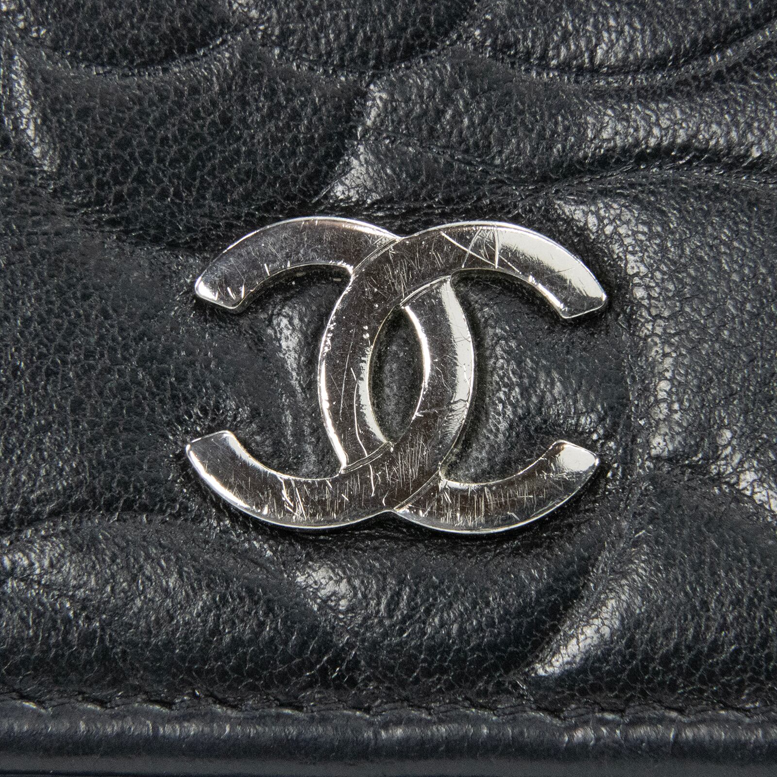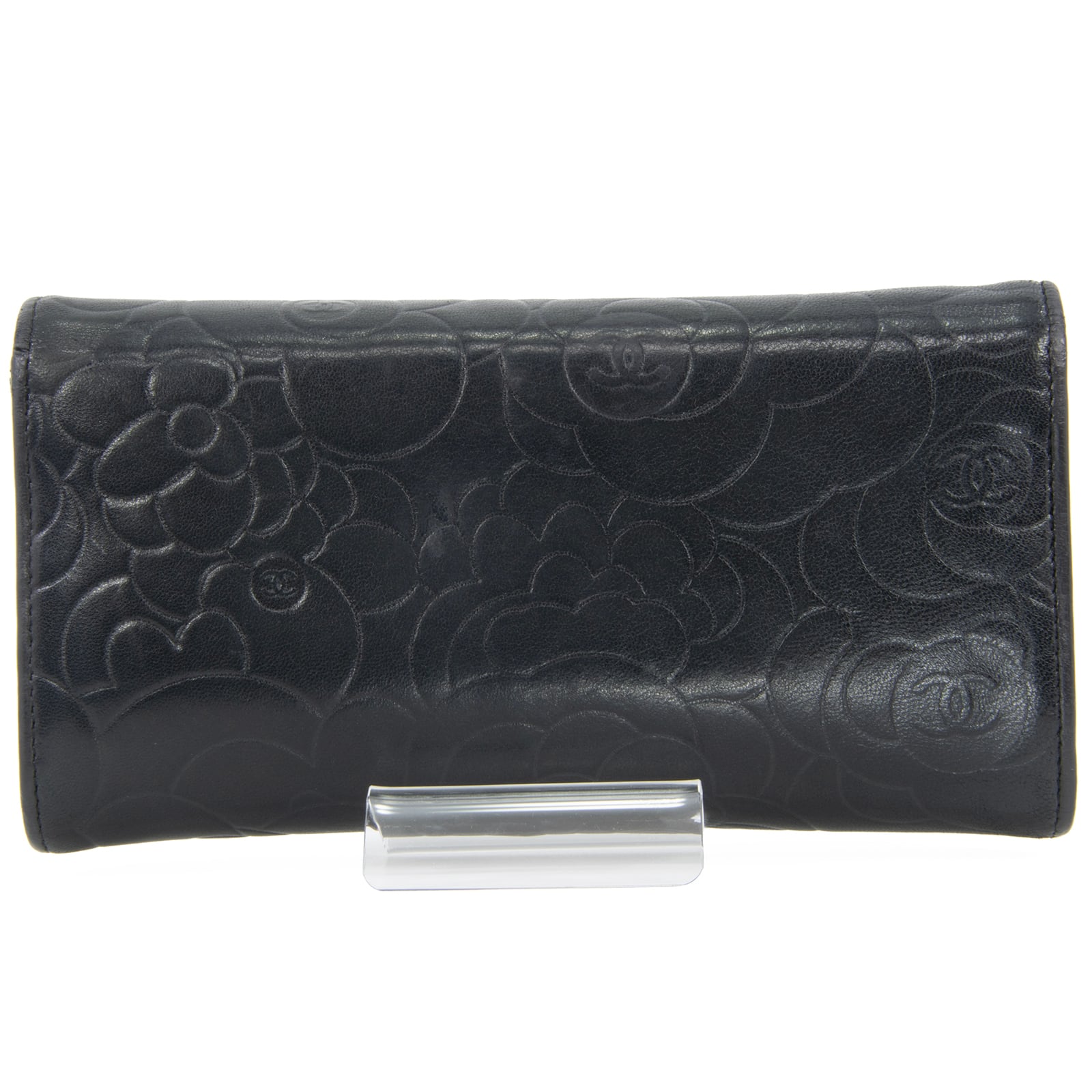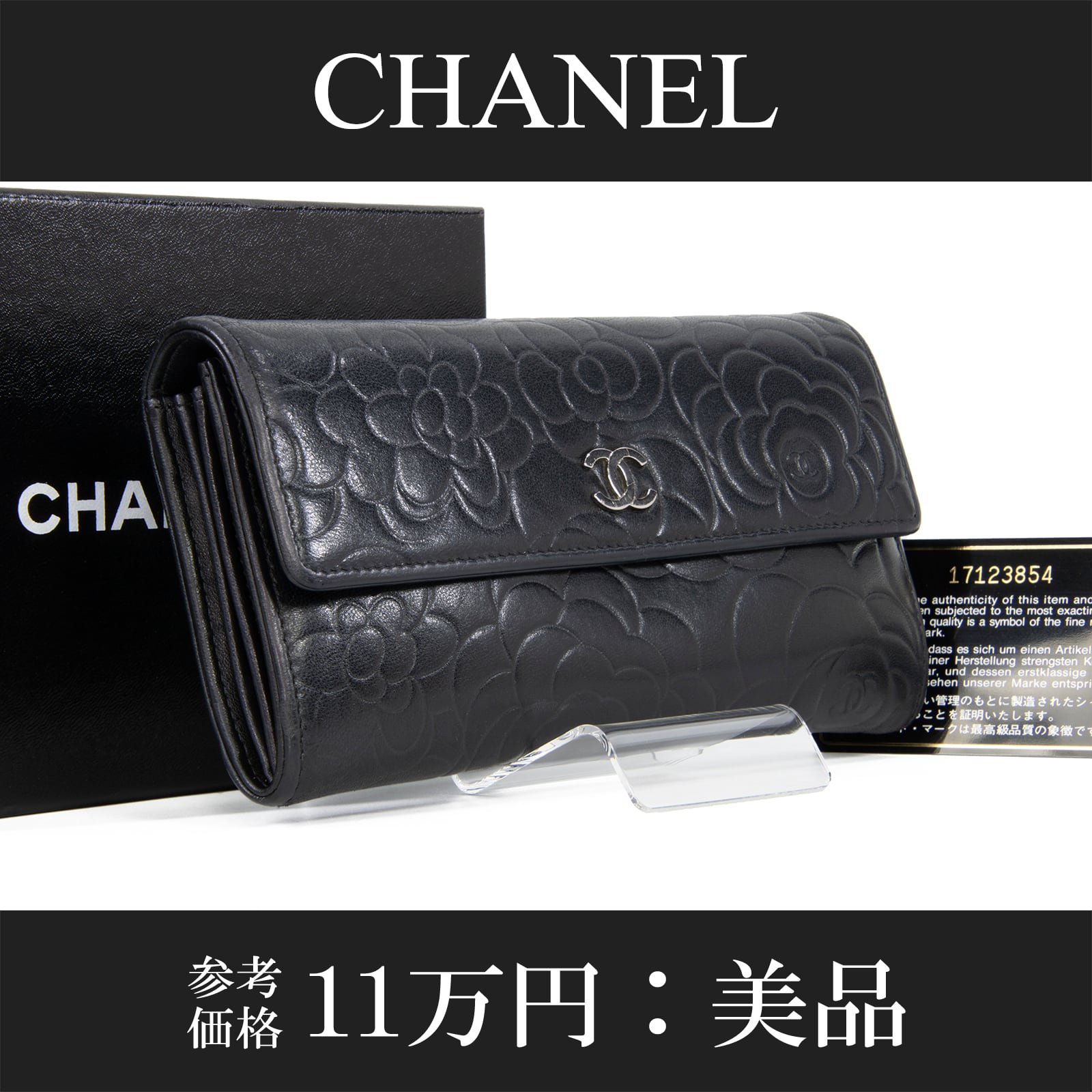本物 送料無料 シャネル 長財布 二つ折り財布 レディース カメリア 黒 ブラック 人気 ココマーク CCロゴ 花 フラワー シルバー 綺麗 T038