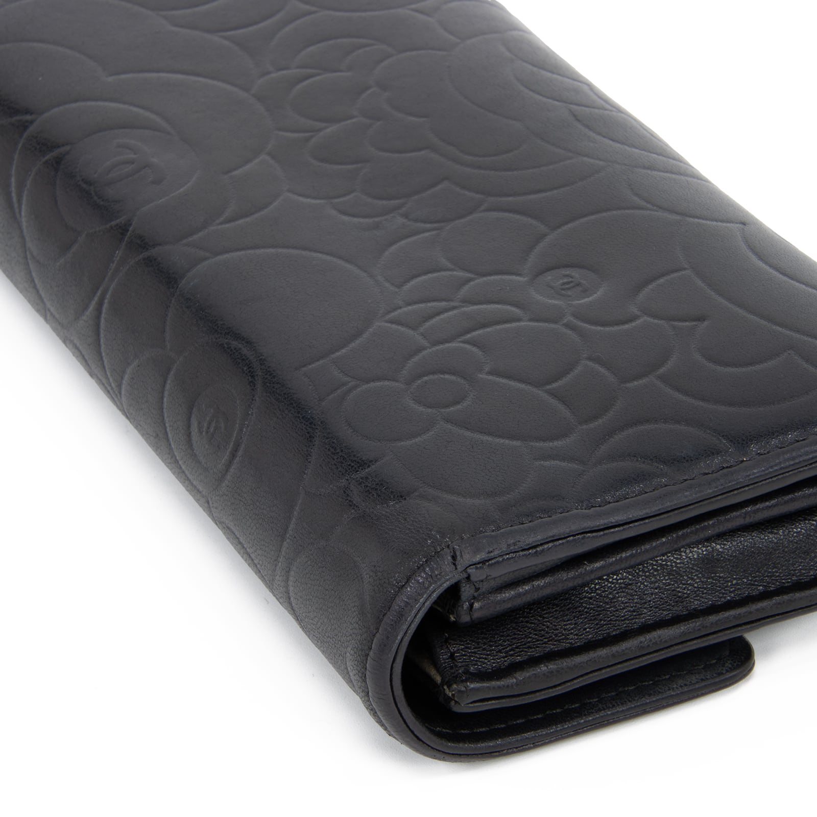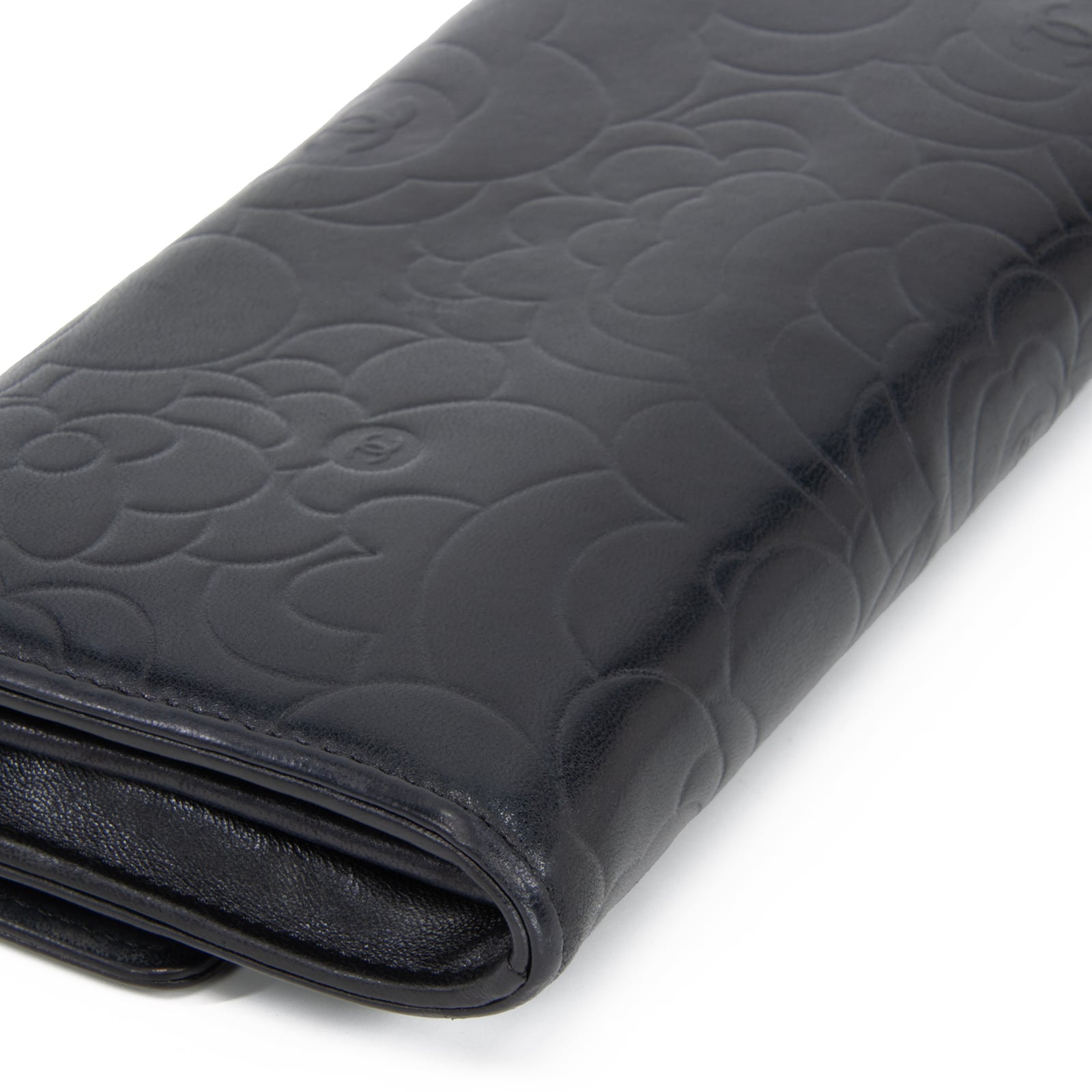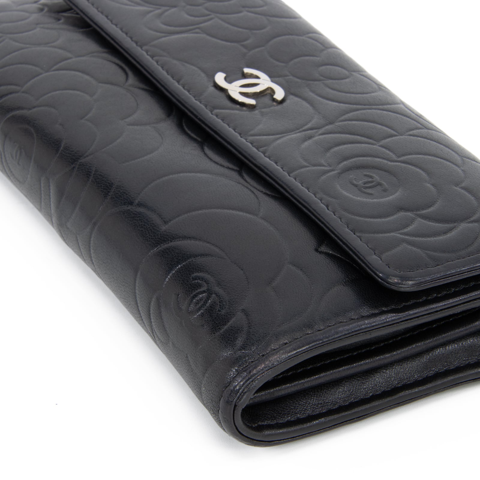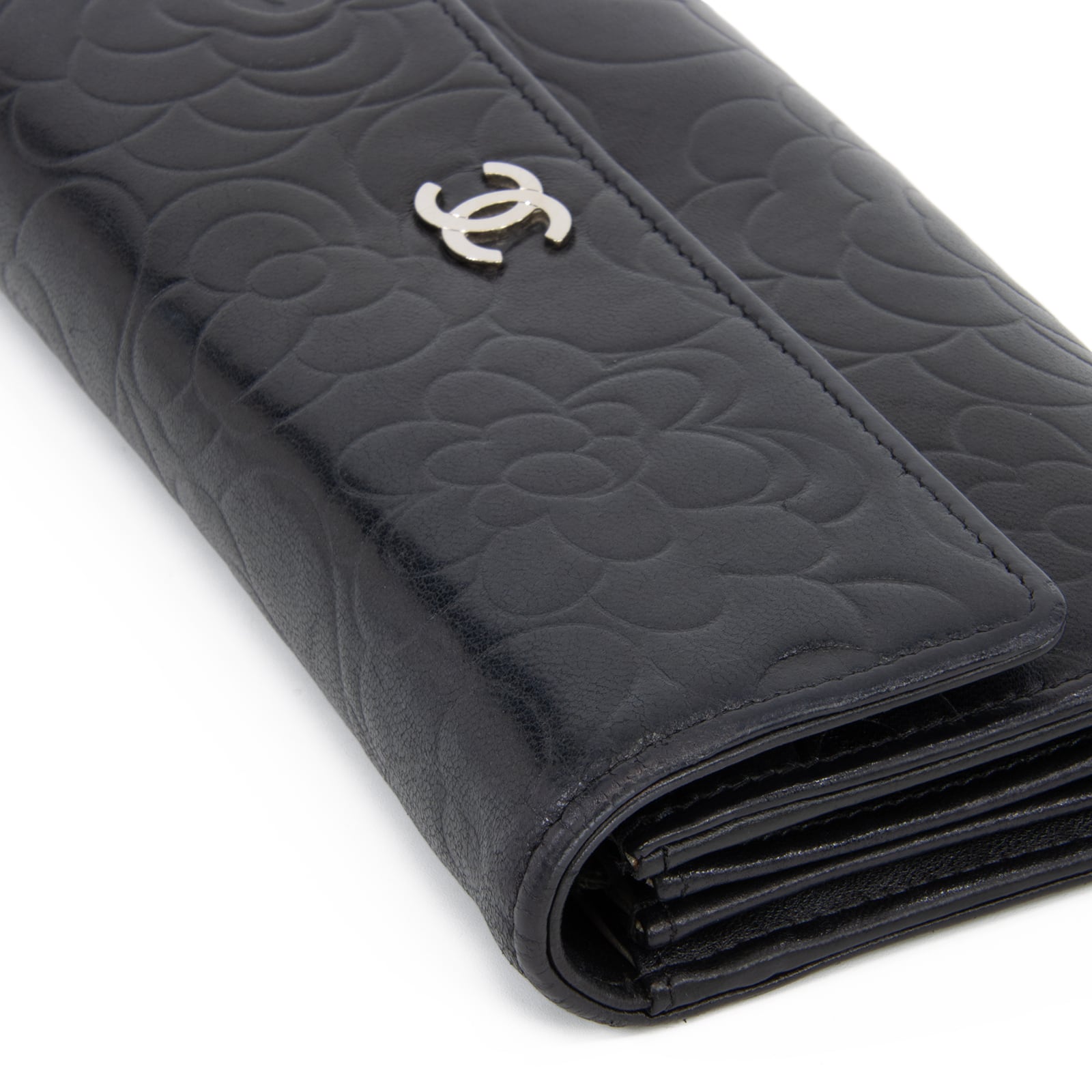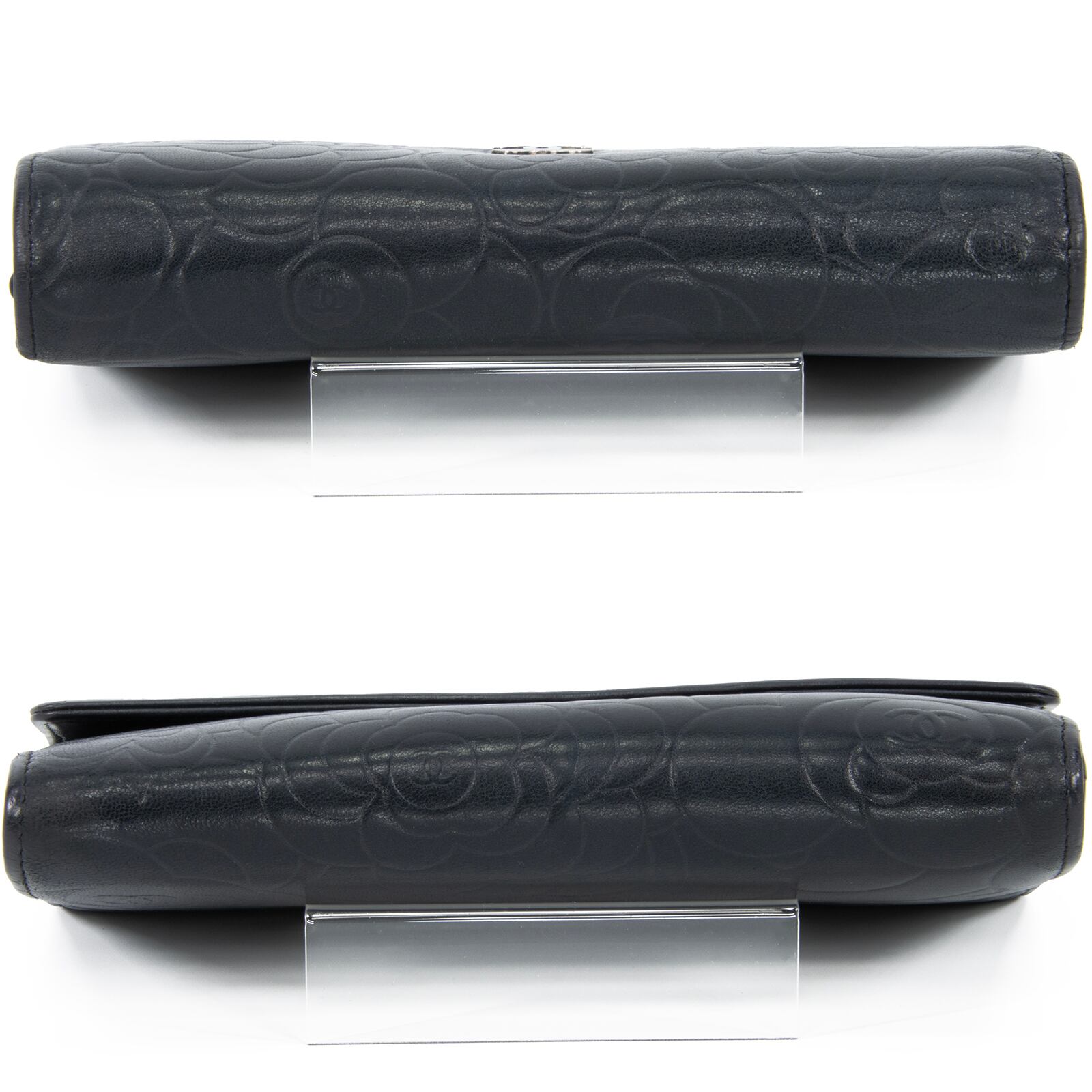 本物 送料無料 シャネル 長財布 二つ折り財布 レディース カメリア 黒 ブラック 人気 ココマーク CCロゴ 花 フラワー シルバー 綺麗 T038
