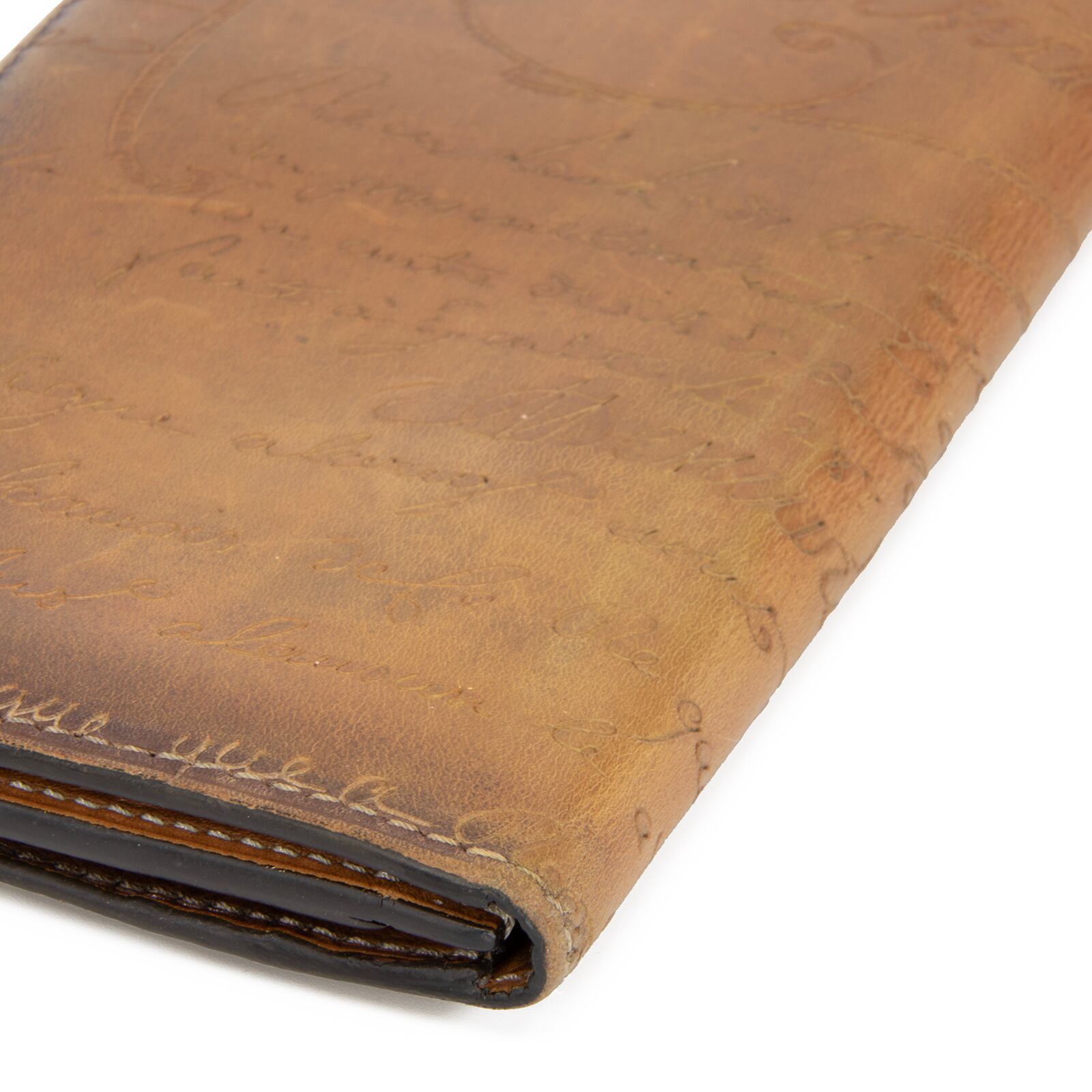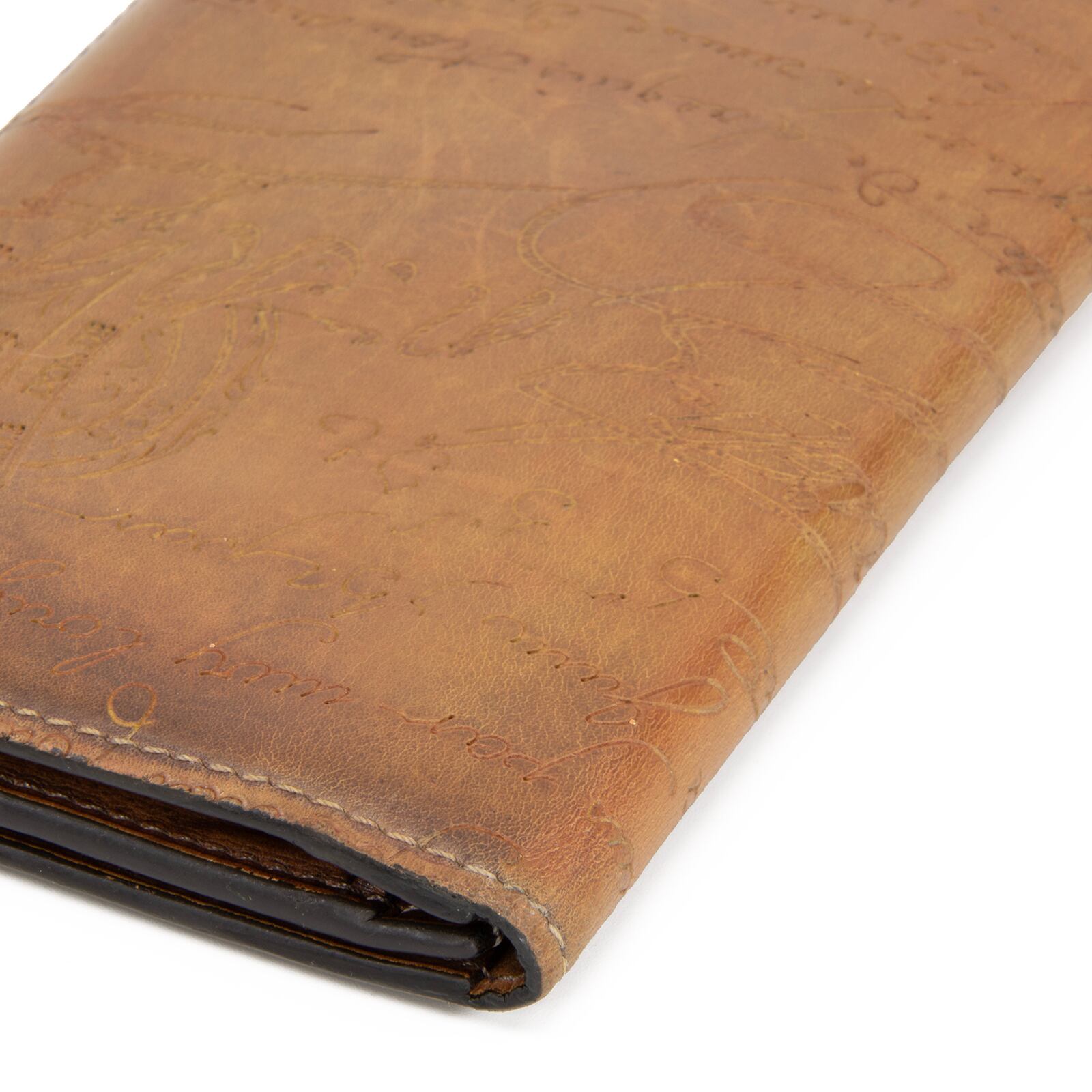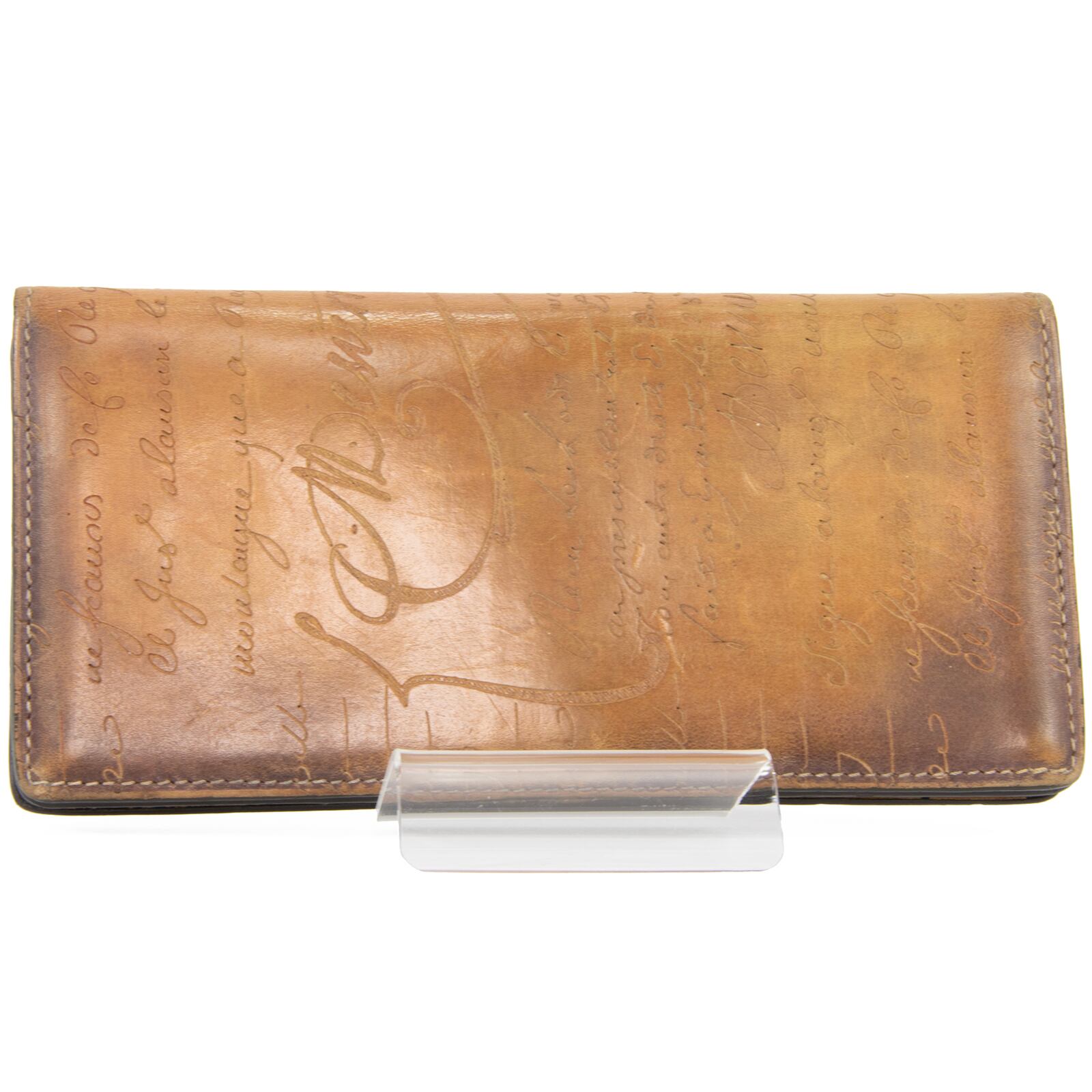 本物 送料無料 ベルルッティ 長財布 二つ折り財布 見開きタイプ メンズ サンタル 茶色 ブラウン パティーヌ 文字 ロゴ マーク 綺麗 T039