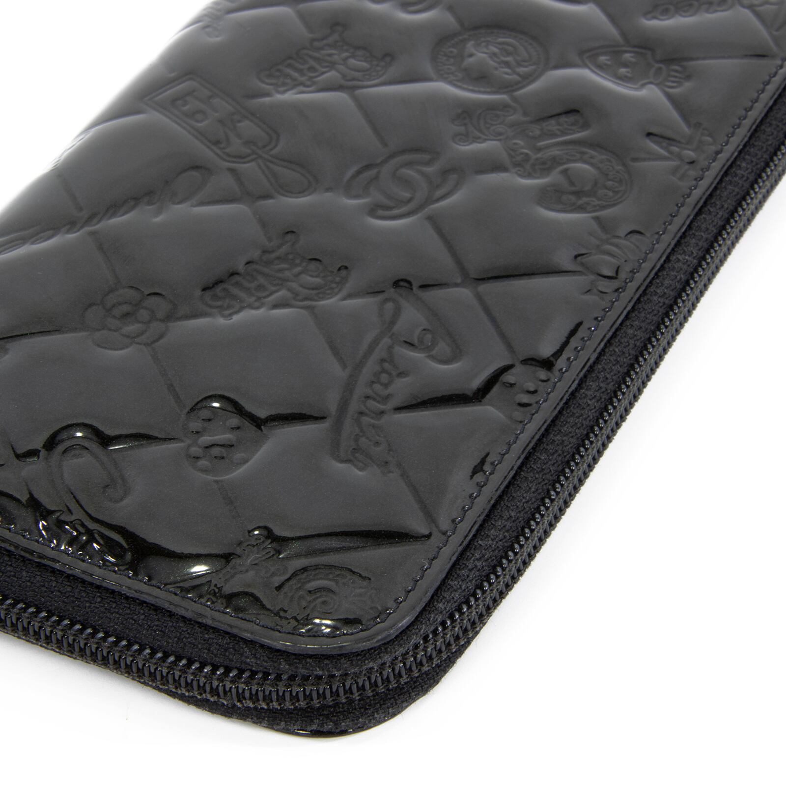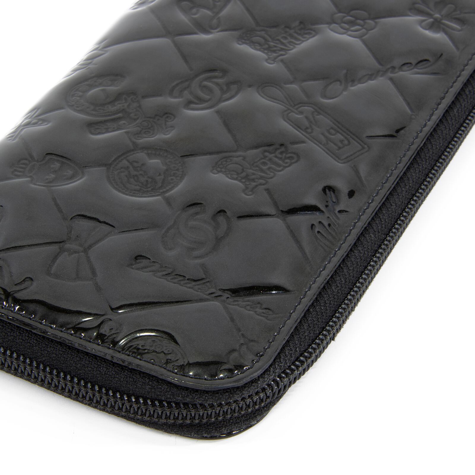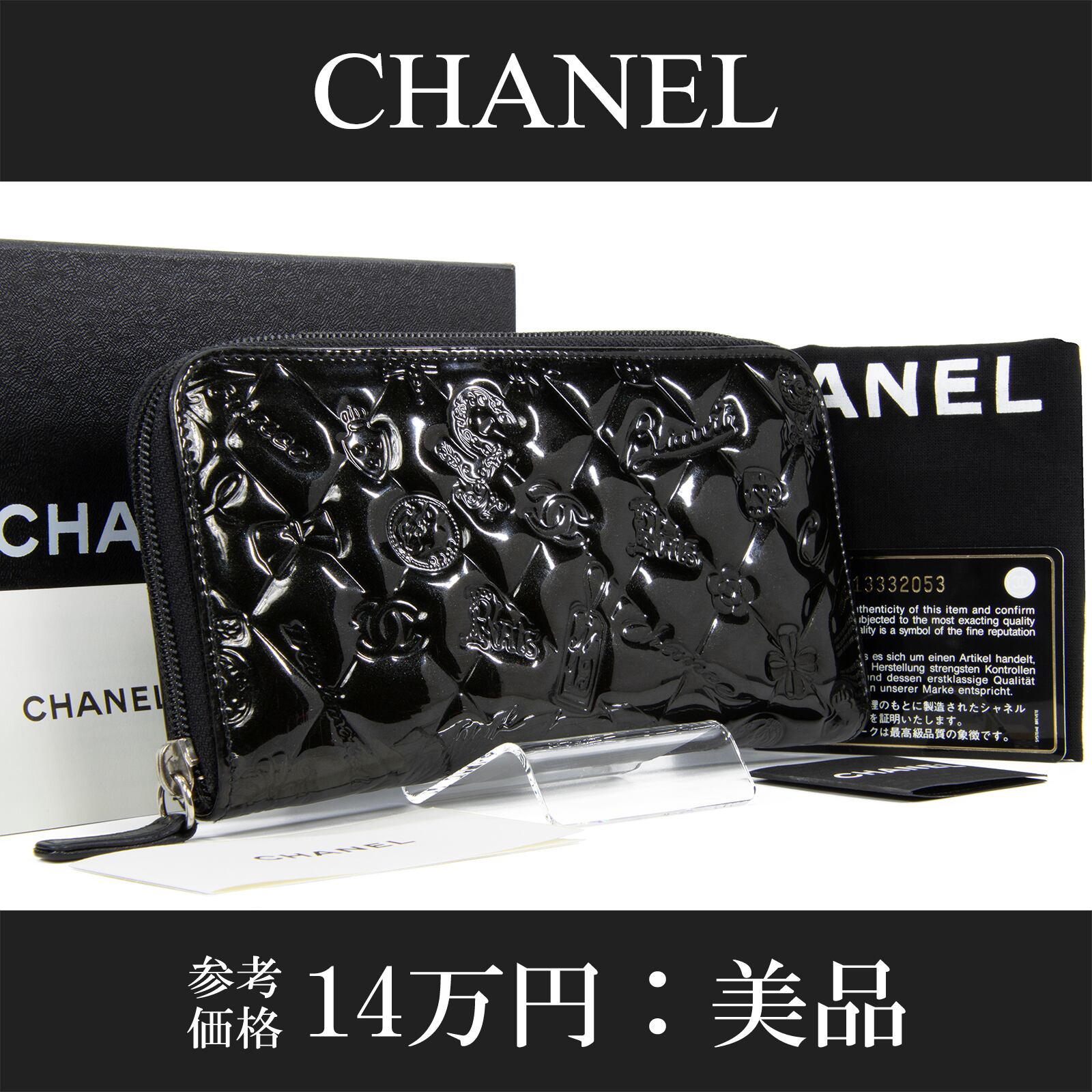 本物 送料無料 シャネル 長財布 ラウンドファスナー ジップタイプ メンズ レディース パテントレザー アイコンライン 2007年限定モデル 黒 ブラック 人気 カメリア ココマーク スター 四つ葉のクローバー ラッキーナンバー5 綺麗 T041