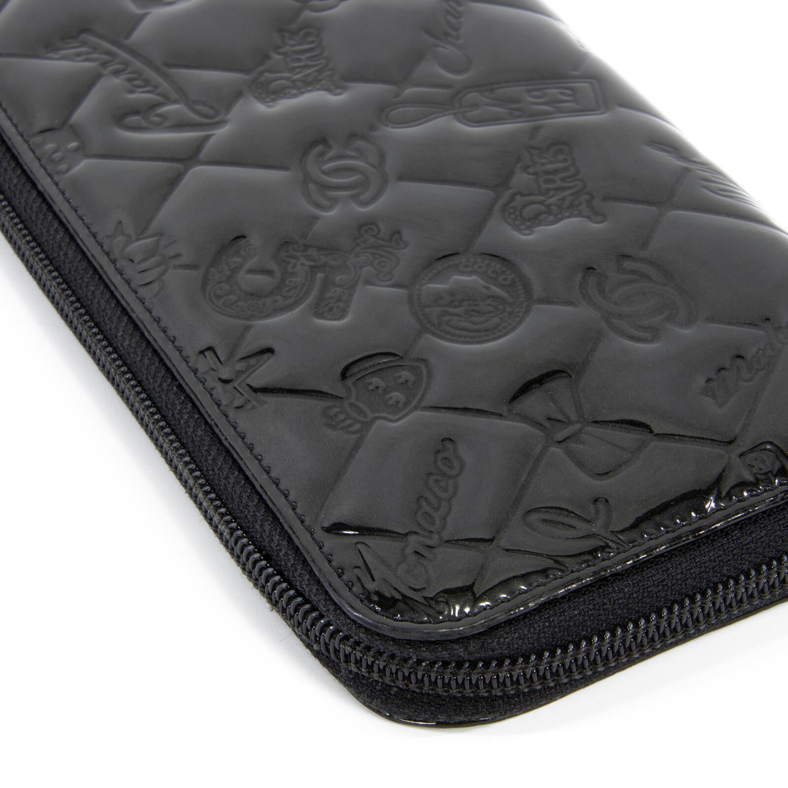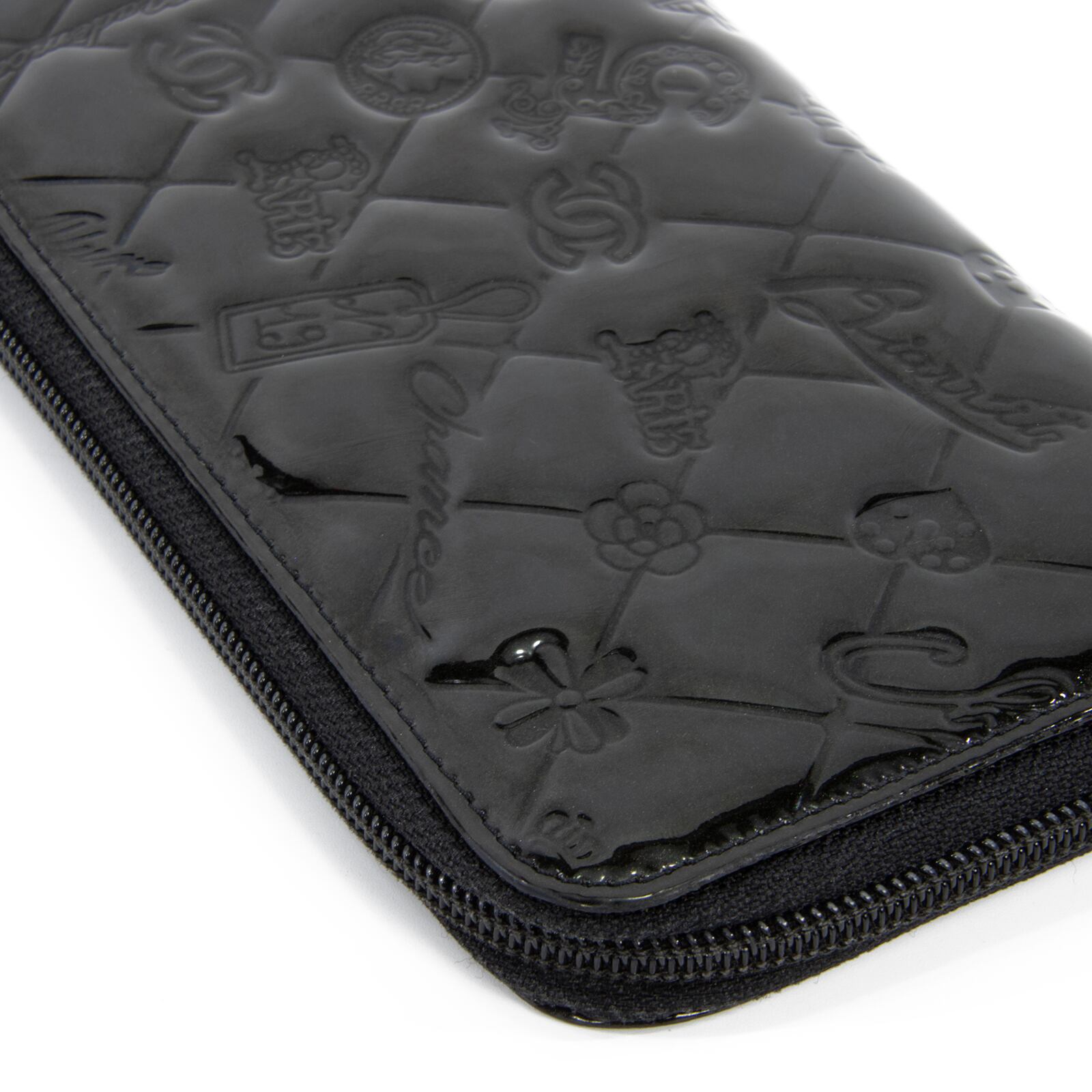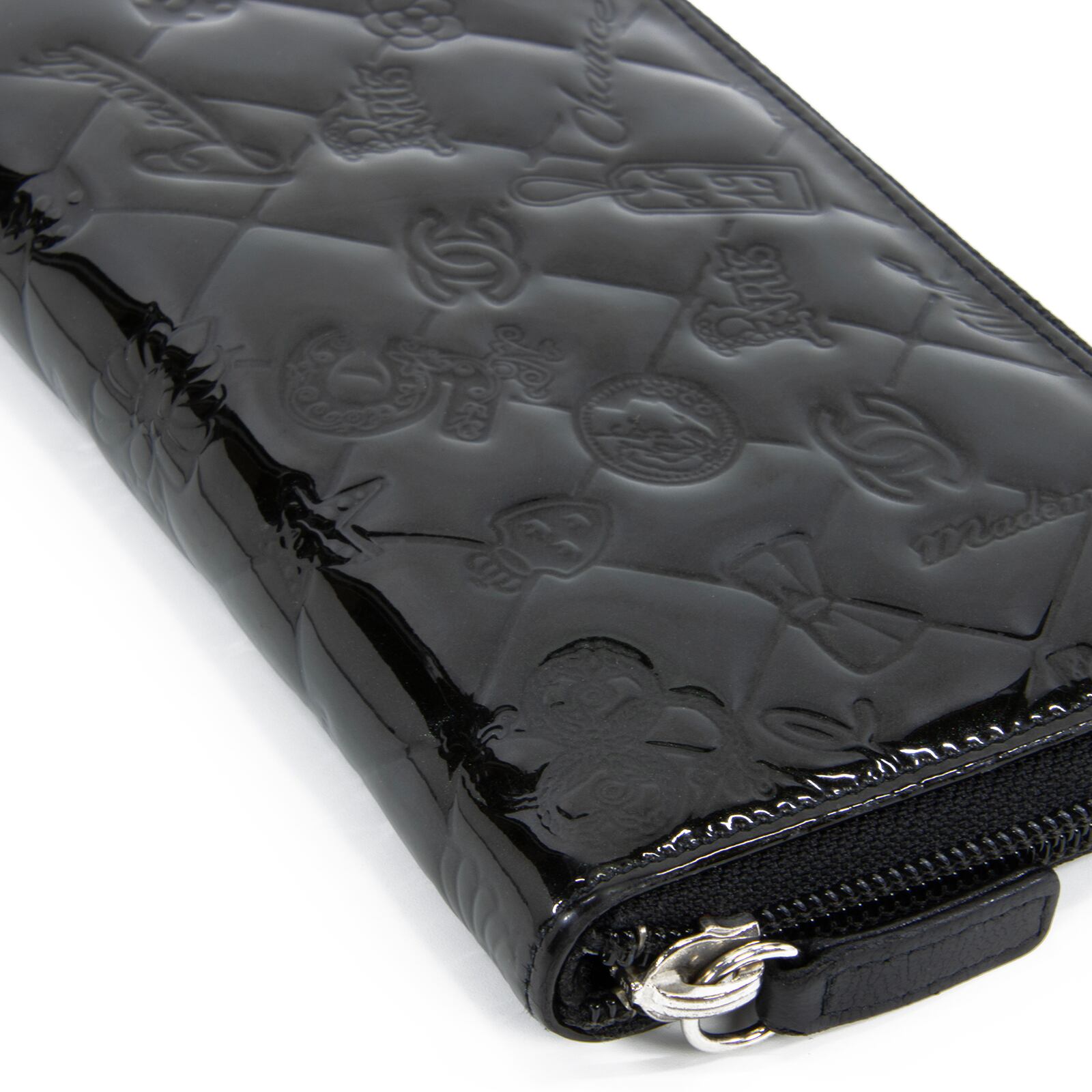 本物 送料無料 シャネル 長財布 ラウンドファスナー ジップタイプ メンズ レディース パテントレザー アイコンライン 2007年限定モデル 黒 ブラック 人気 カメリア ココマーク スター 四つ葉のクローバー ラッキーナンバー5 綺麗 T041