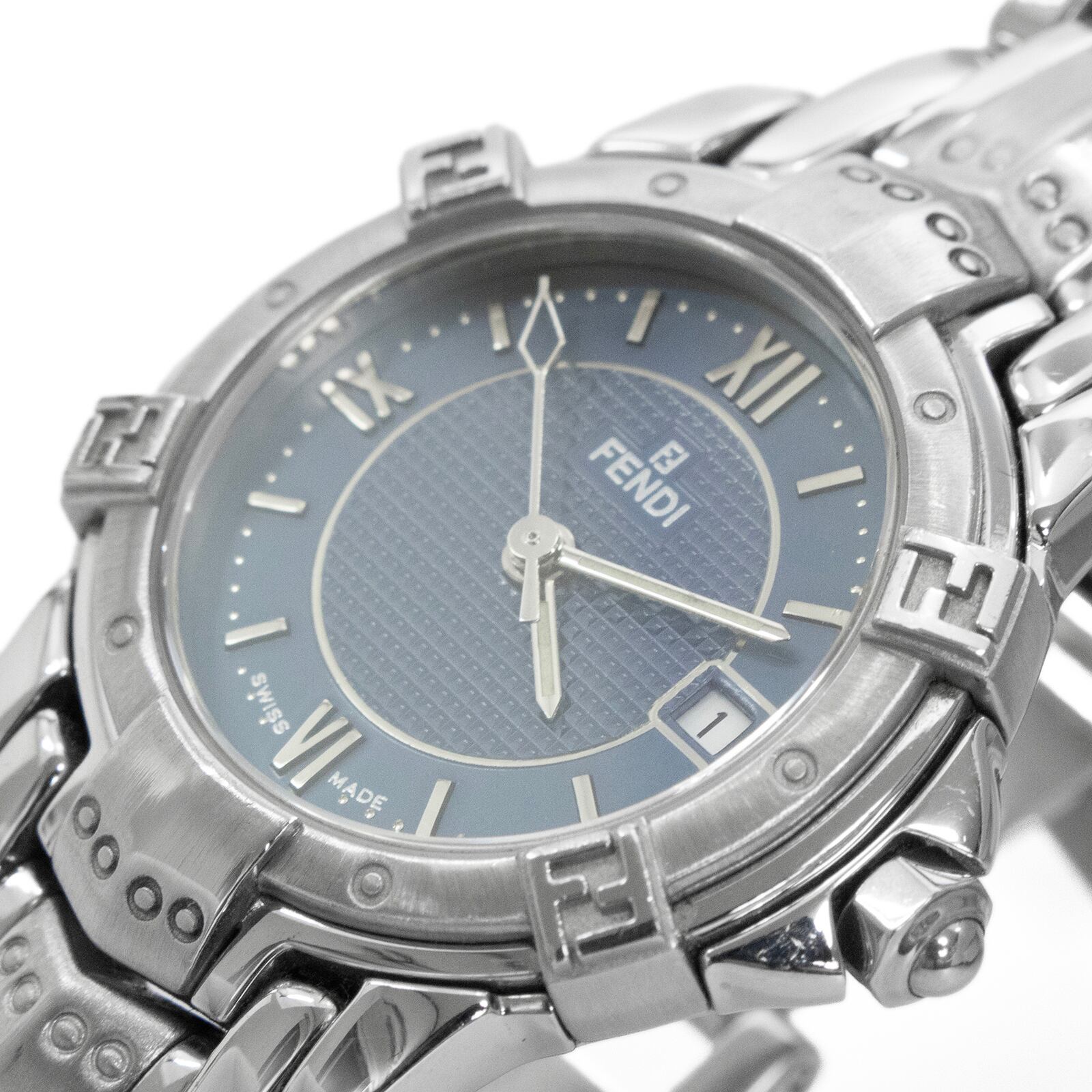 送料無料 フェンディ 腕時計 クオーツ 3500L レディース 青 フレンチブルー シルバー FFロゴ マーク シンプル レア クォーツ 綺麗 R001