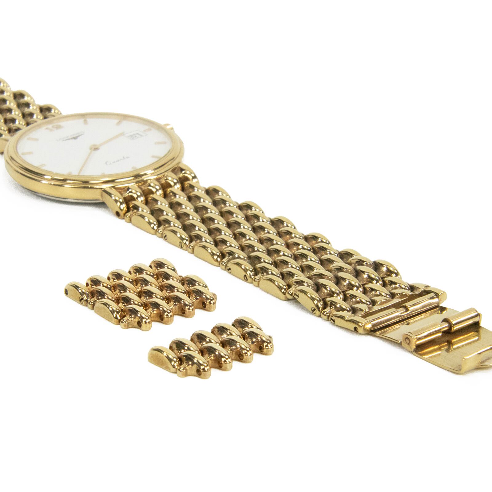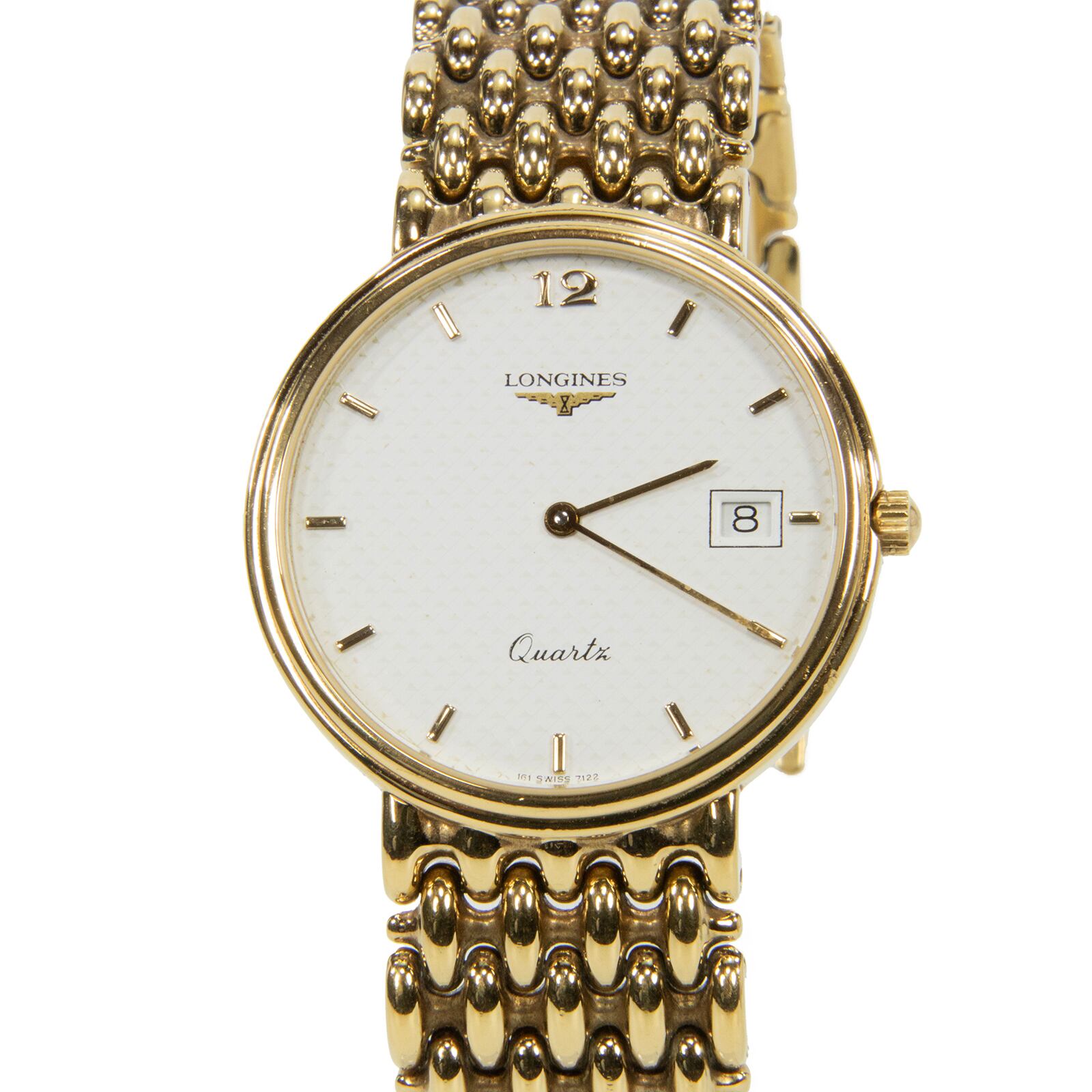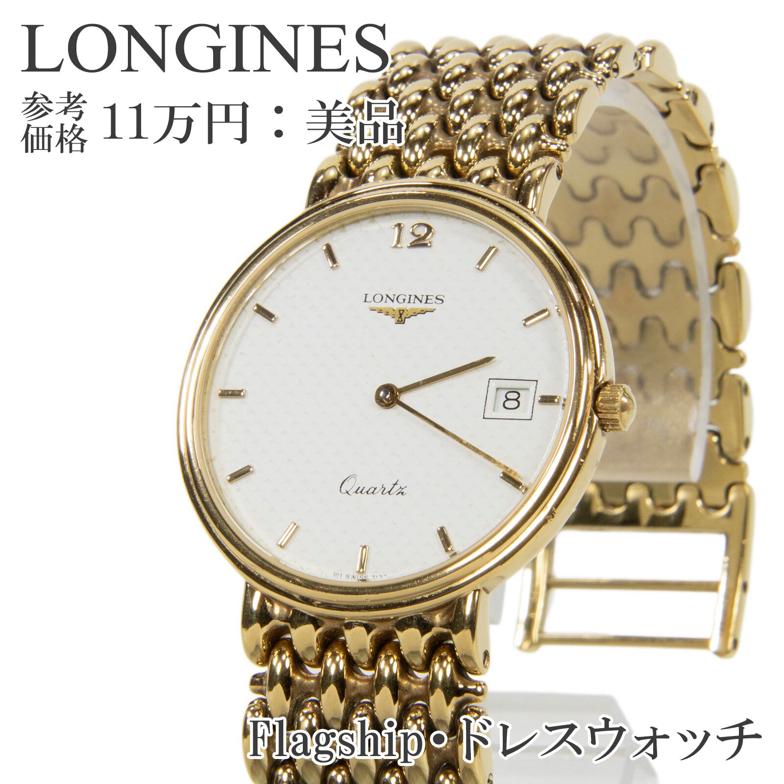 送料無料 ロンジン 腕時計 クオーツ フラッグシップ メンズ 白 シルバー ゴールド ドレスウォッチ ロゴ マーク シンプル レア 綺麗 R002