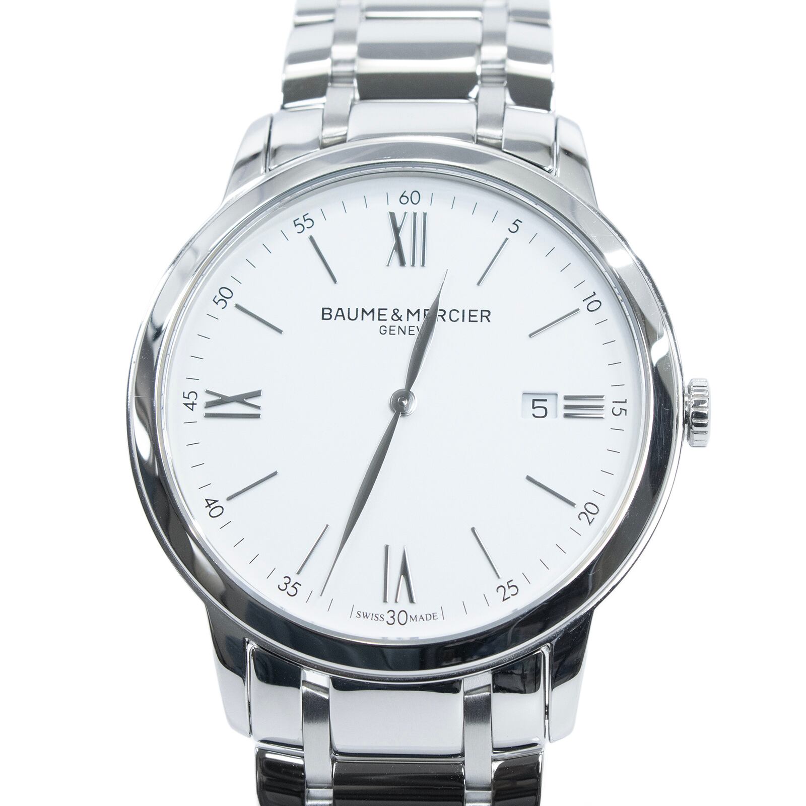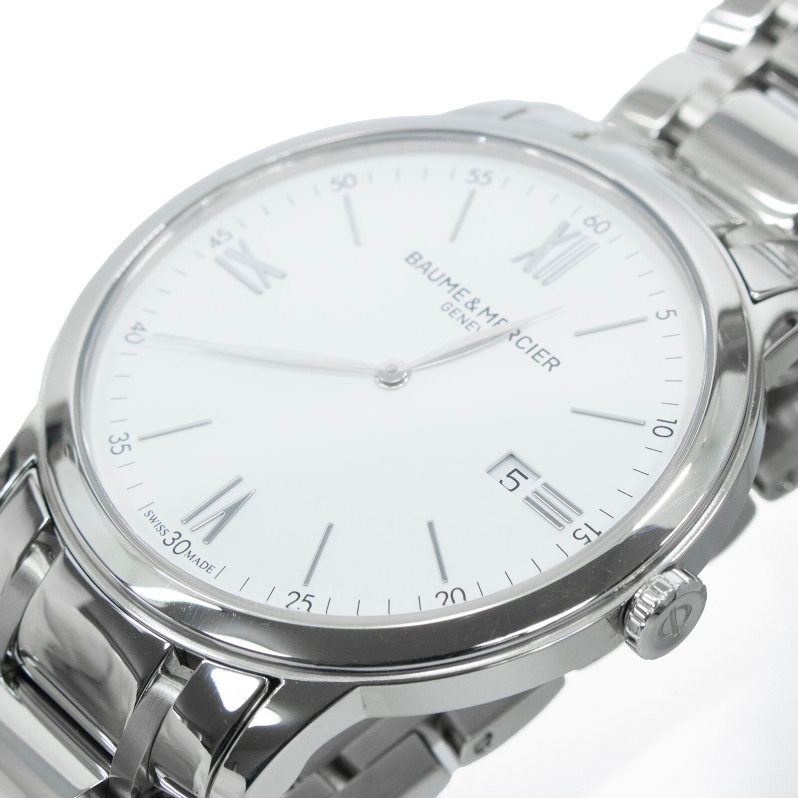送料無料 ボーム&メルシエ 腕時計 クオーツ クラシマ メンズ 白 シルバー ドレスウォッチ ロゴ マーク シンプル ビジネス 高級 綺麗 R008
