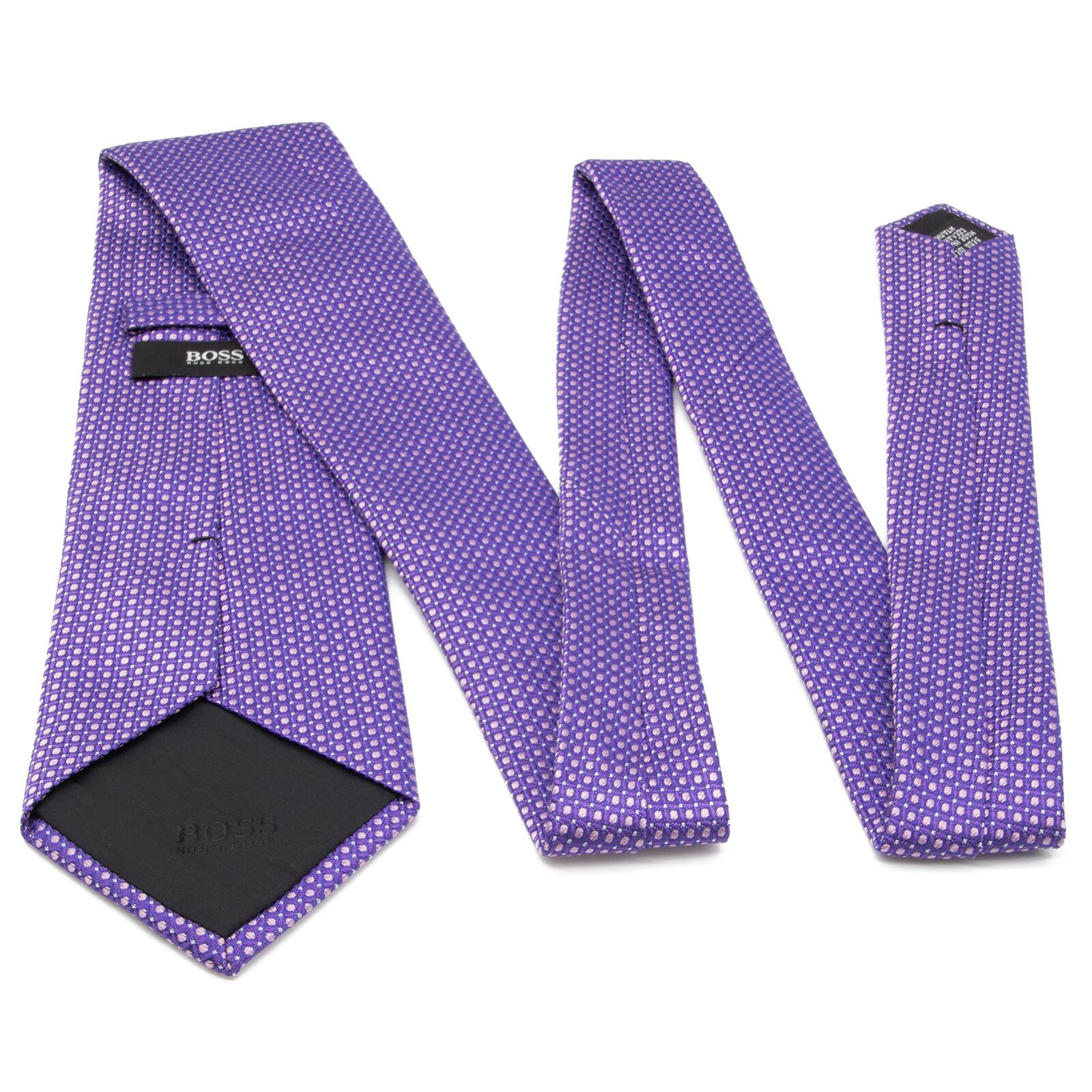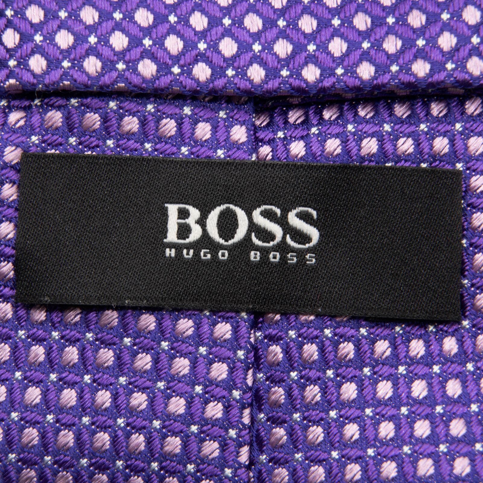 送料無料 ヒューゴボス ネクタイ 新品同様 ジャガードタイ シルク 紫色 パープル ビジネス ブランド ドット 珍しい おしゃれ 綺麗 N309