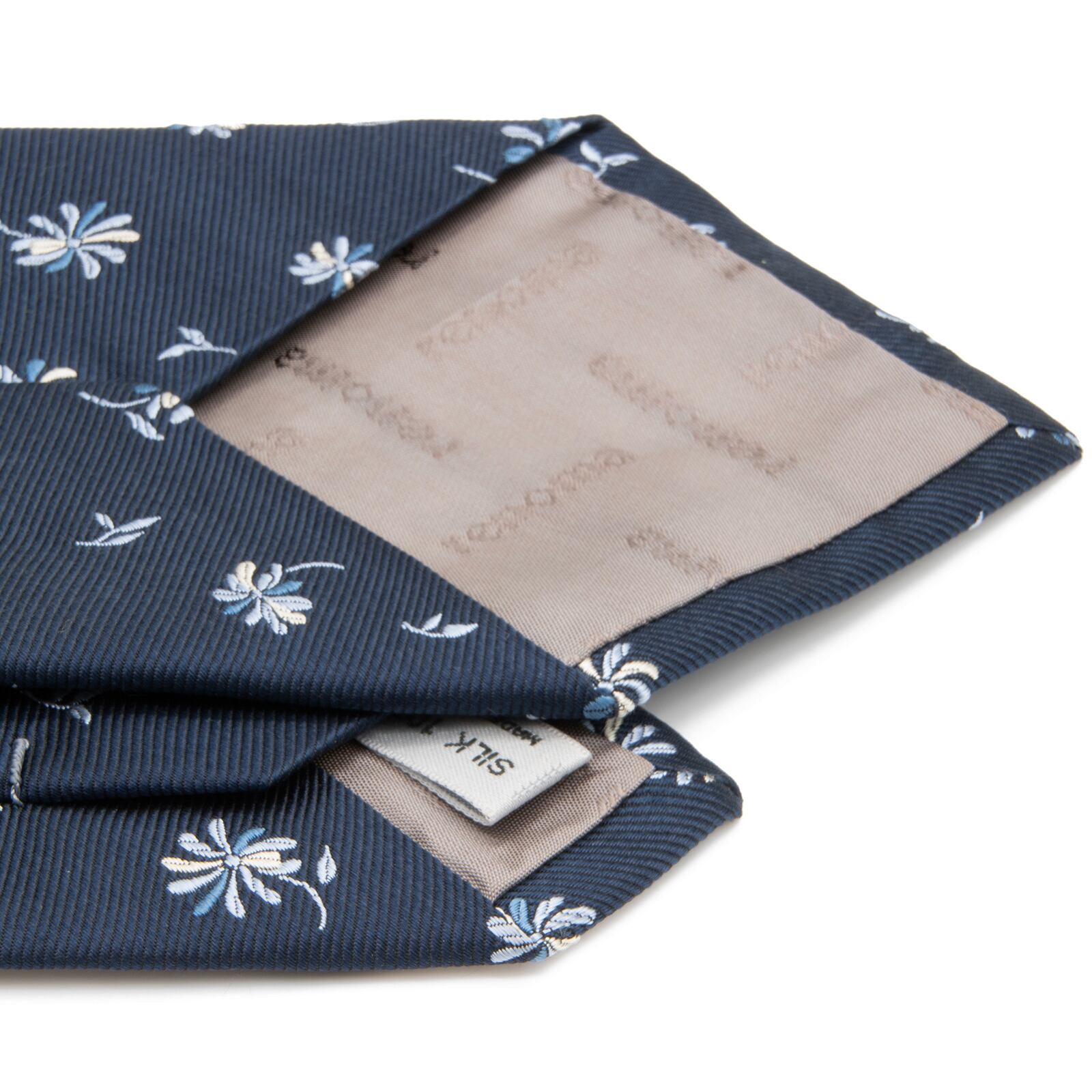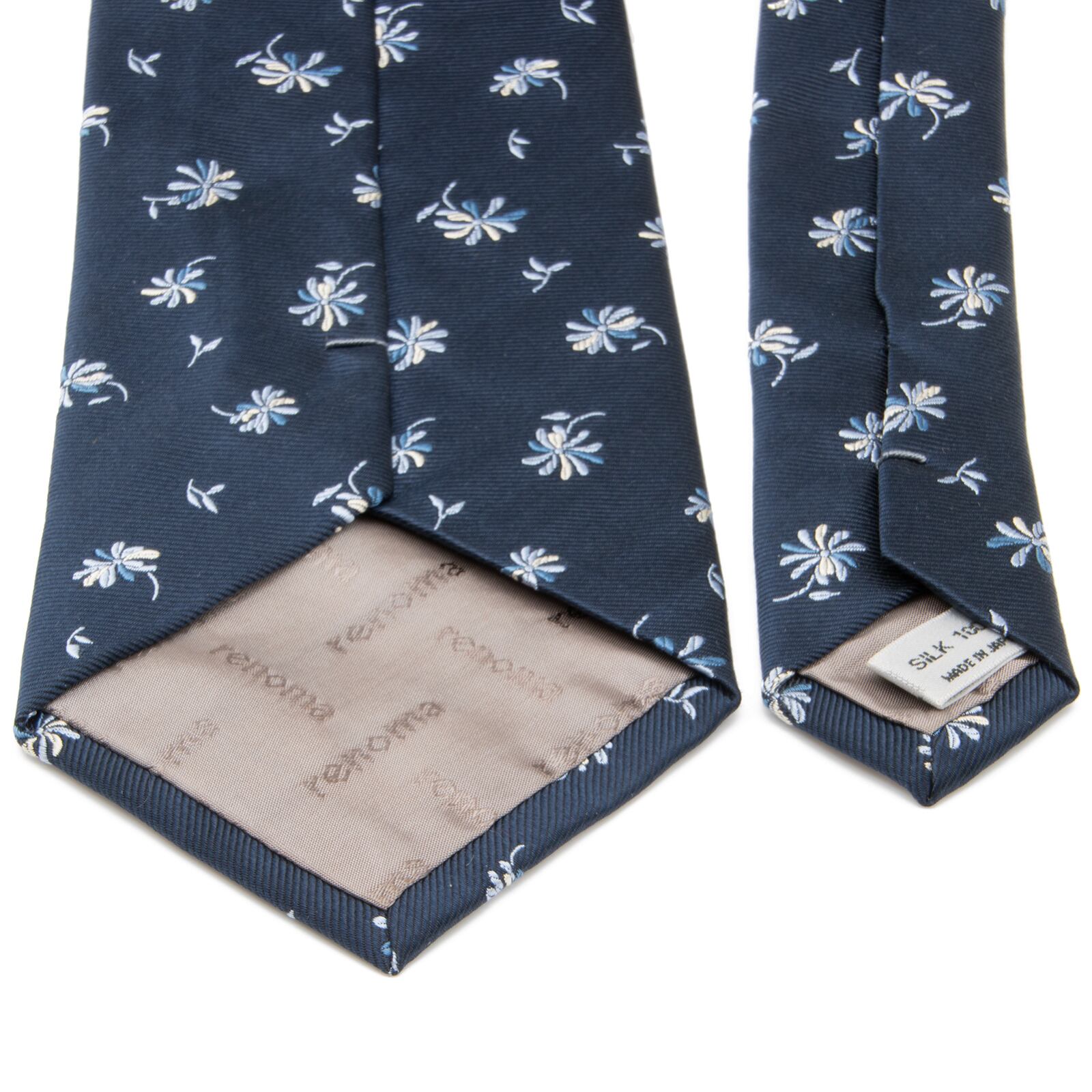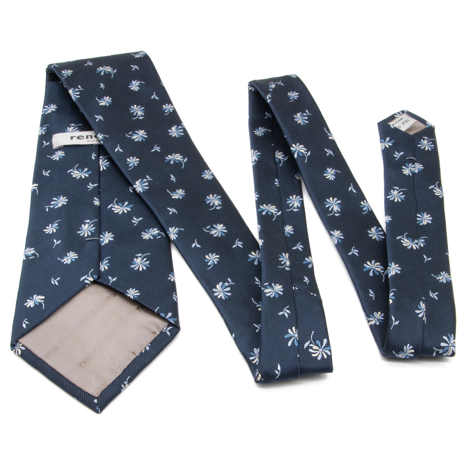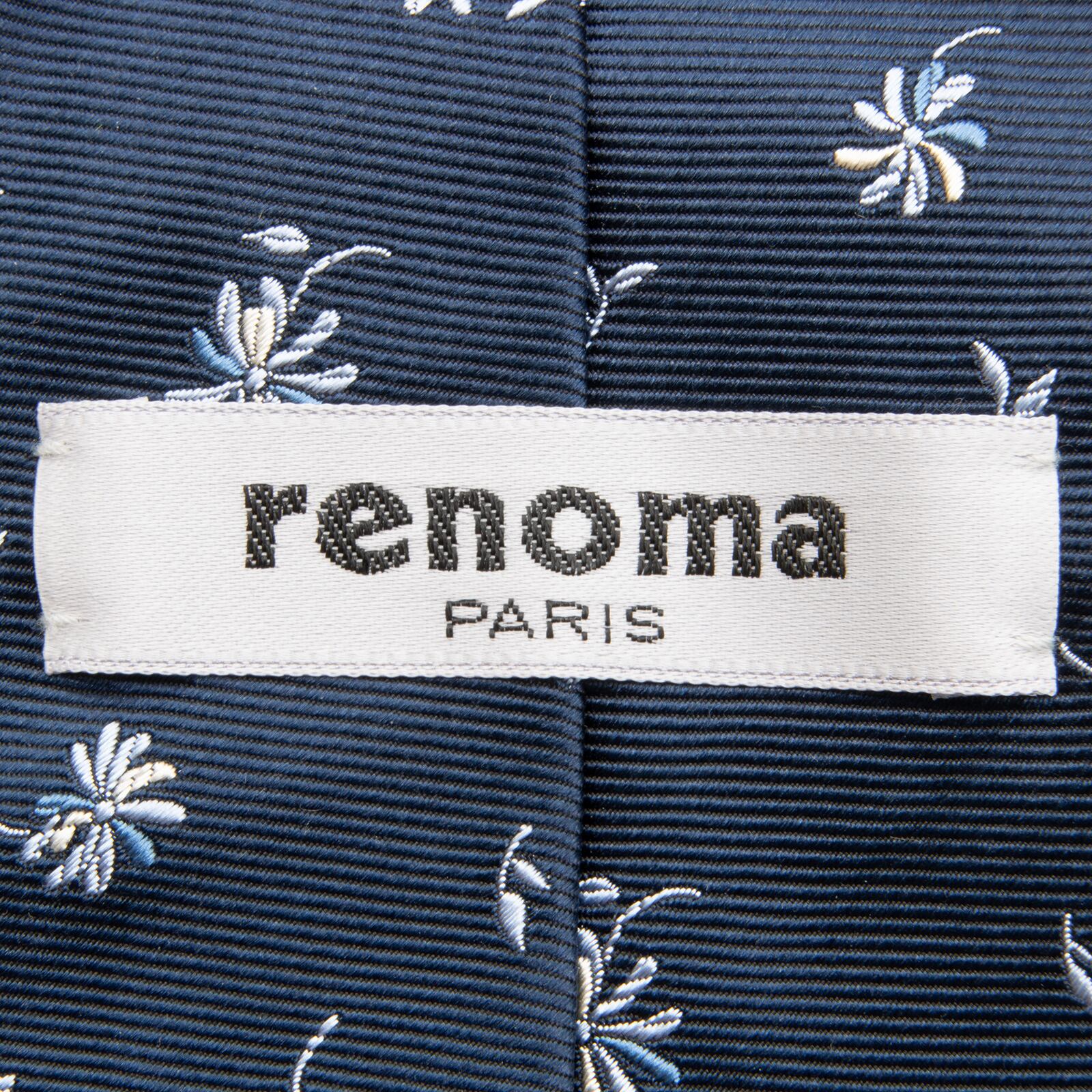 送料無料 レノマ ネクタイ 新品同様 ジャガードタイ シルク ネイビーブルー 水色 白 ホワイト ブランド 総柄 花 珍しい おしゃれ 綺麗 N321