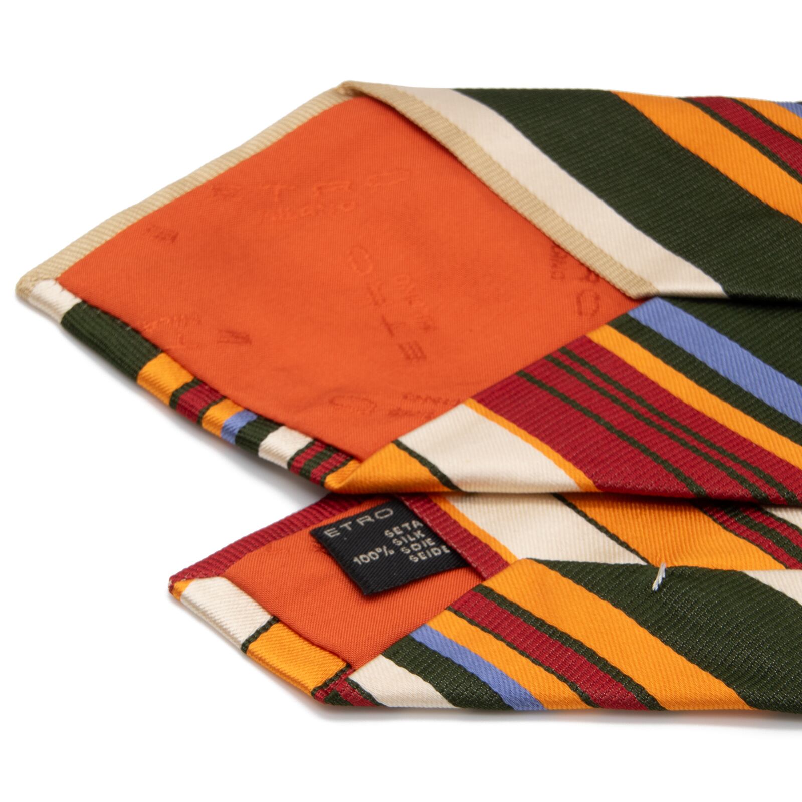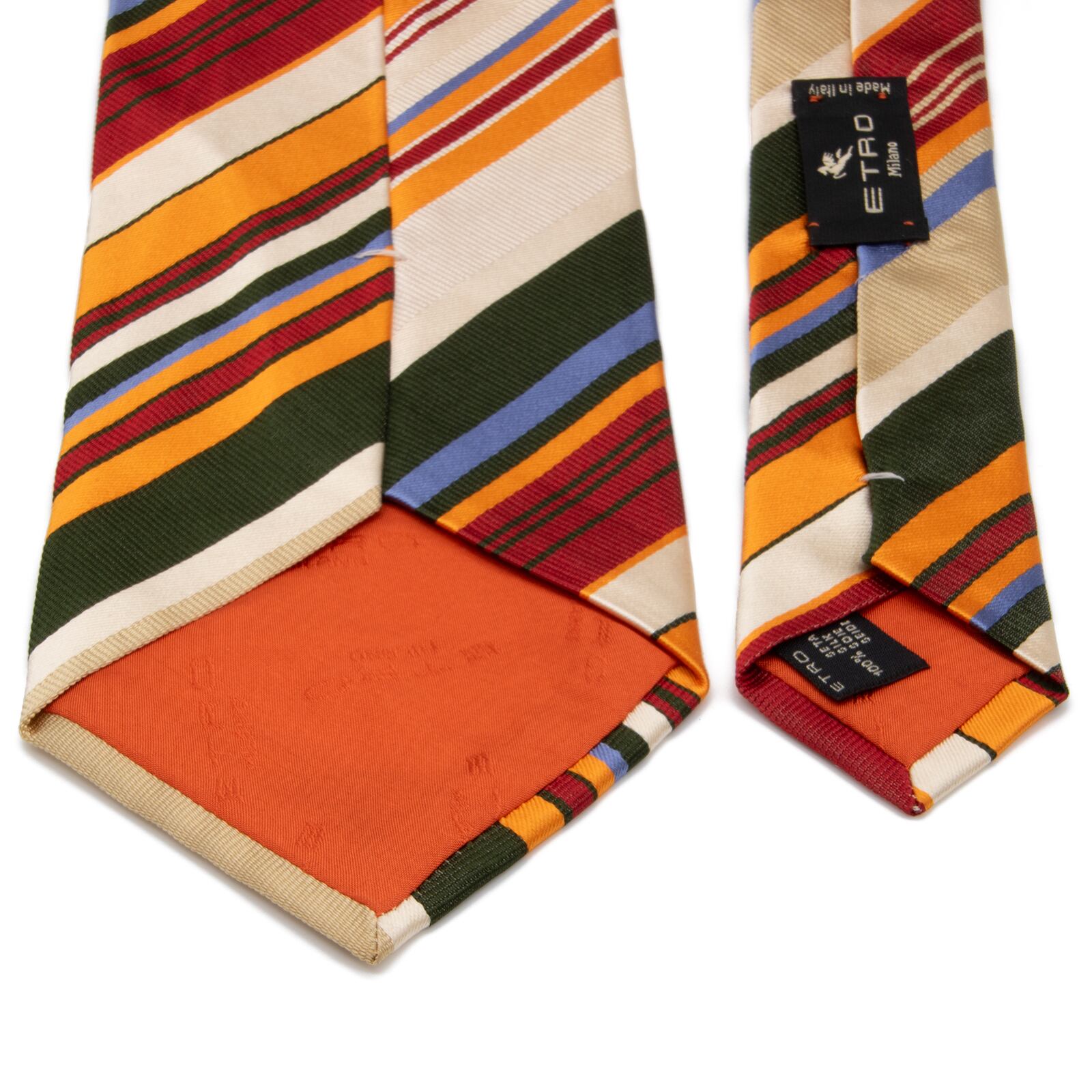 送料無料 エトロ ネクタイ ジャガードタイ シルク ベージュ 赤 オレンジ モスグリーン ブランド ストライプ カラフル おしゃれ 綺麗 N336
