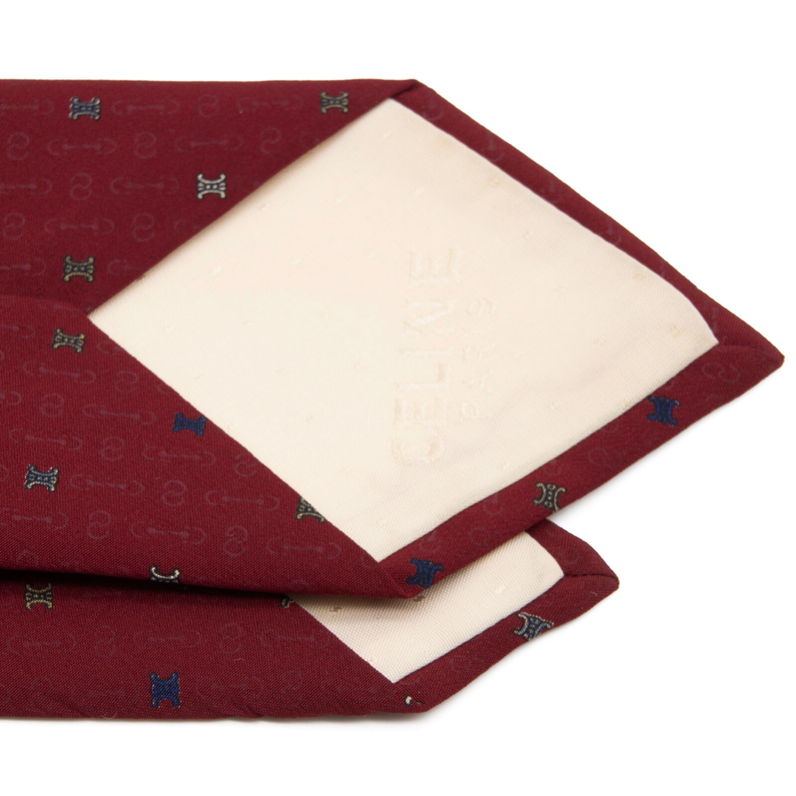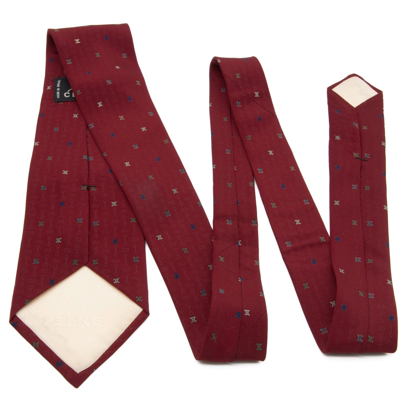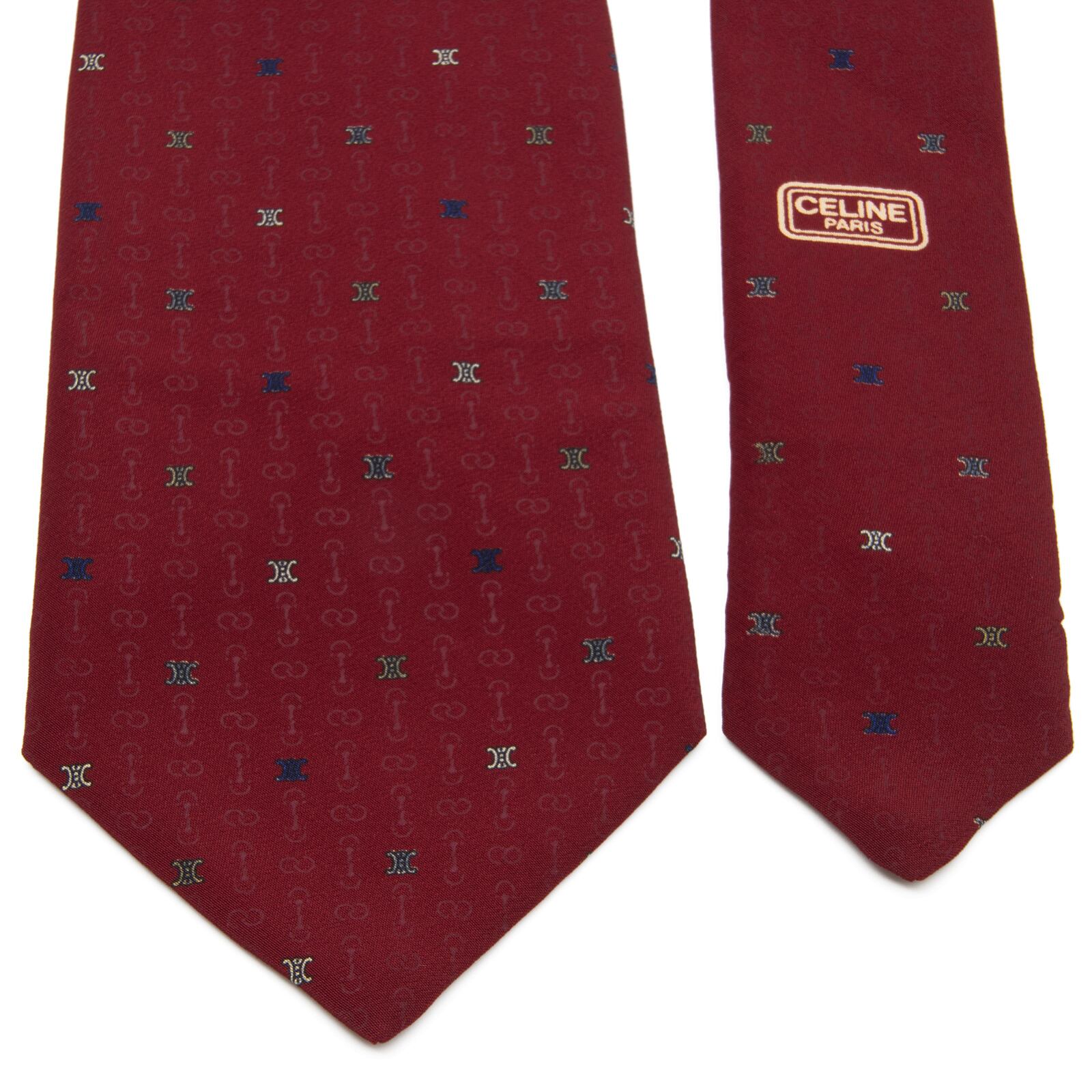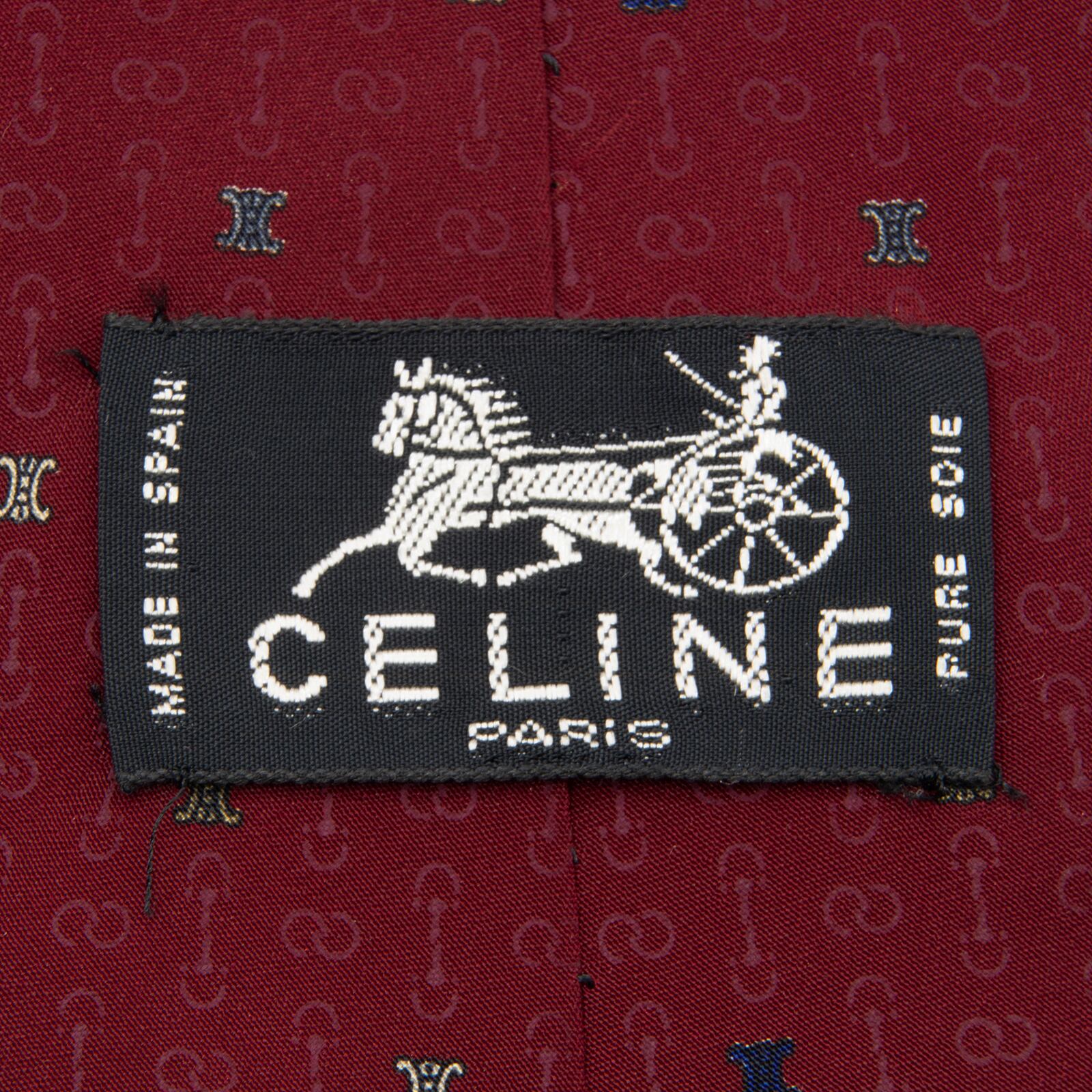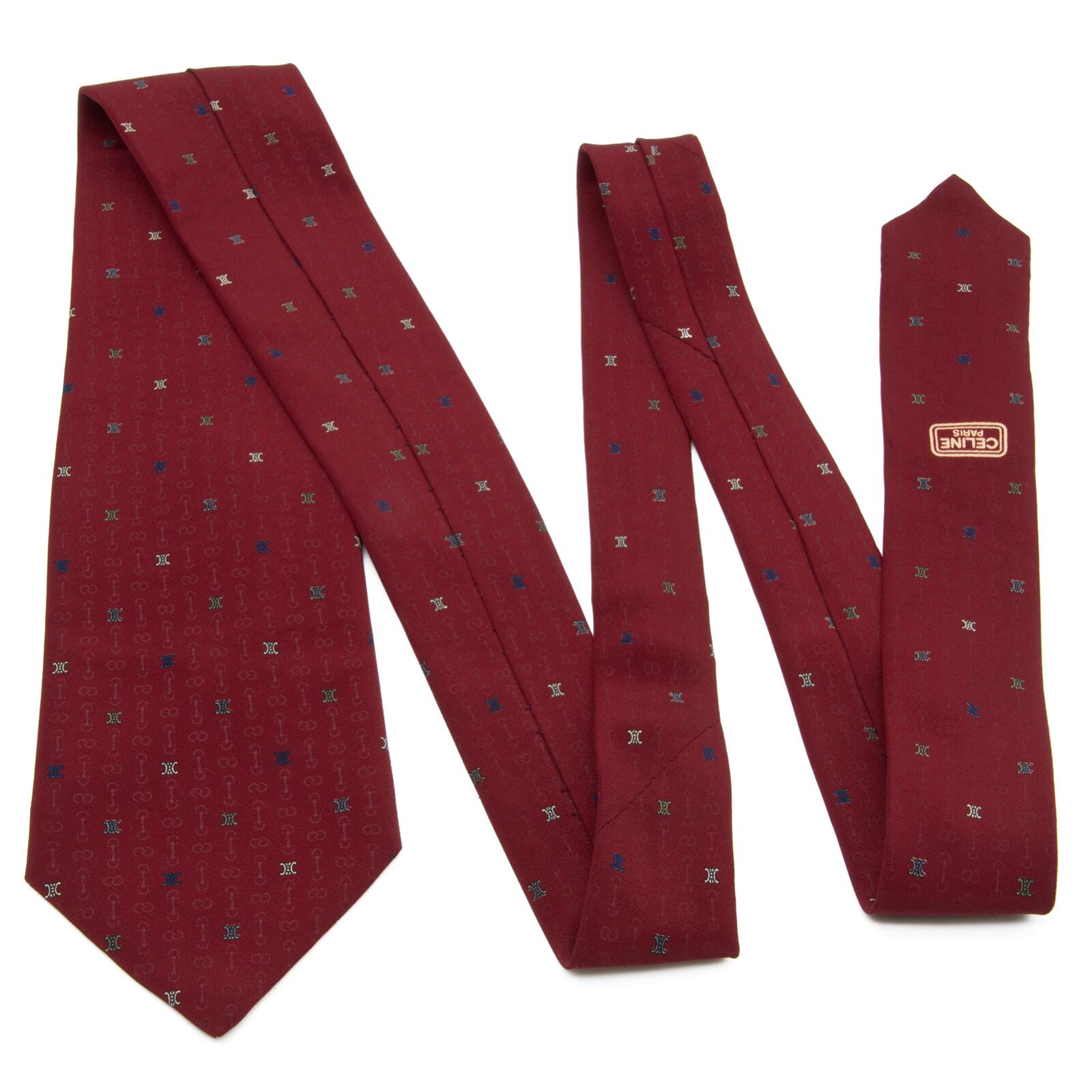 送料無料 セリーヌ ネクタイ 新品同様 シルク バーガンディー ネイビーブルー マカダム ロゴ マーク 珍しい おしゃれ スペイン製 綺麗 N627