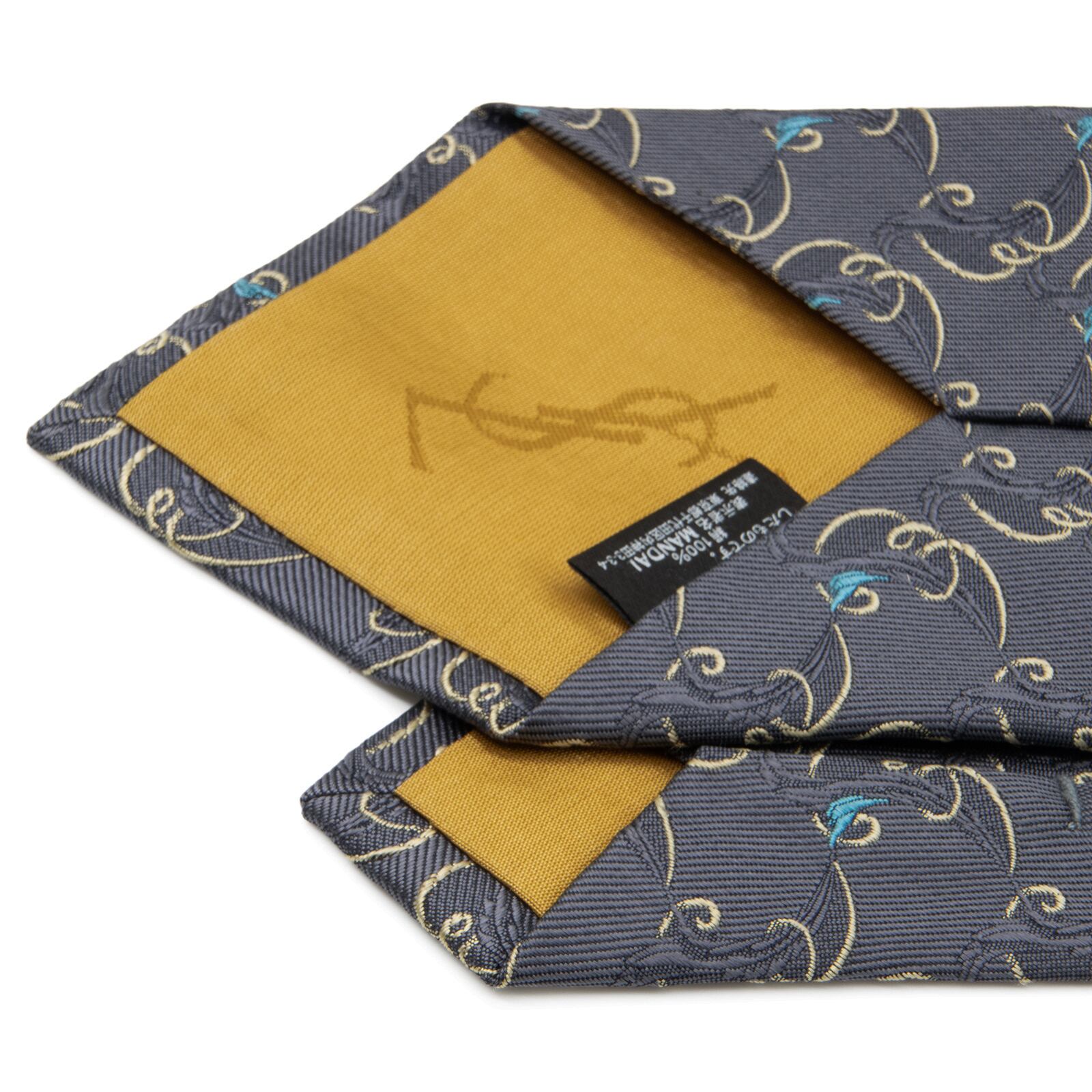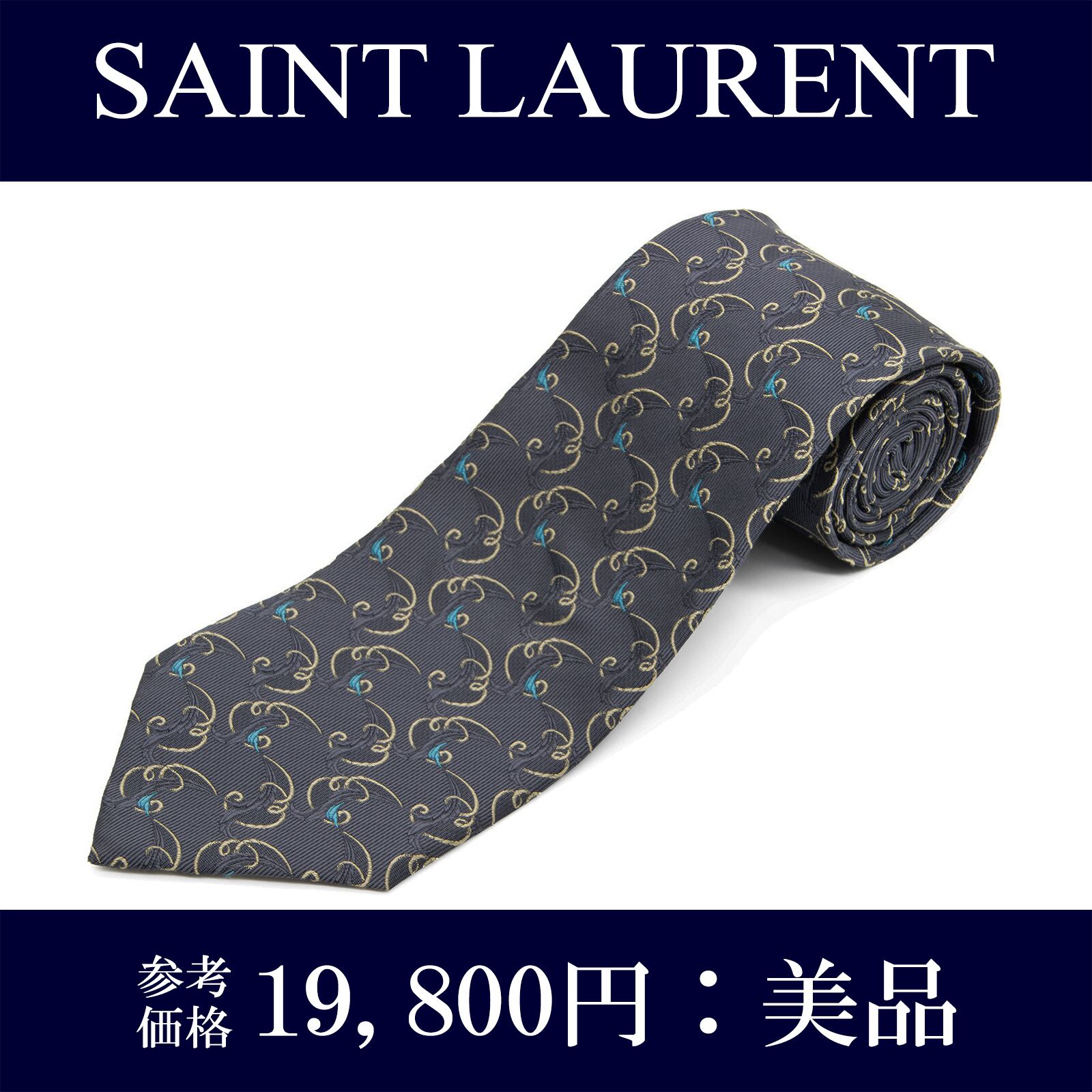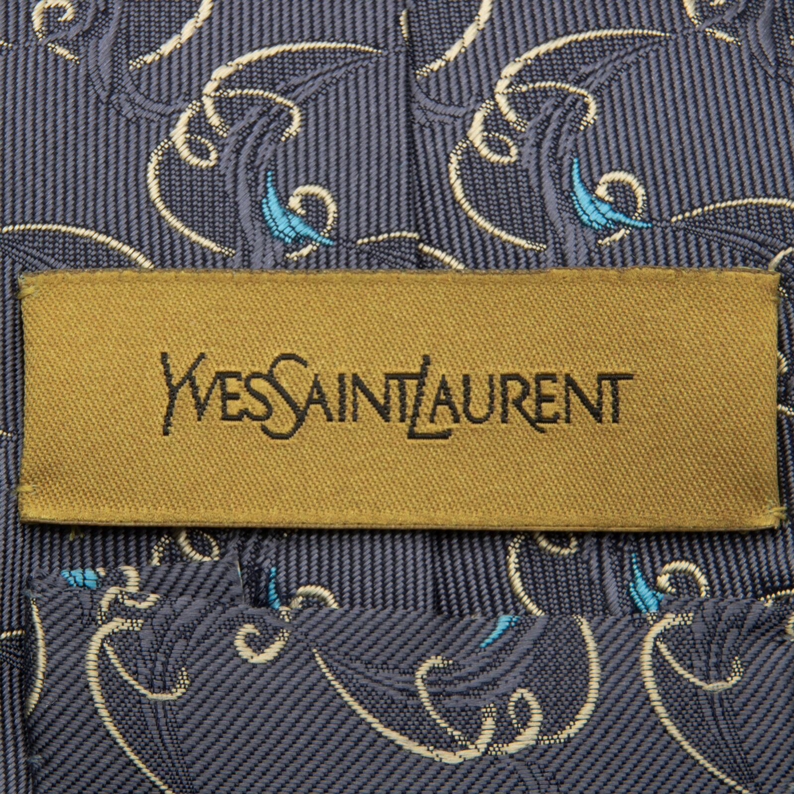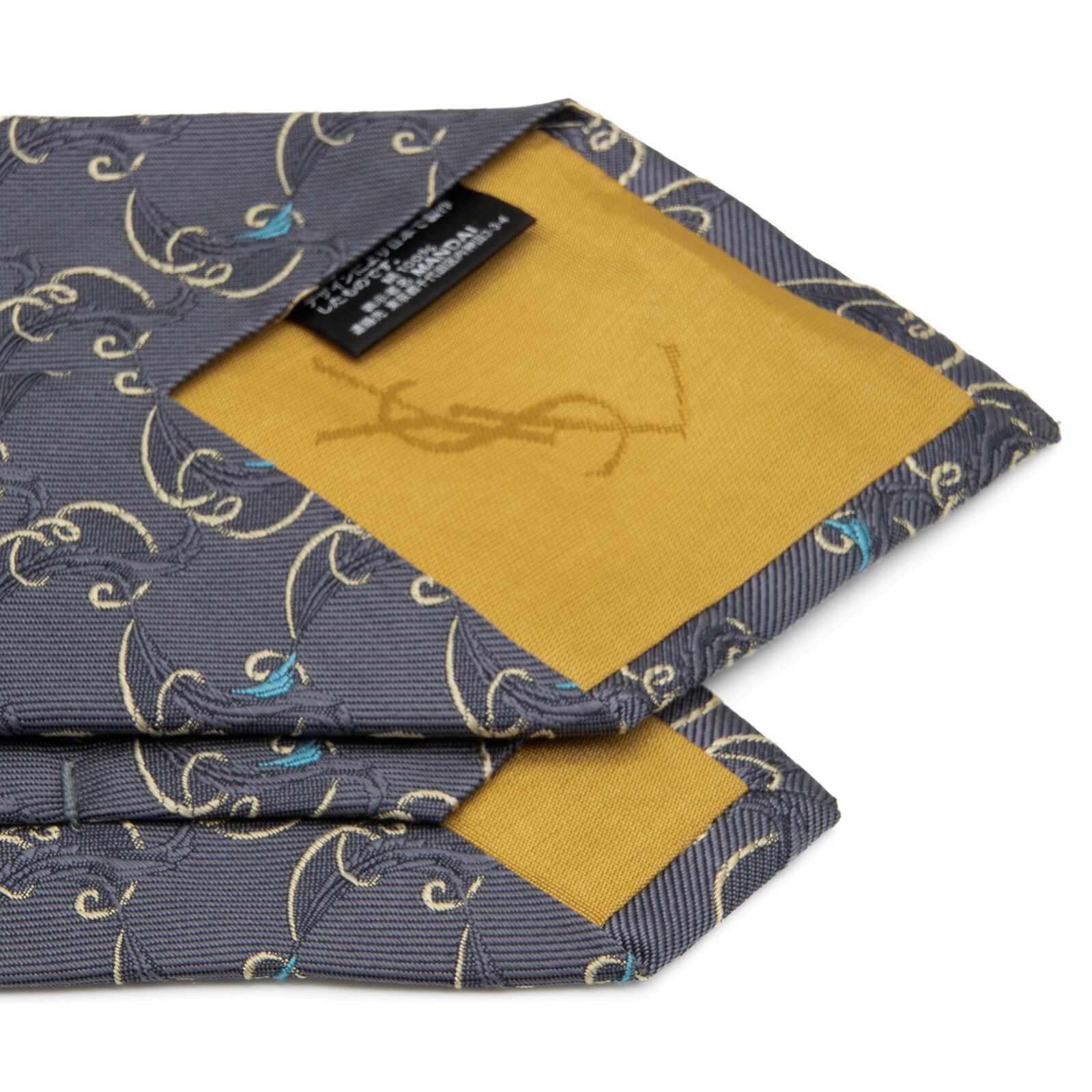 送料無料 サンローラン ネクタイ ジャガードタイ シルク 藤色 水色 エクリュ ビジネス ブランド レア 珍しい おしゃれ 日本製 綺麗 N635
